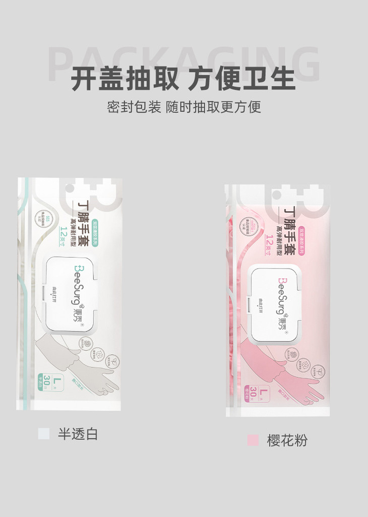 两种颜色 樱花份 半透白 S M L三种尺寸供我们选择 每袋有30只