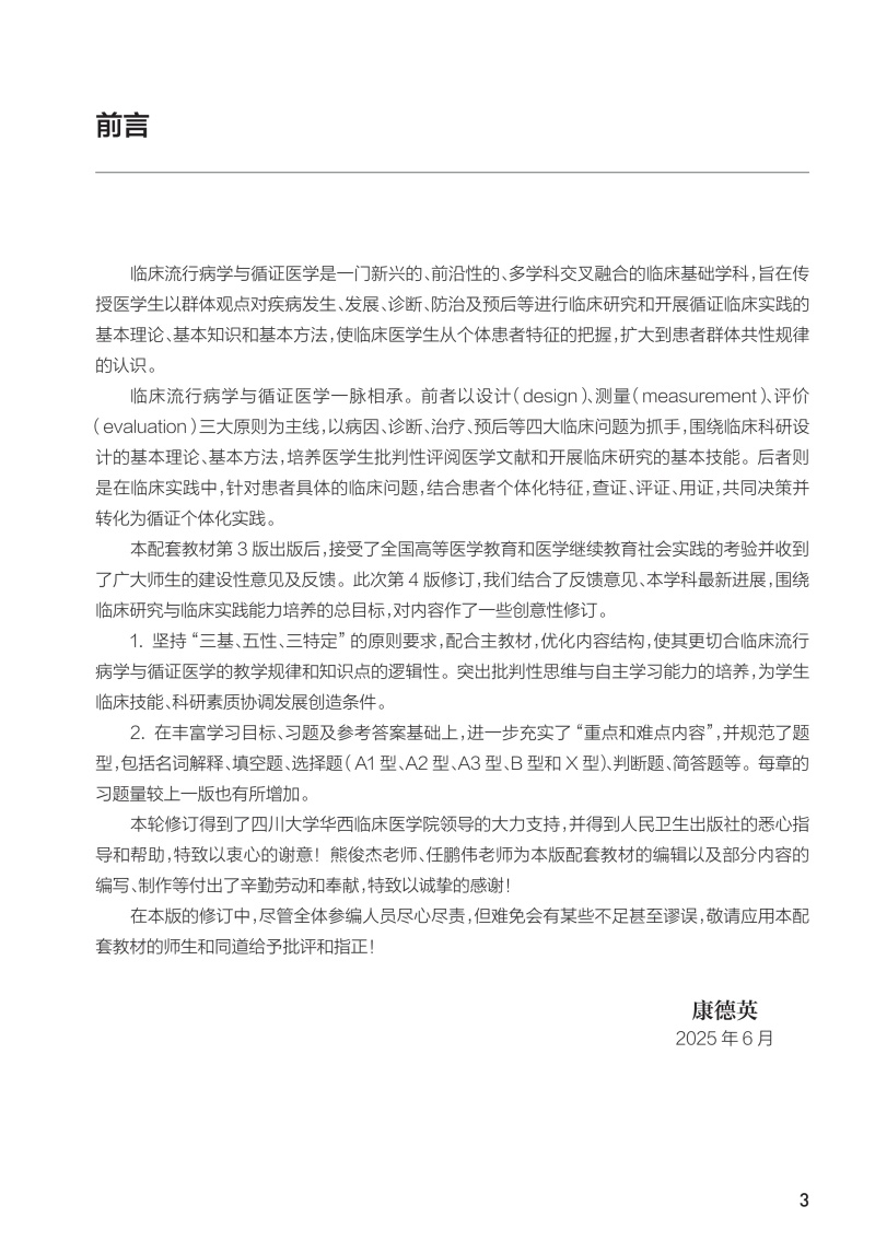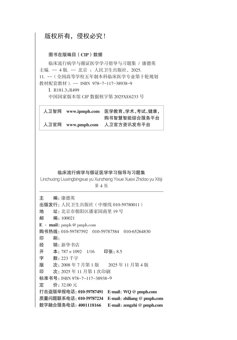 临床流行病学与循证医学学习指导与习题集 第4四版 十四五规划教材配套教材全国高等学校配套教材 康德英 主编 人民卫生出版社