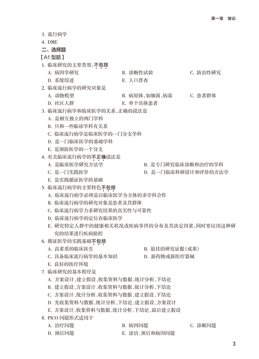 《临床流行病学与循证医学学习指导与习题集》(第4版)与主教材一致,结合了本学科的**进展以及科研实践能力培养的总体目标,较上一版相比作了相应修订。本习题集一共包括十八章,每一章内容都包括学习目标、重点和难点内容、习题以及参考答案。其中学习目标包括掌握、熟悉、了解内容。重点和难点内容精练,涵盖了章内需要学生掌握的重点和难点内容。习题包括名词解释、判断题、填空题、选择题(A1型、A2型、A3型、B型、X型)以及简答题。每章的习题量较上一版有大幅增加。