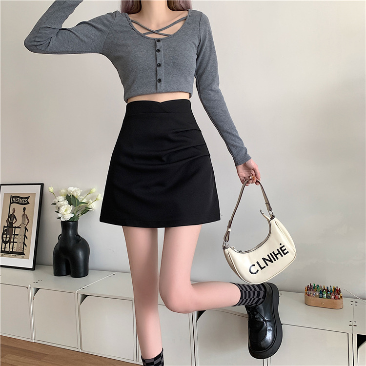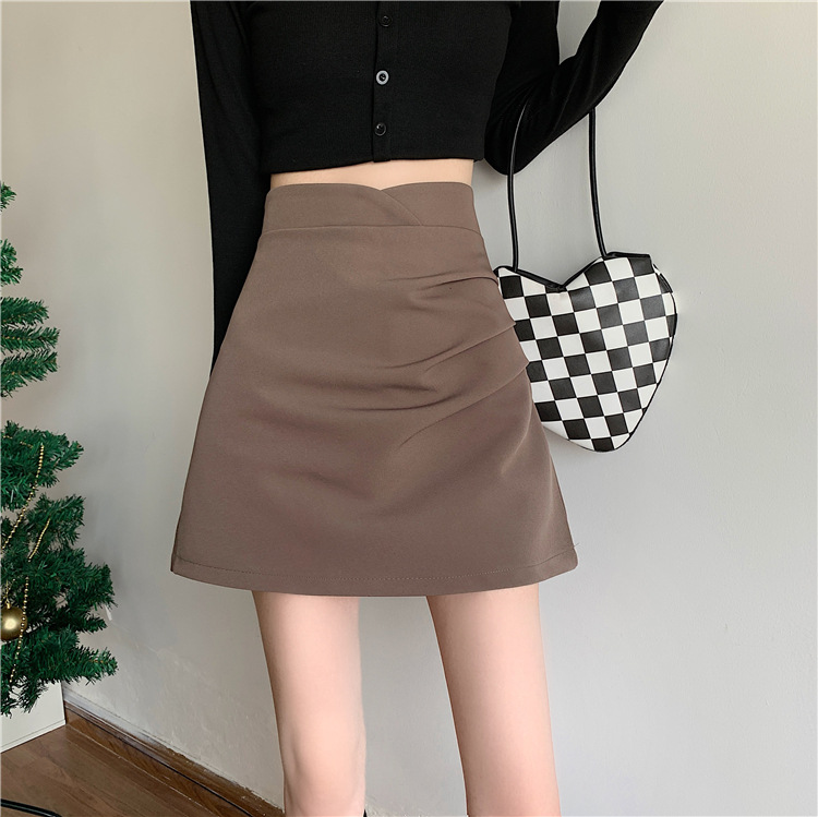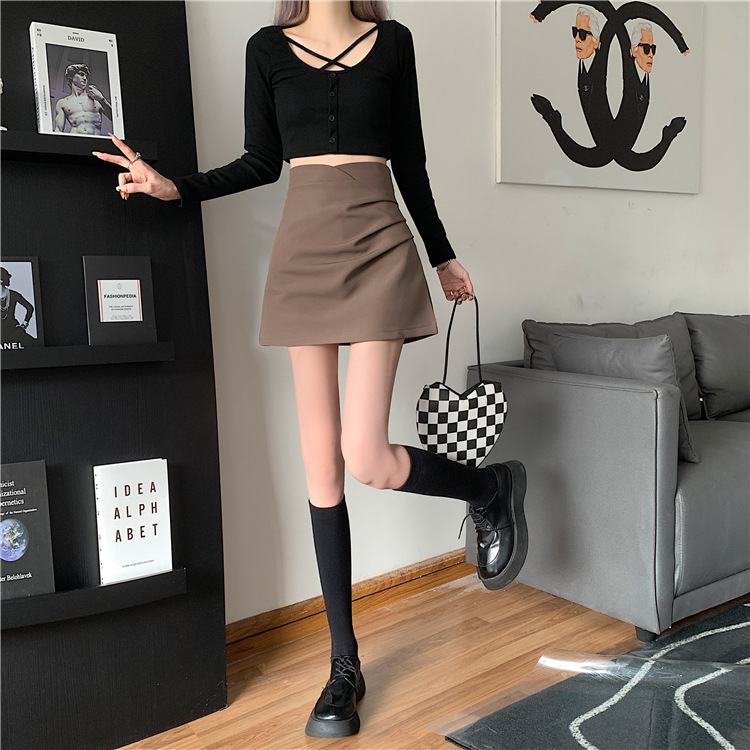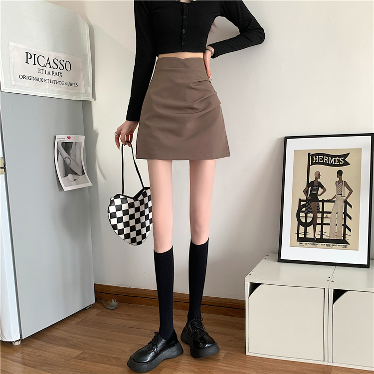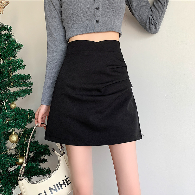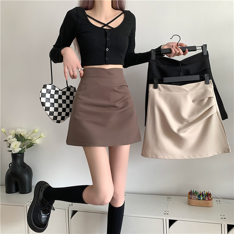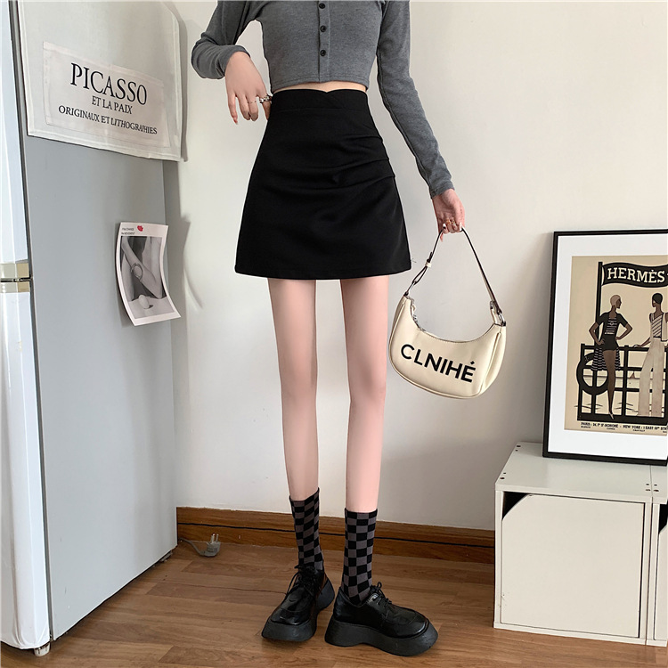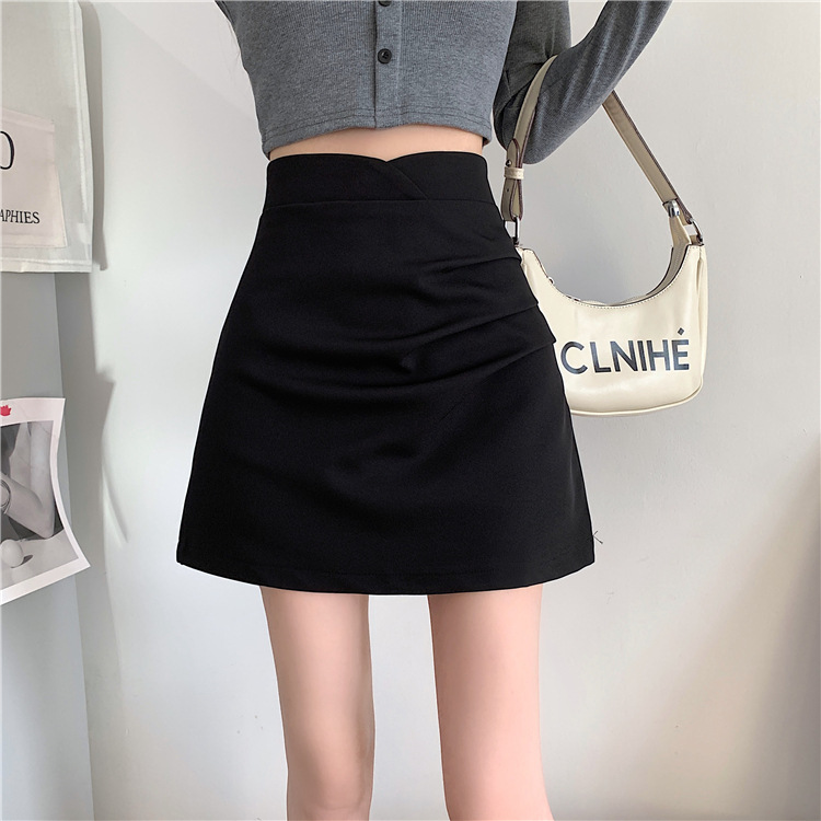 【显高显腿长夏季半身裙女士新款】抽褶高腰不规则显瘦百搭A字开叉包臀裙,显瘦百搭,任意搭配