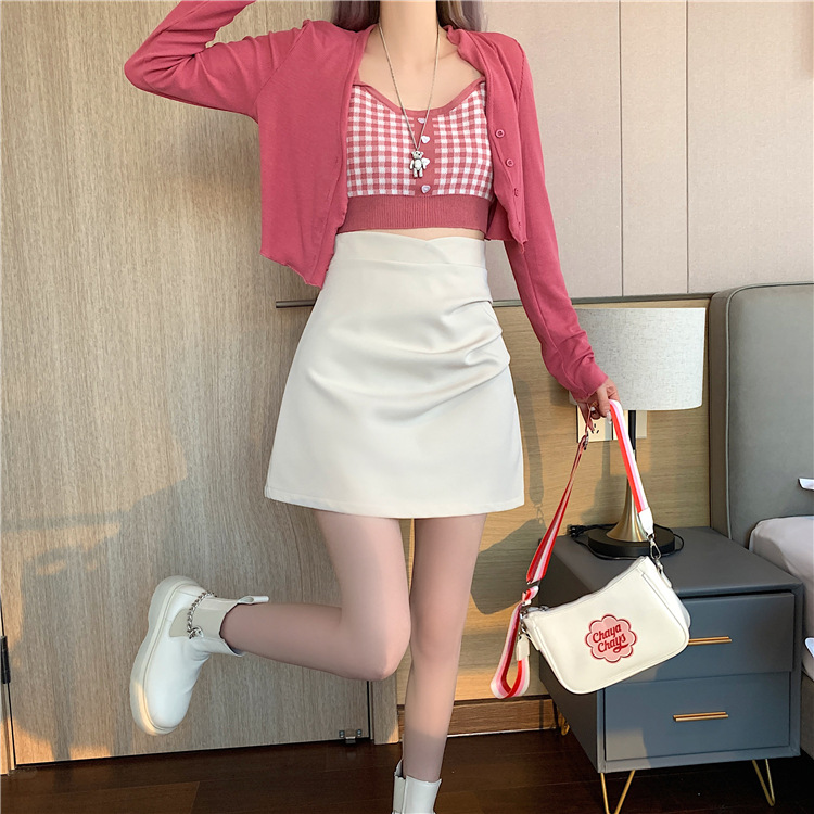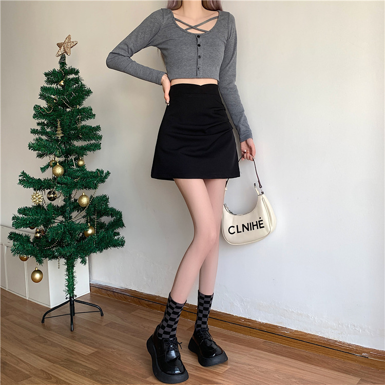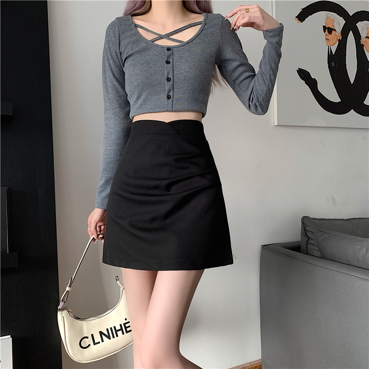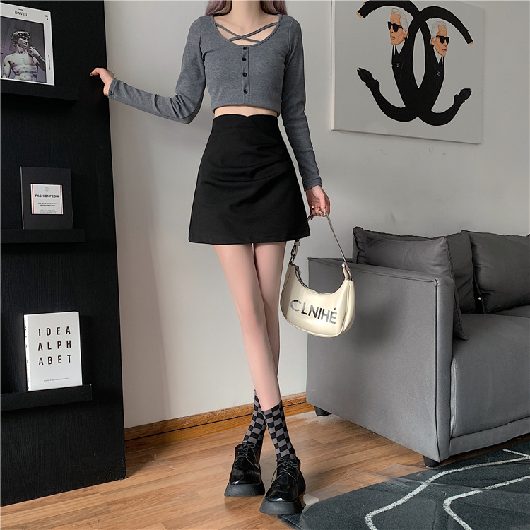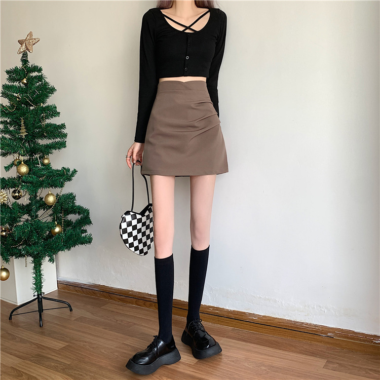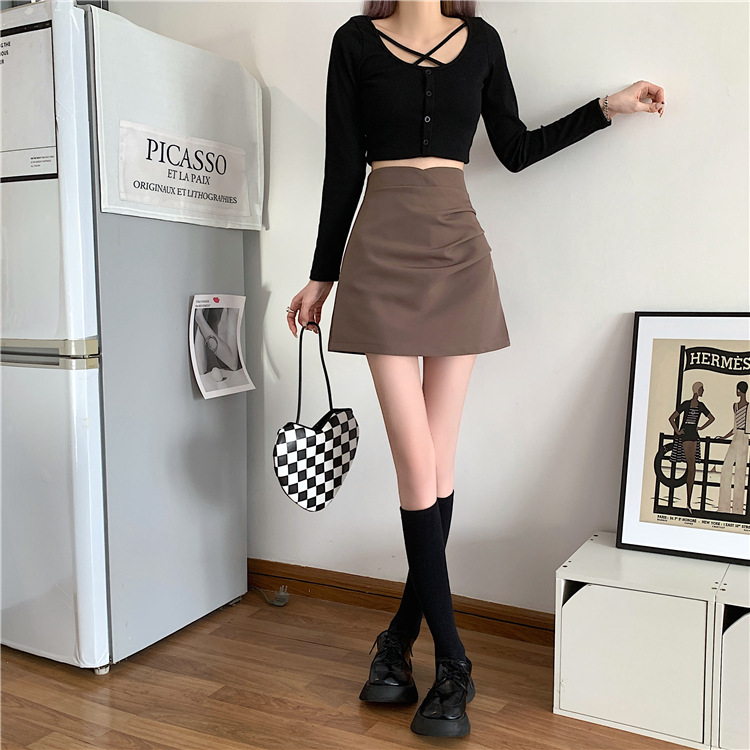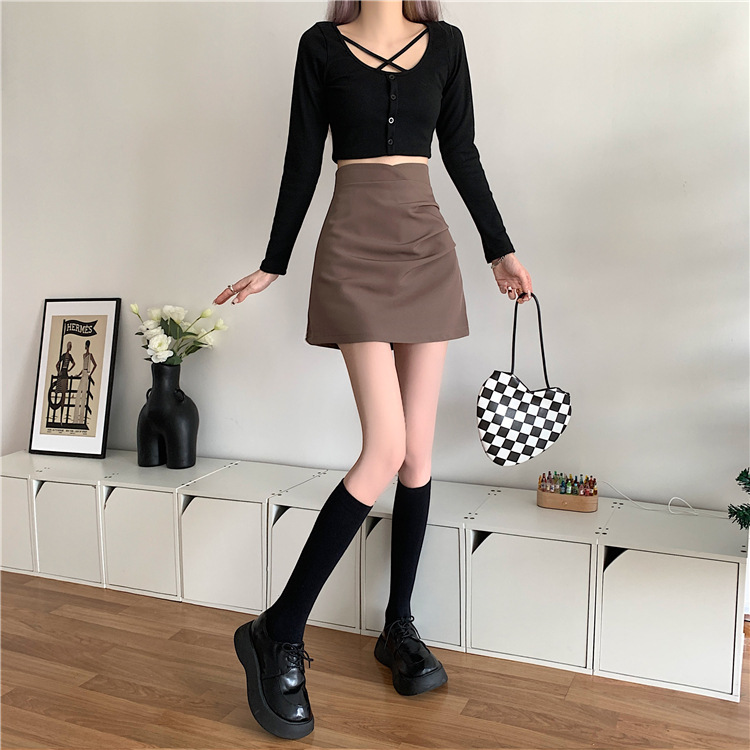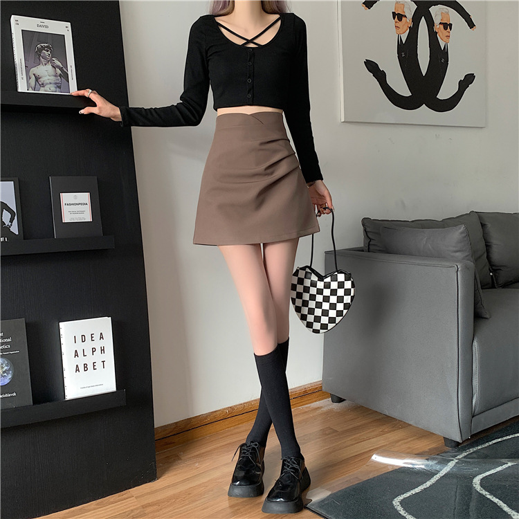 【显高显腿长夏季半身裙女士新款】抽褶高腰不规则显瘦百搭A字开叉包臀裙,显瘦百搭,任意搭配