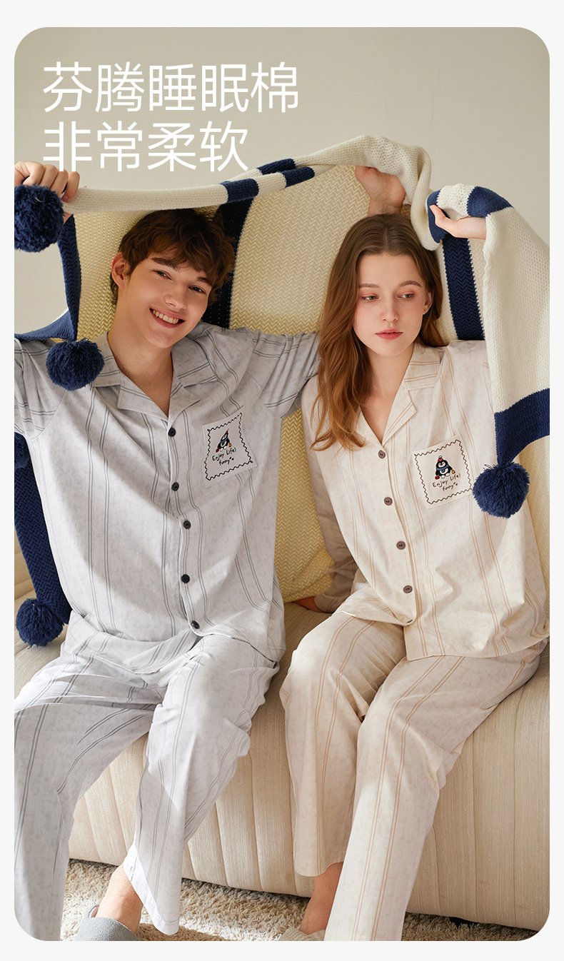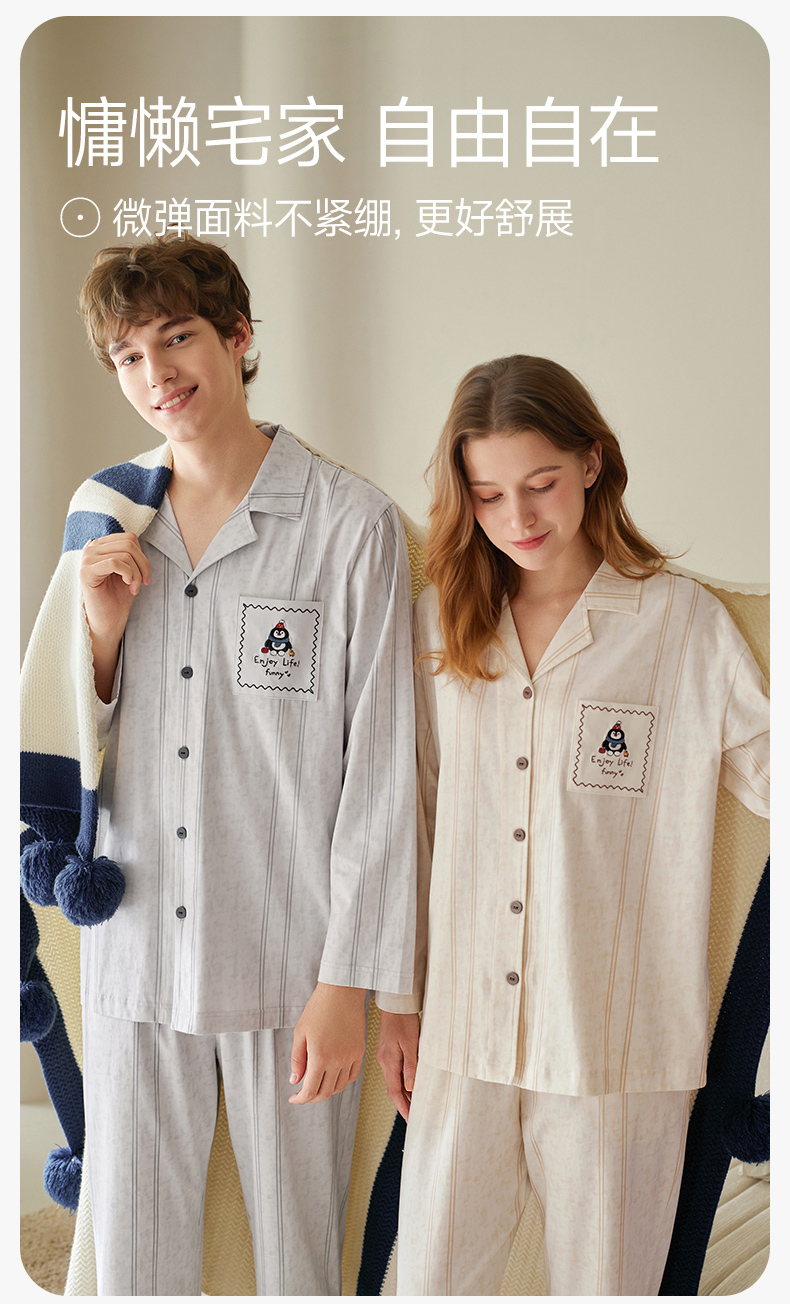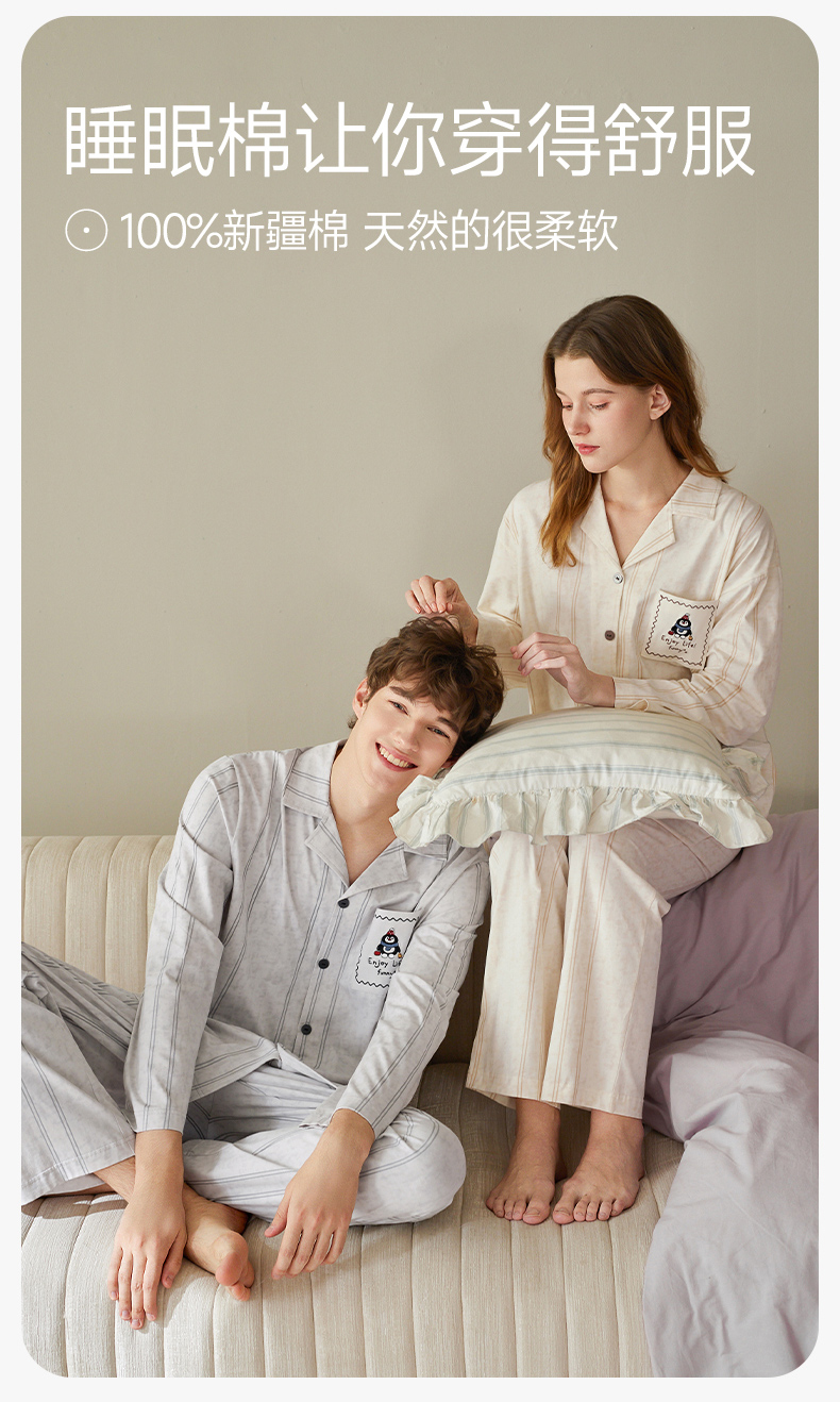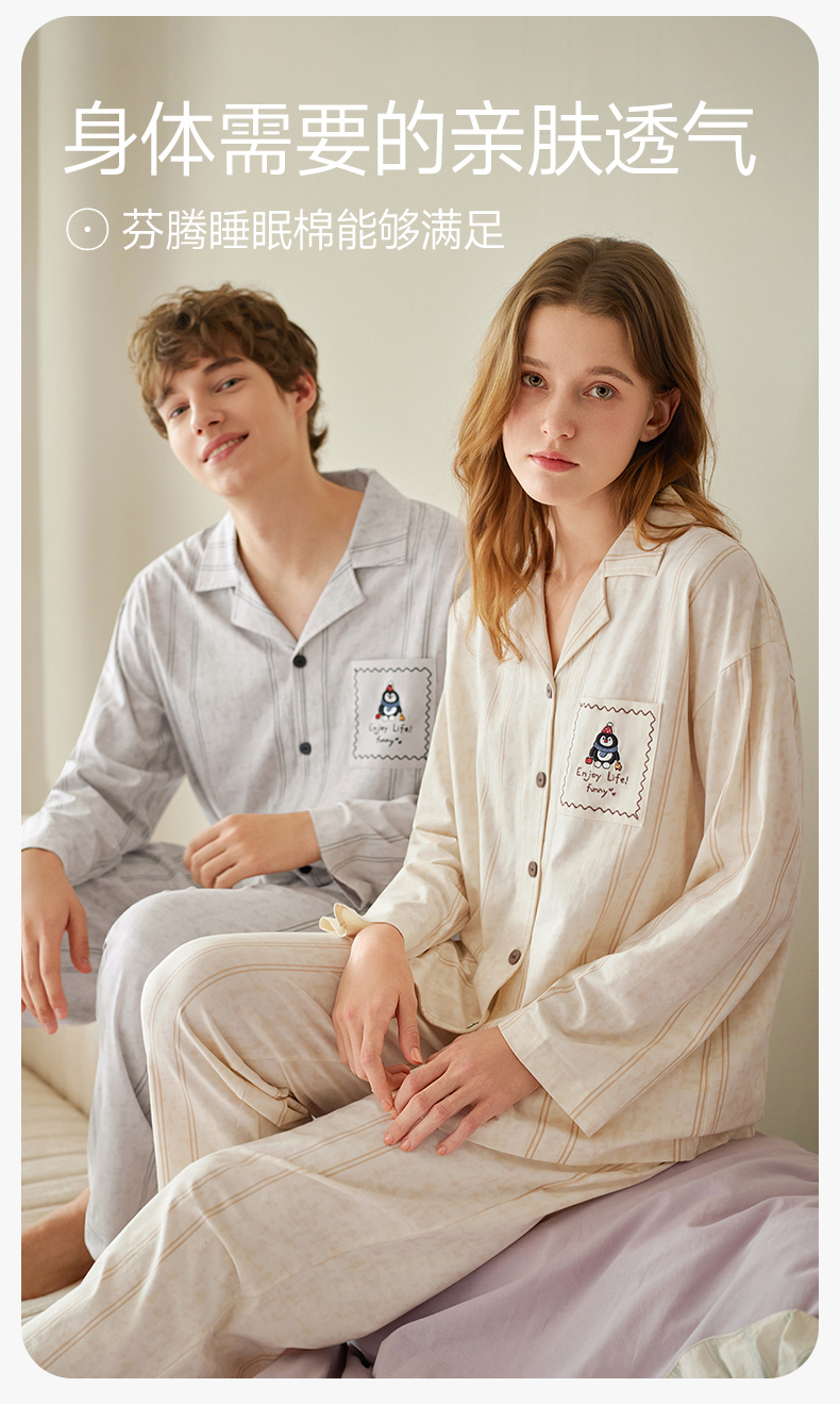 (合作款)芬腾情侣睡衣春秋季纯棉长袖套装yc0209001