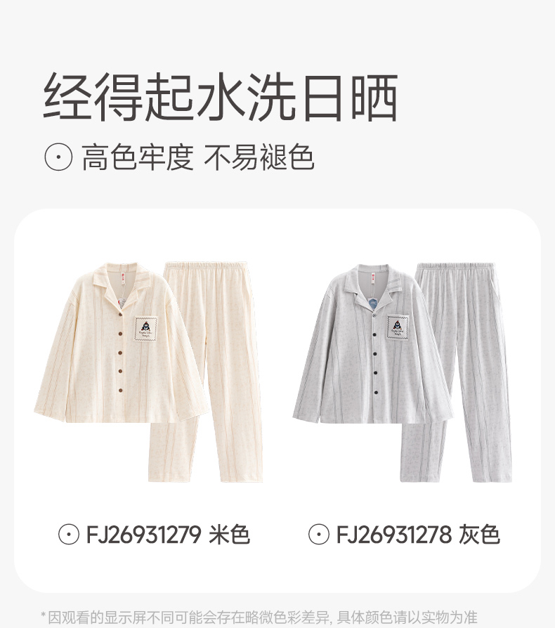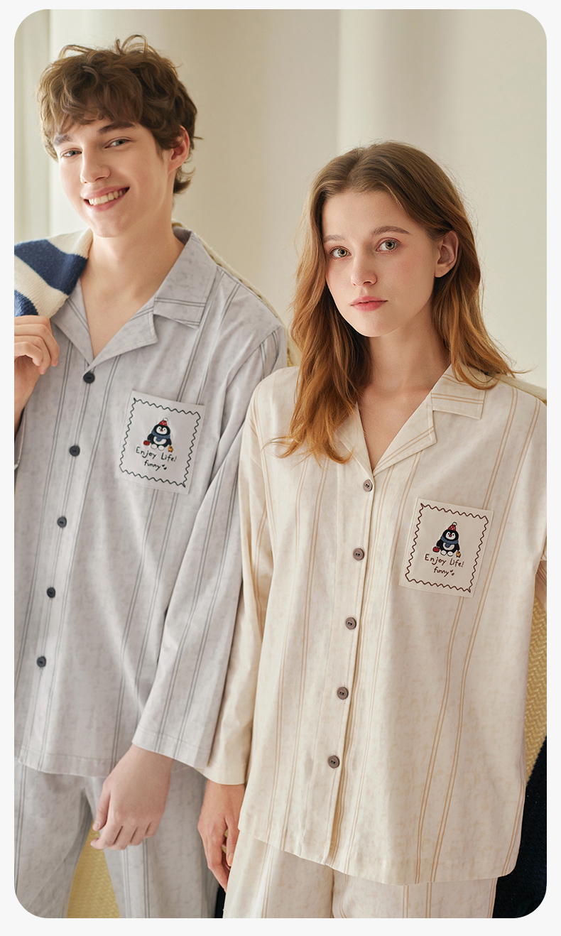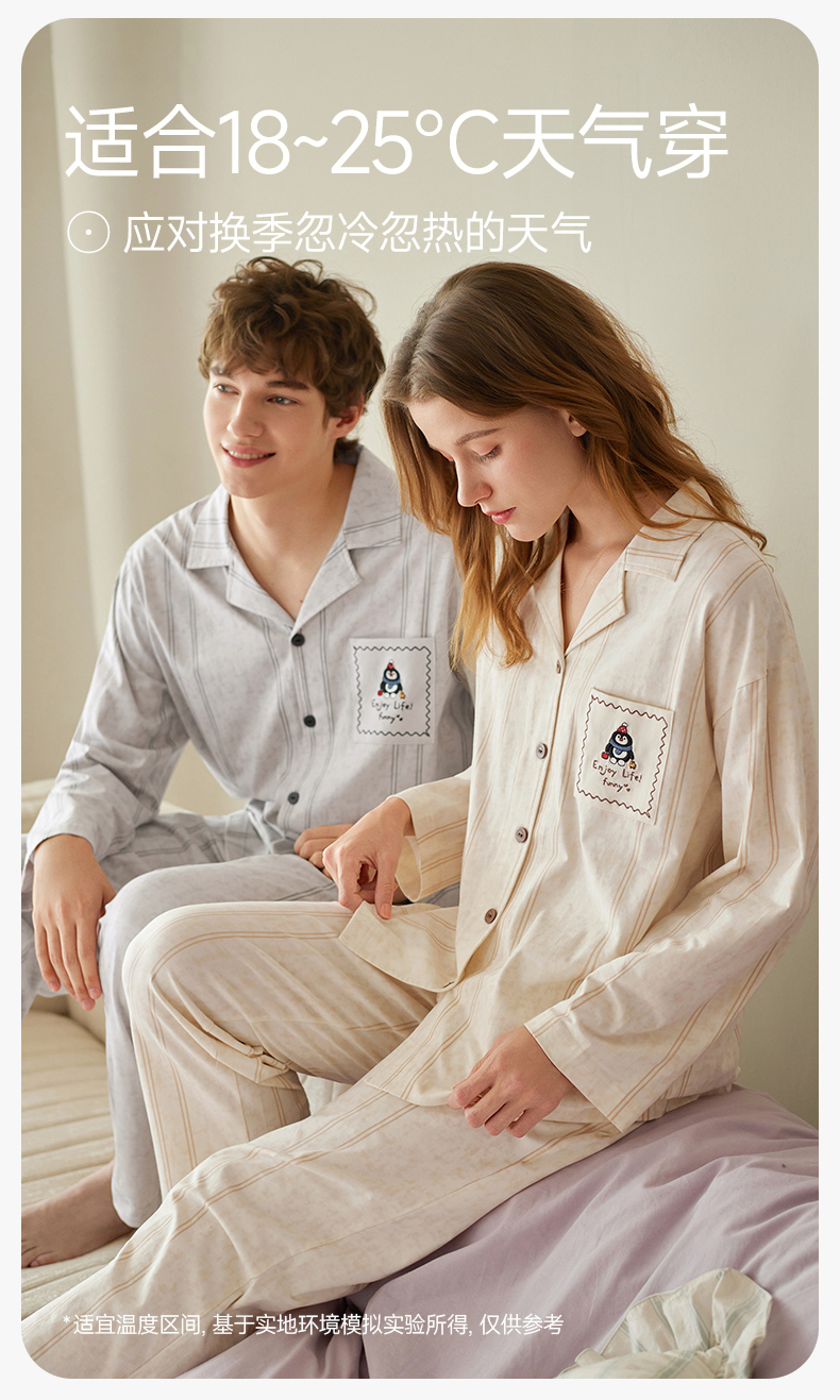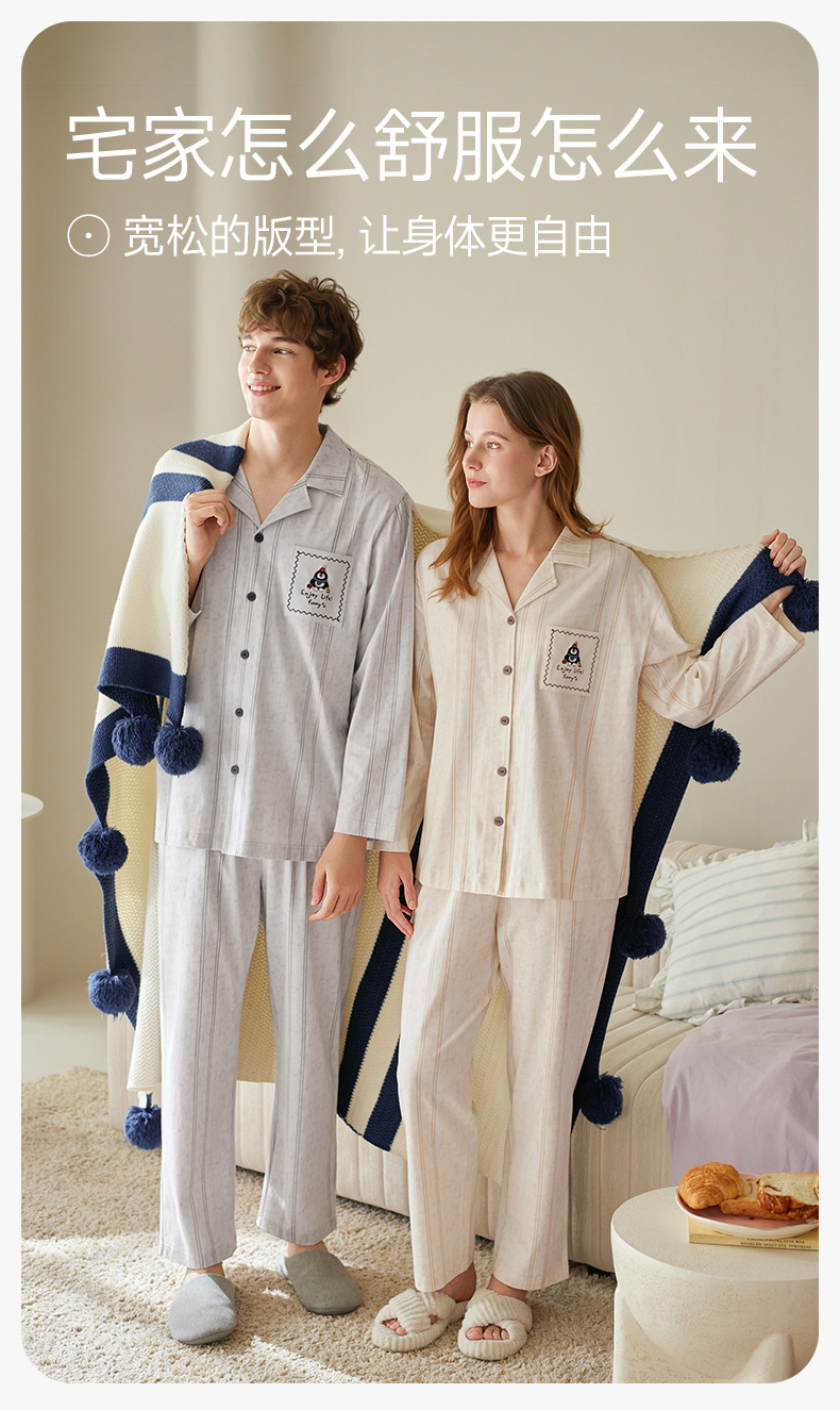 (合作款)芬腾情侣睡衣春秋季纯棉长袖套装yc0209001