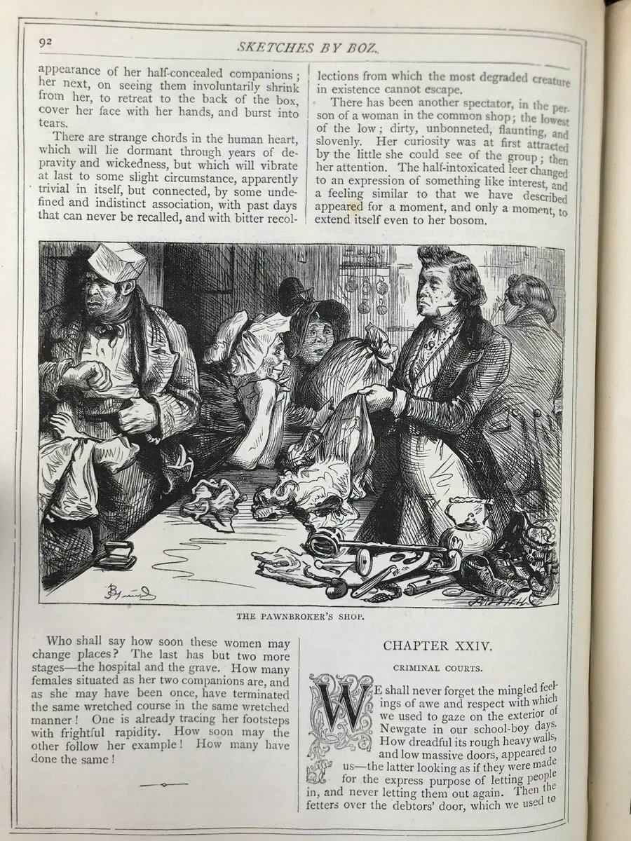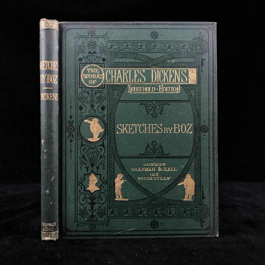 约19世纪后期 狄更斯《博兹札记》 34幅插图 漆布精装16开