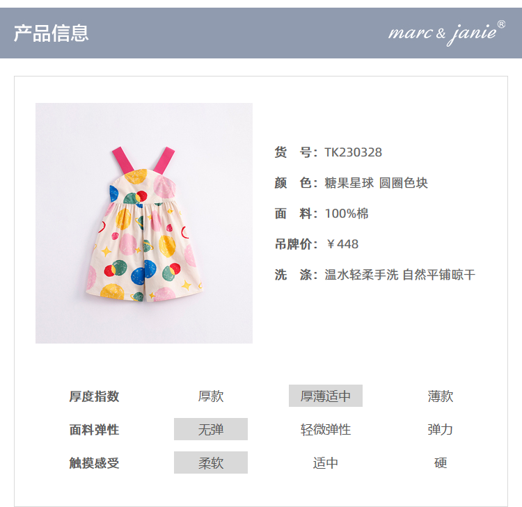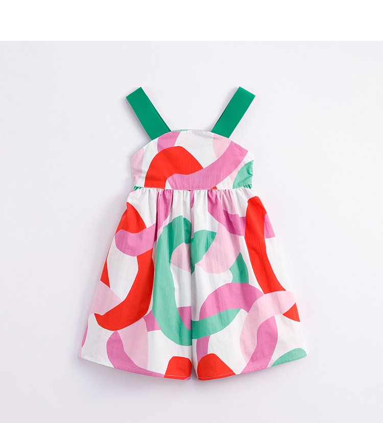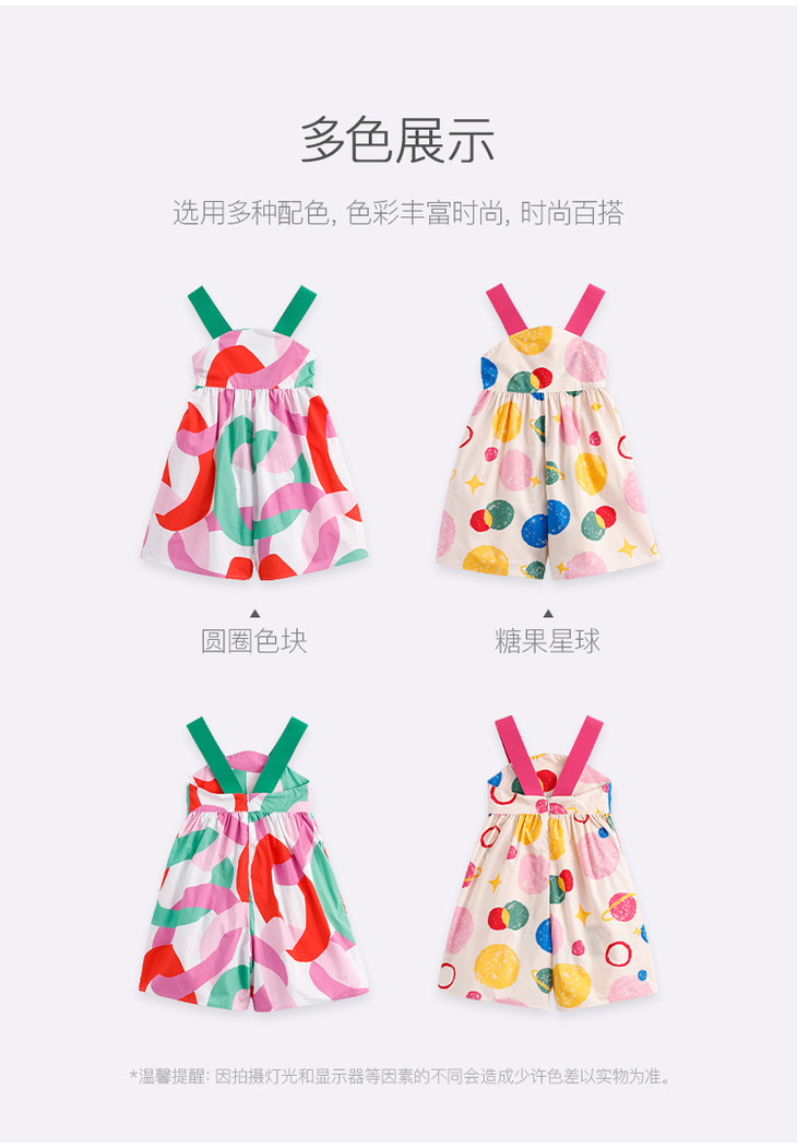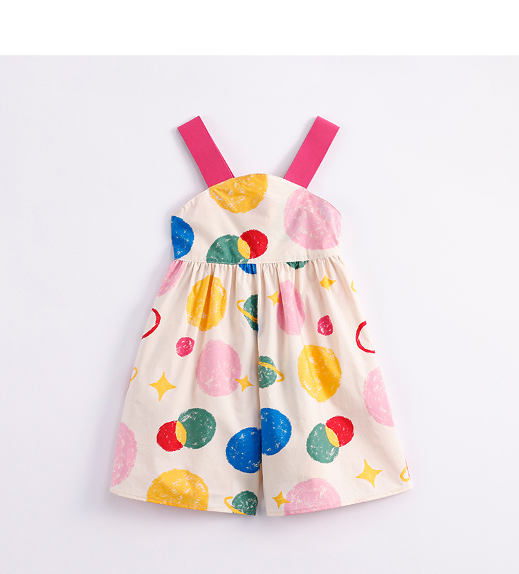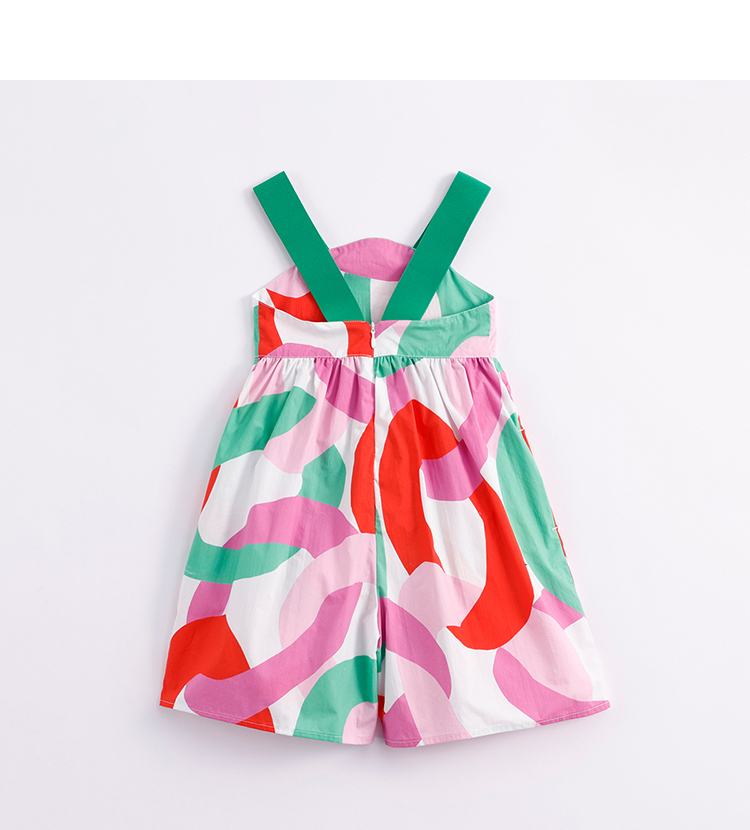 马克珍妮新款夏装 女童北欧风图案纯棉背带裤230328