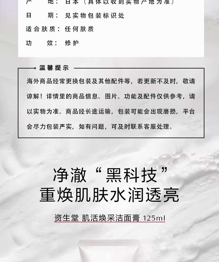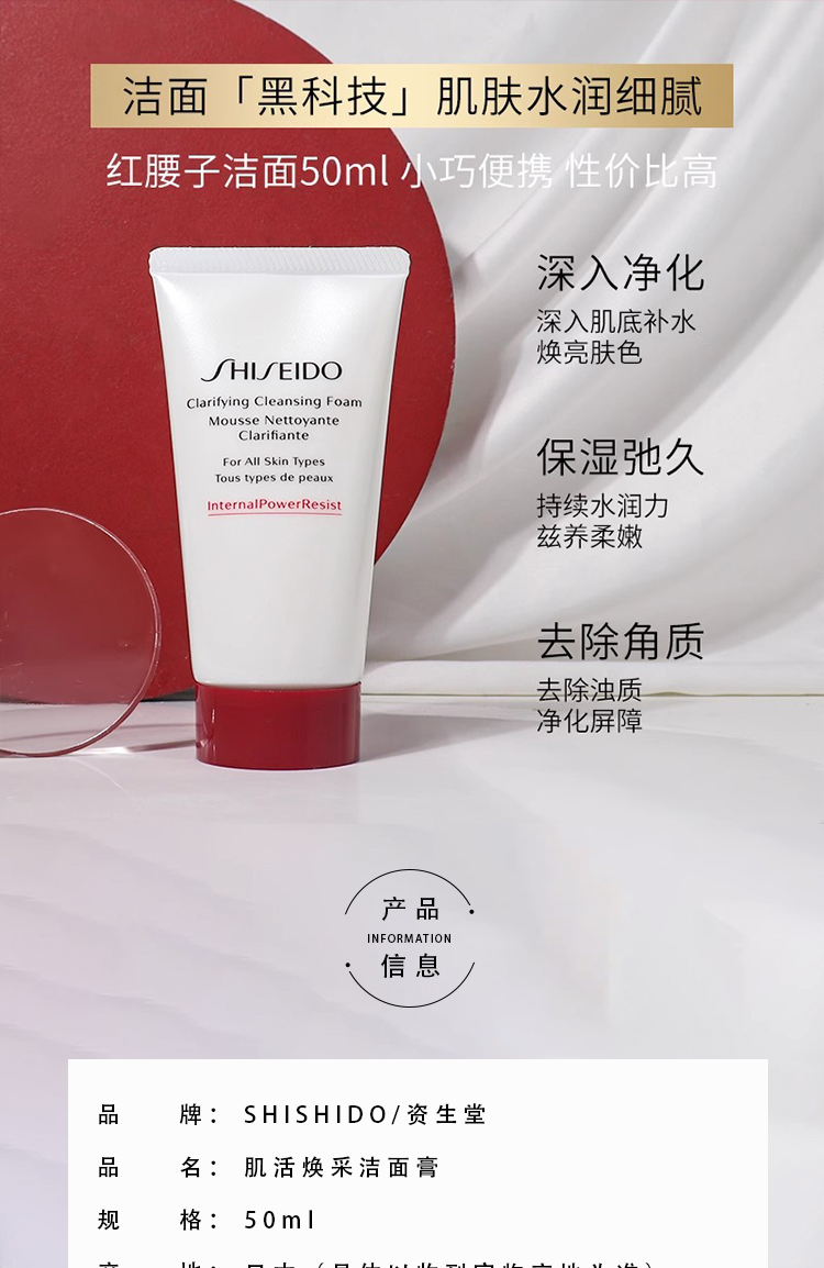 资生堂肌活焕采洁面膏50ml 红腰子洗面奶膏沫绵密清洁不紧绷