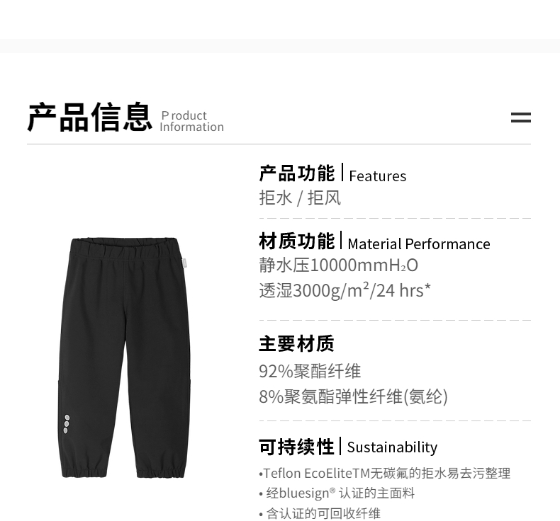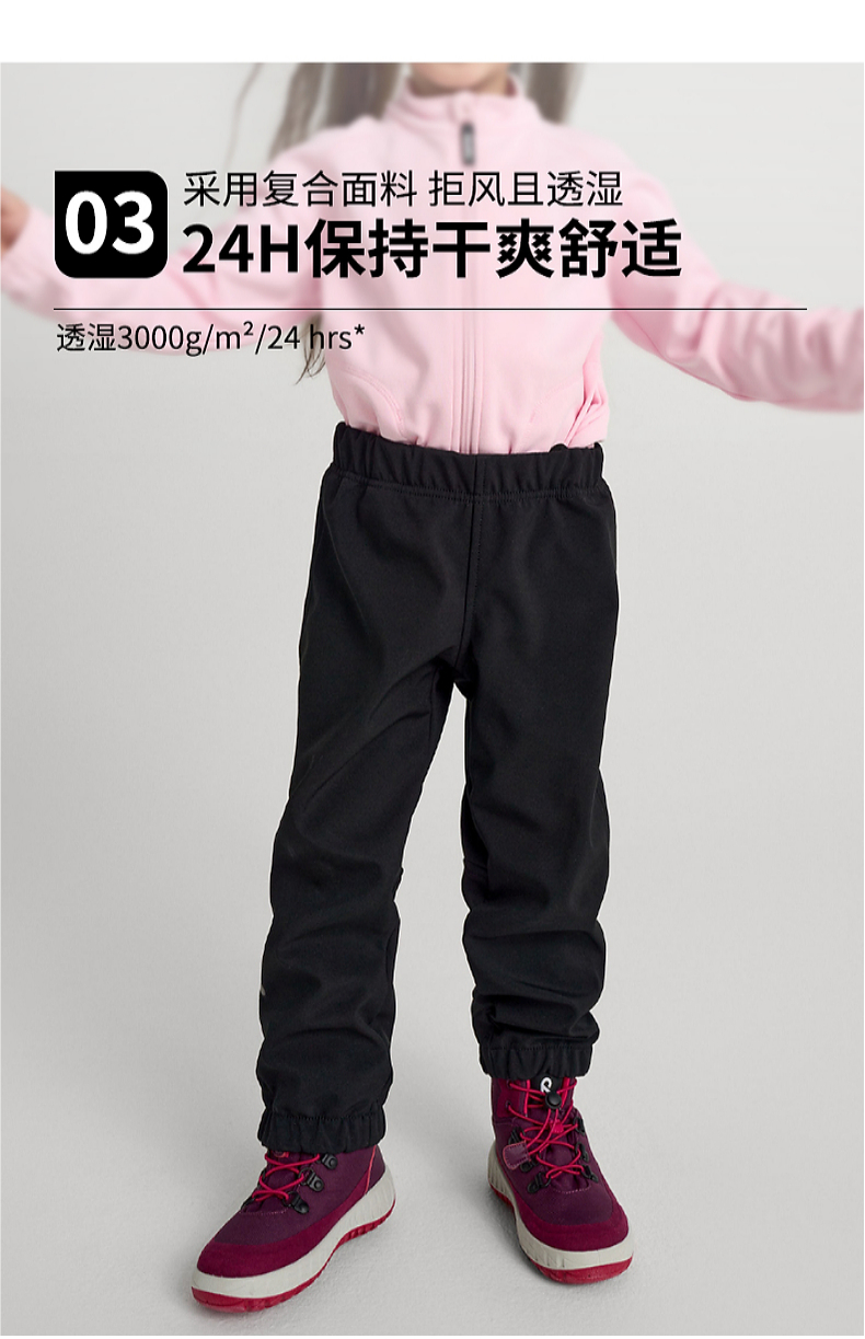 芬兰reima2024年秋冬新款男女儿童中童运动拒水拒风透湿软壳裤子