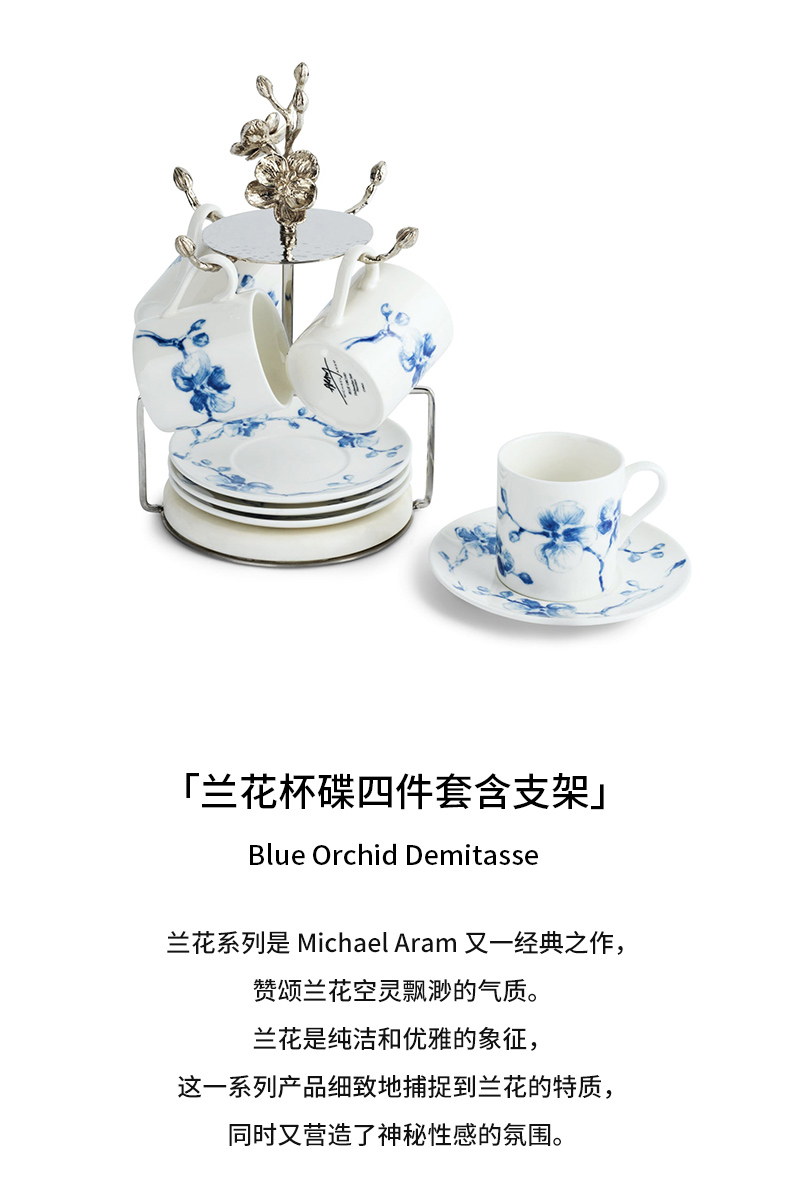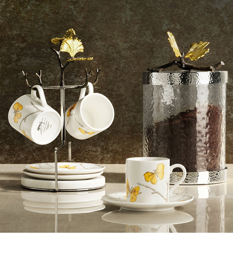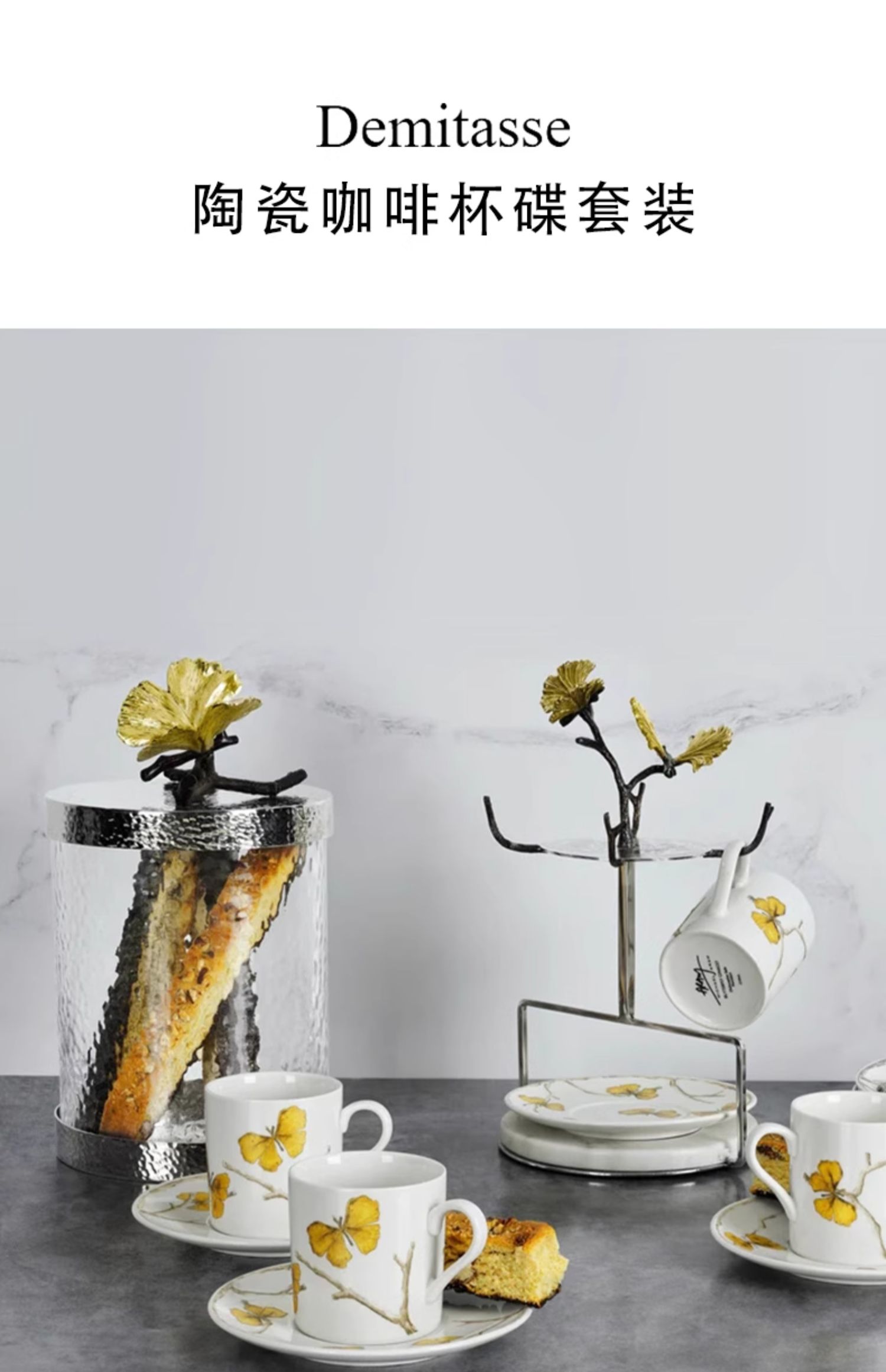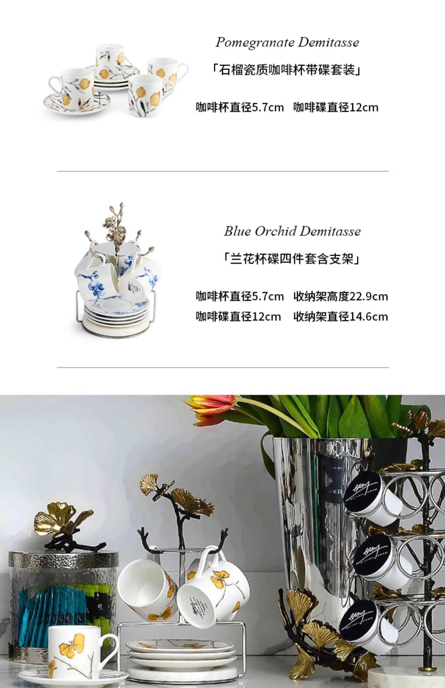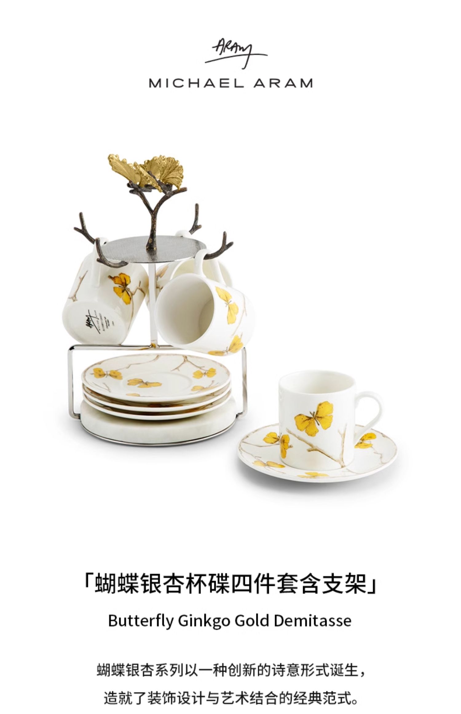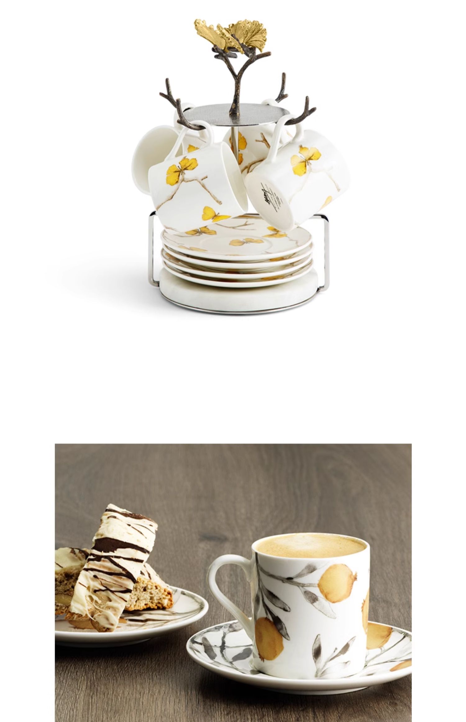 Michael Aram 兰花/蝴蝶银杏杯碟四件套含支架 送礼女生茶具陶瓷茶杯咖啡杯