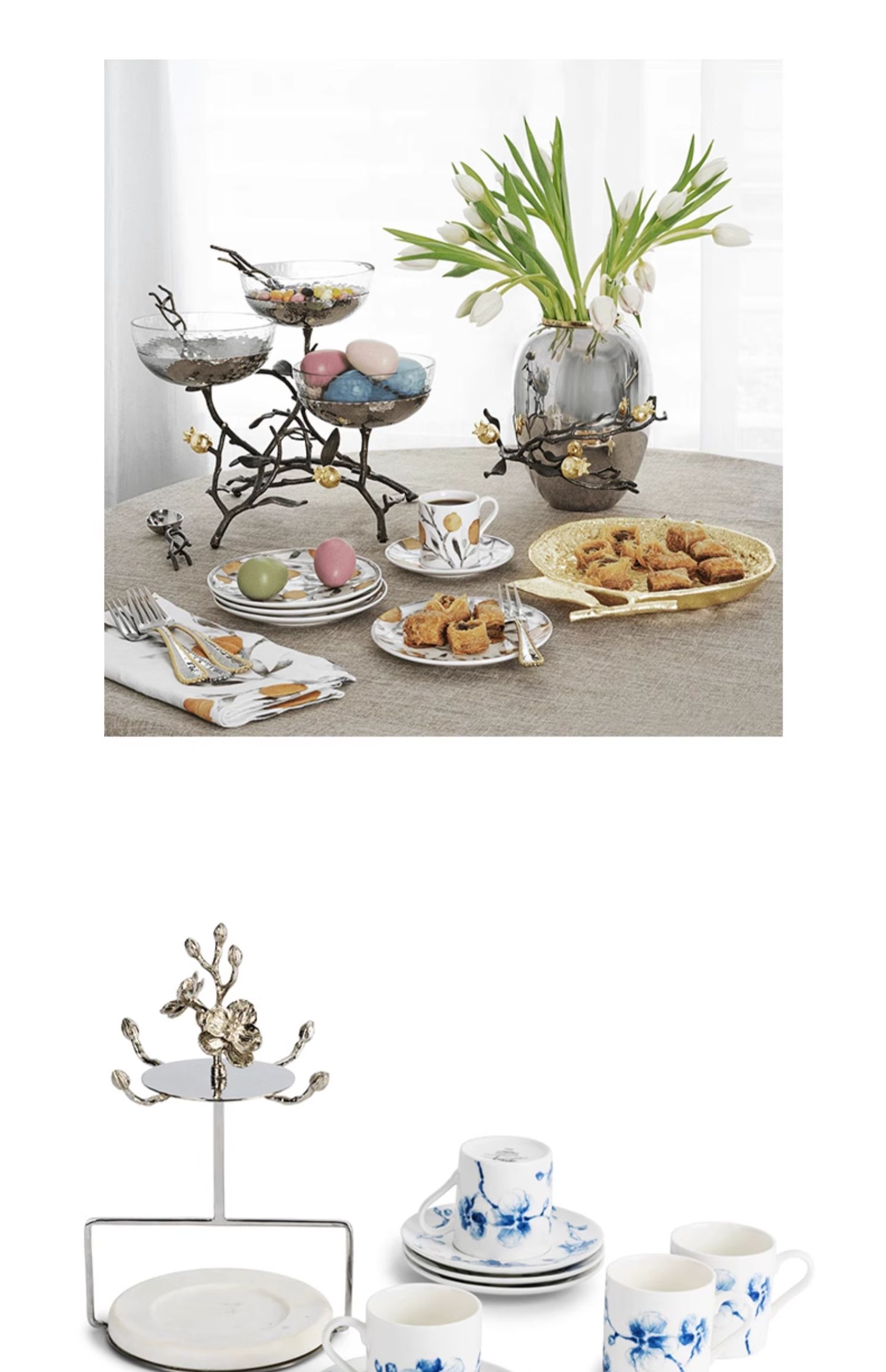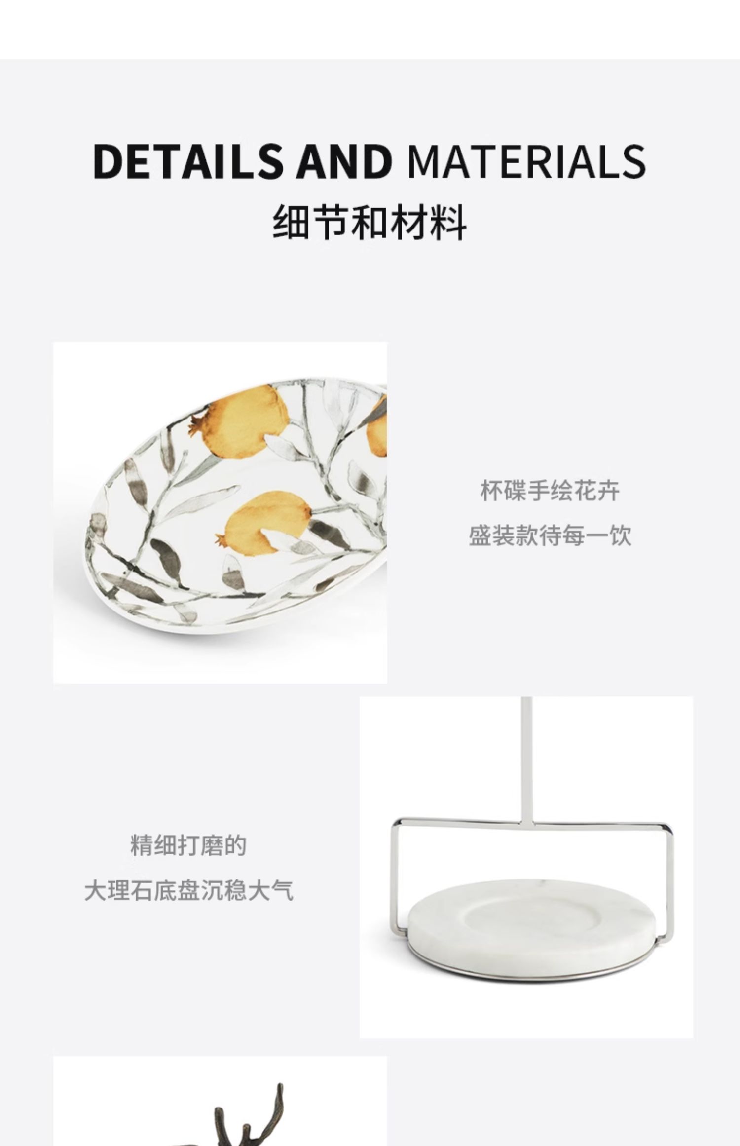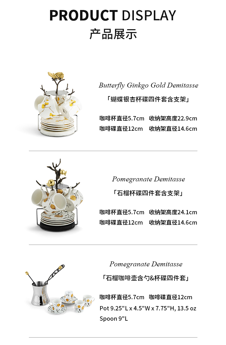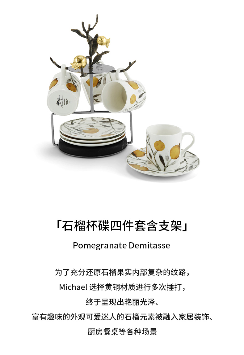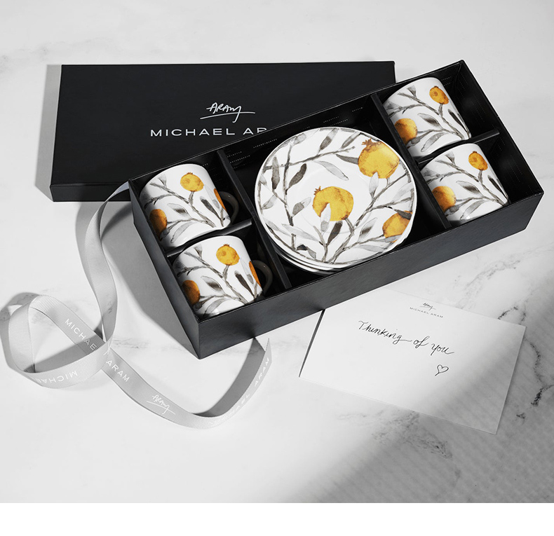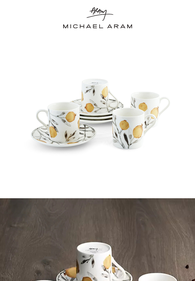 Michael Aram 兰花/蝴蝶银杏杯碟四件套含支架 送礼女生茶具陶瓷茶杯咖啡杯