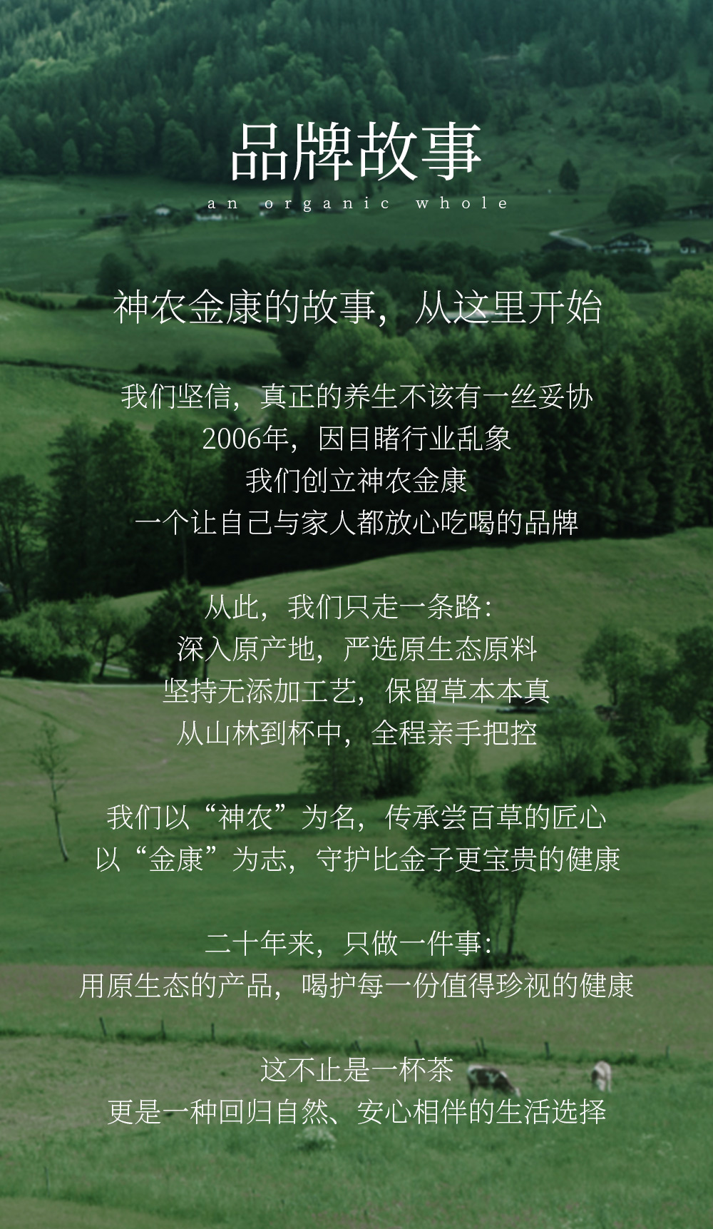 神农金康深耕滋补行业18年,用心做原生态真滋补好产品。主营绞股蓝、青钱柳、杜仲、罗布麻、莓茶、丁香、枸杞、人参等单一养生茶及清酸茶、红豆薏米茶等组合茶方,及各类有机健康炖煮食材及健康养生零食。