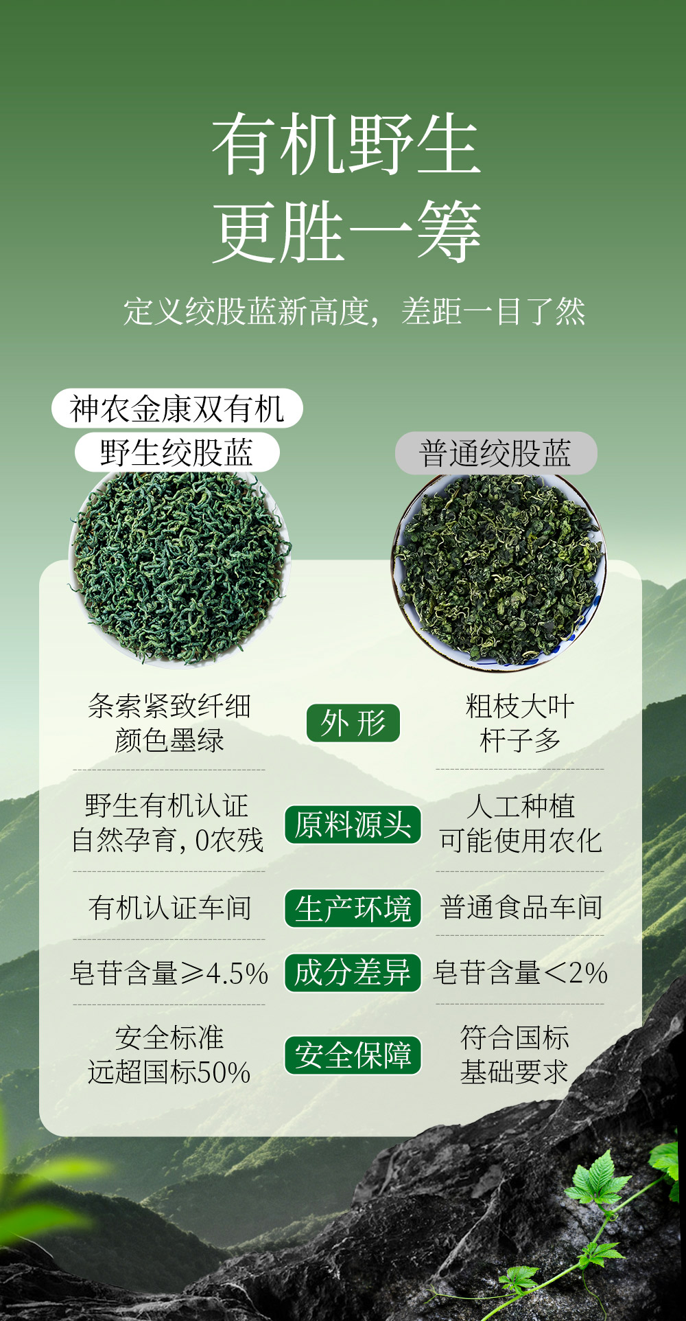 神农金康有机绞股蓝150g深山嫩芽尖高山茶 养生茶