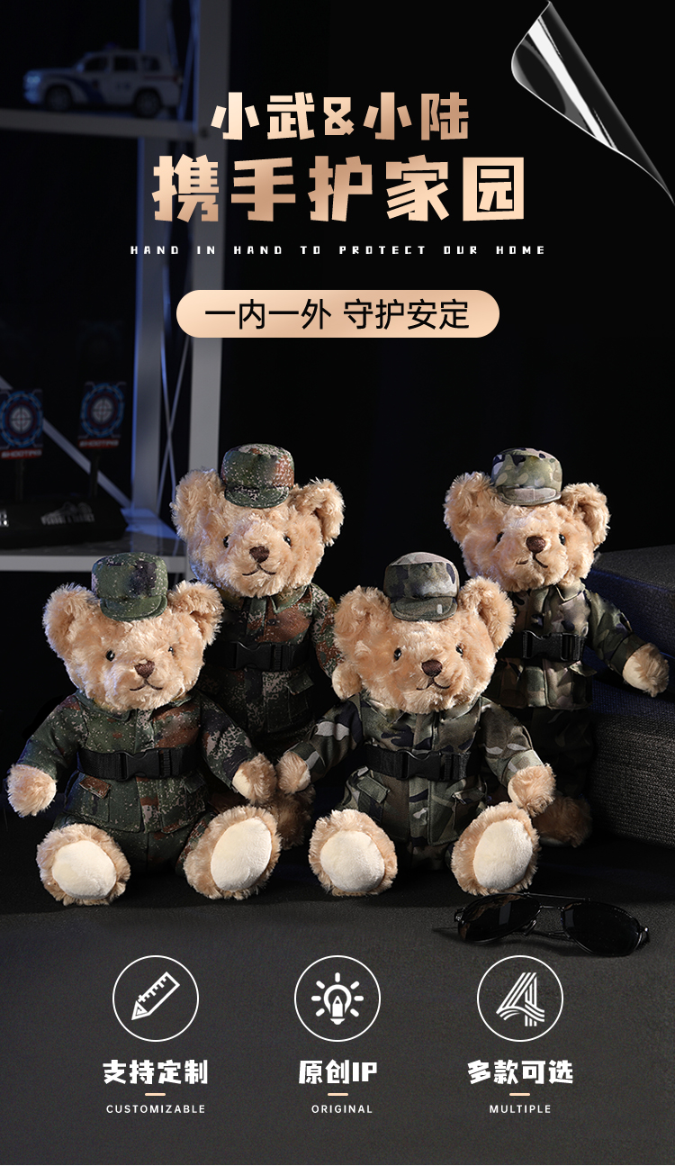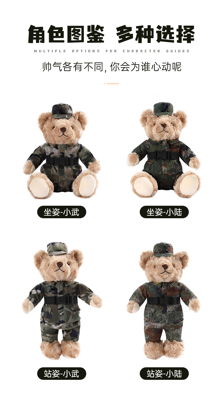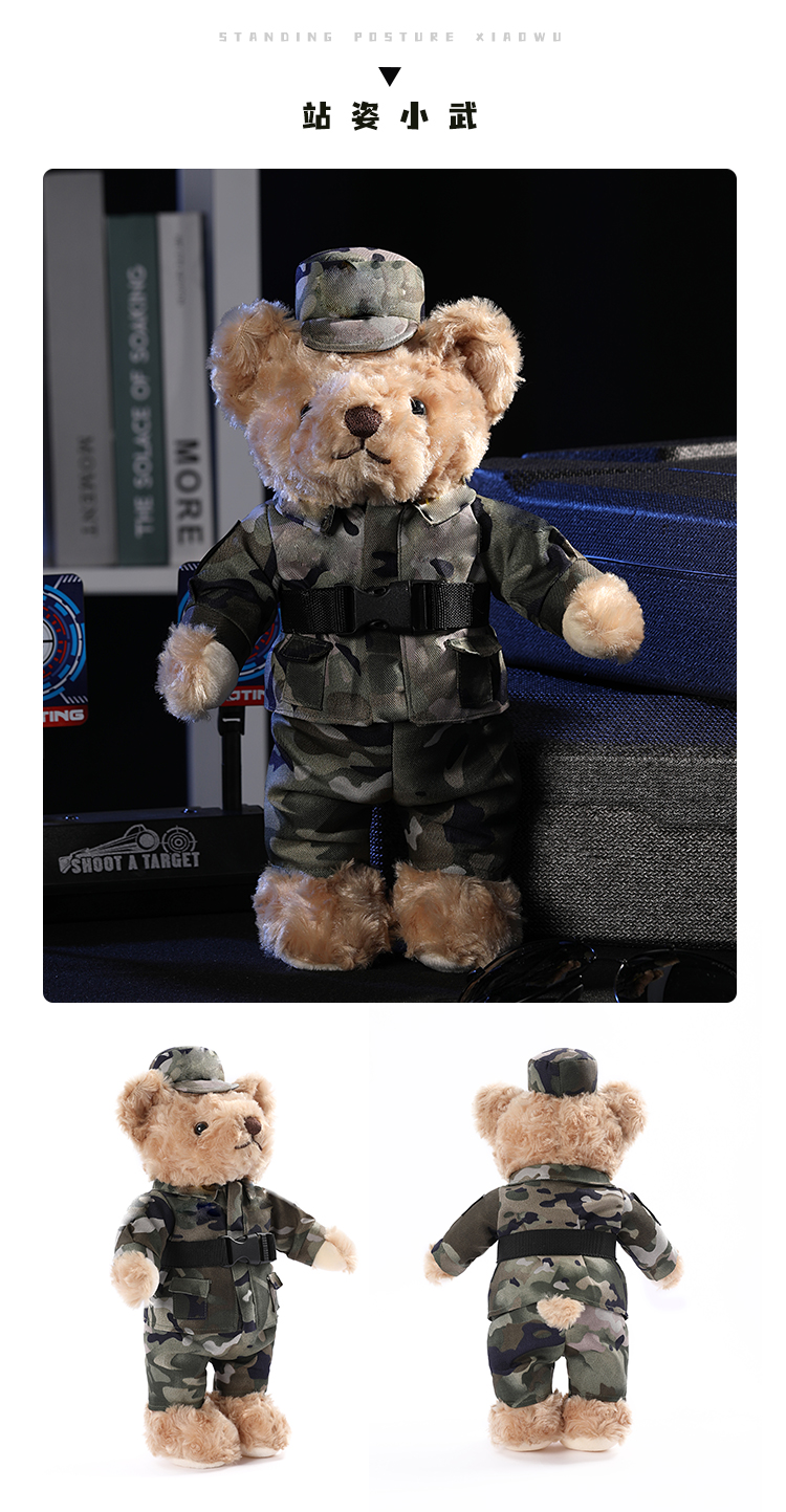 【迷彩小熊小陆&小武】毛绒公仔玩具儿童坐姿/站姿毛绒小熊玩偶布娃娃送礼礼品礼物