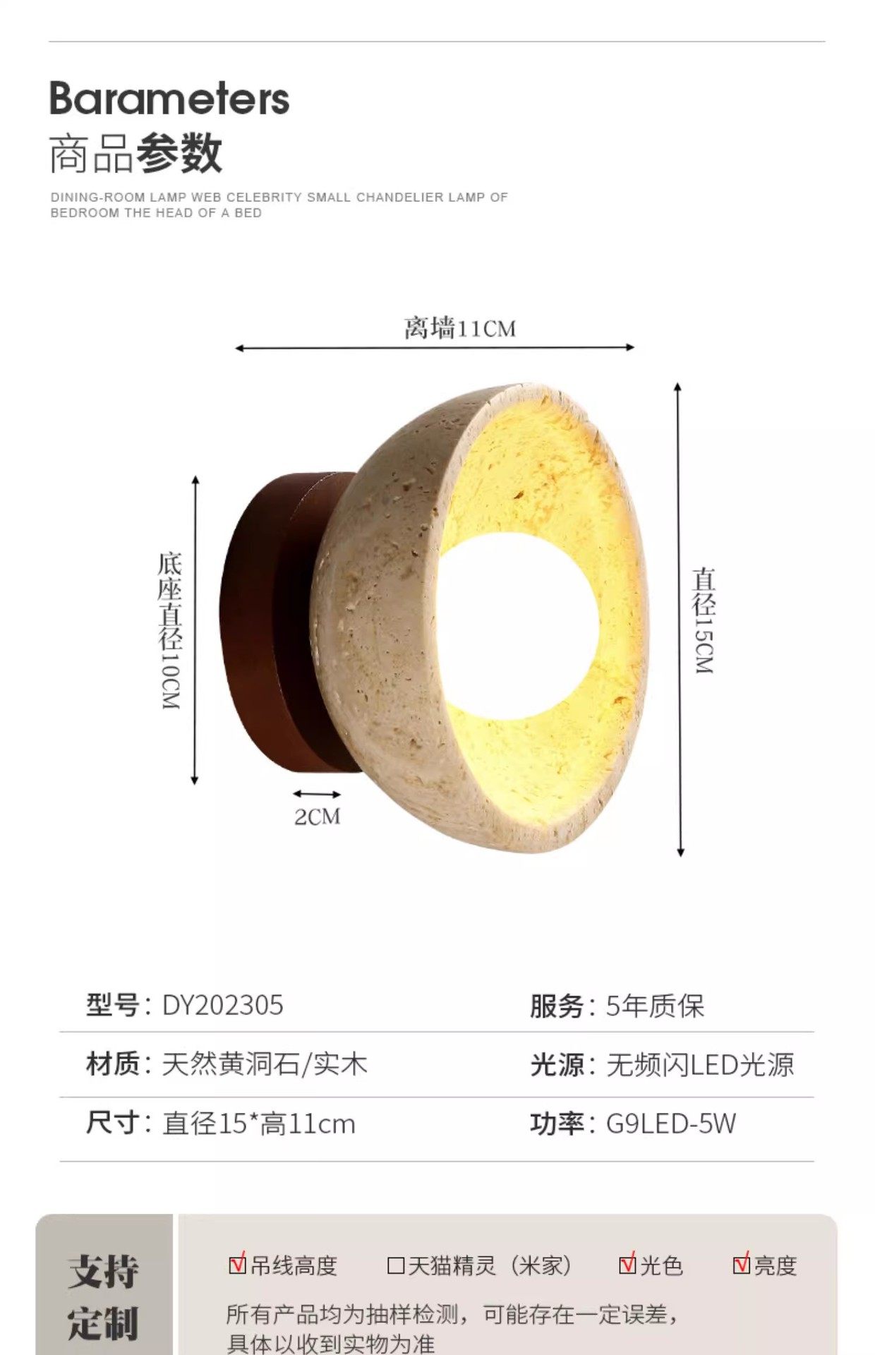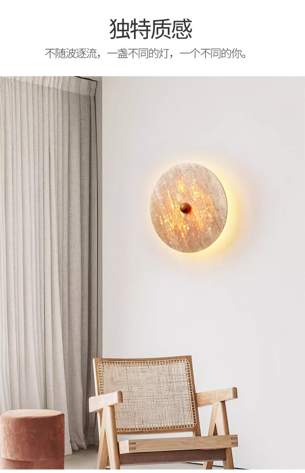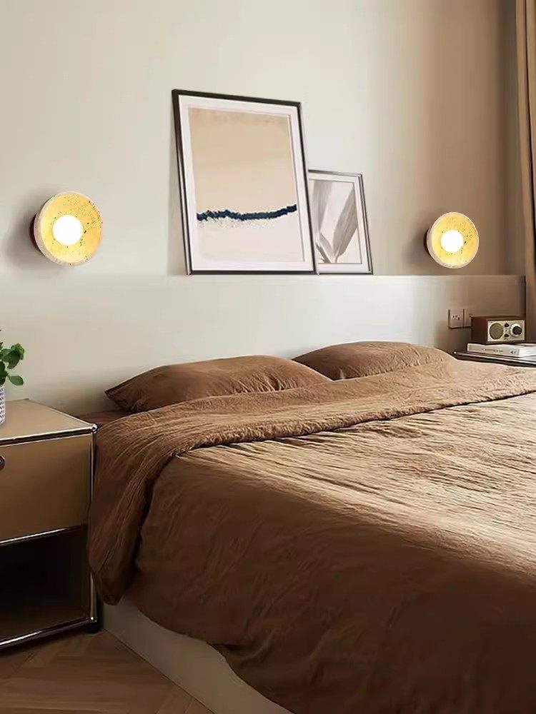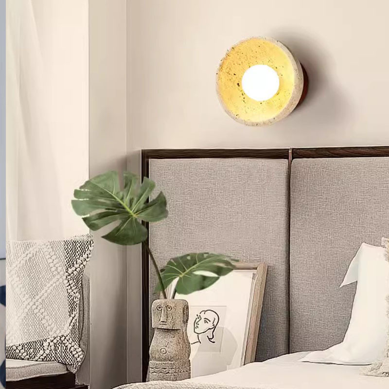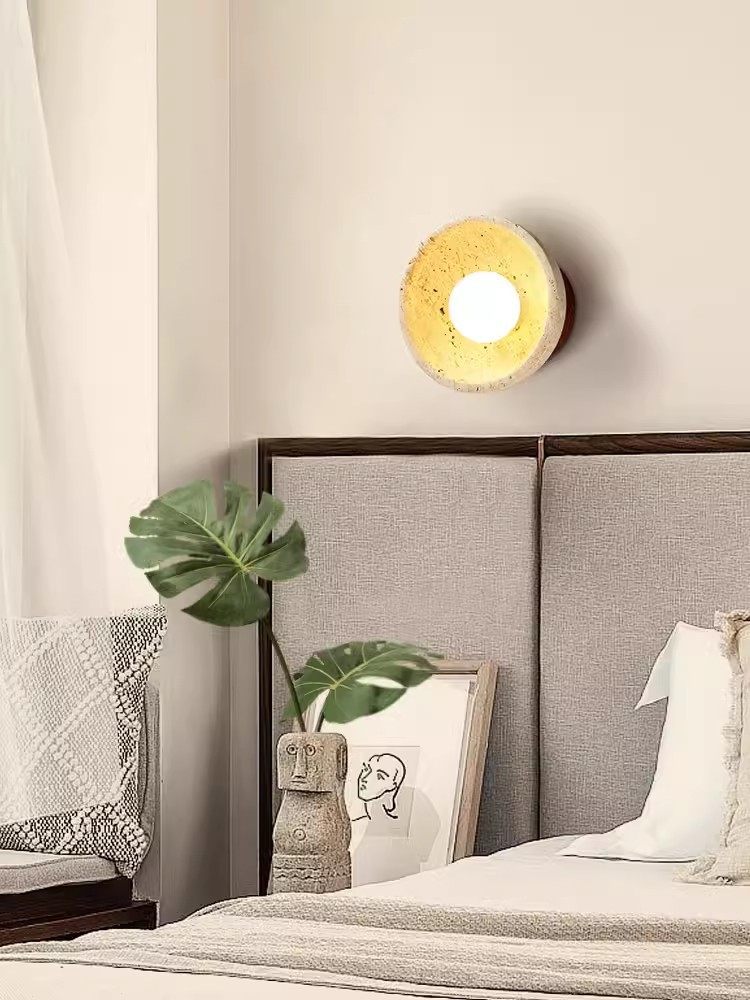 床头折叠黄洞带卧室侘寂风石壁壁灯接线旋转免壁灯过道灯伸缩开关