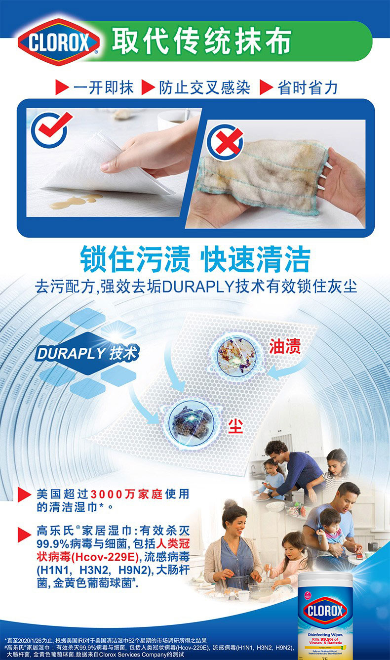 高乐氏家居桶装湿巾清新柠檬香型懒人抹布