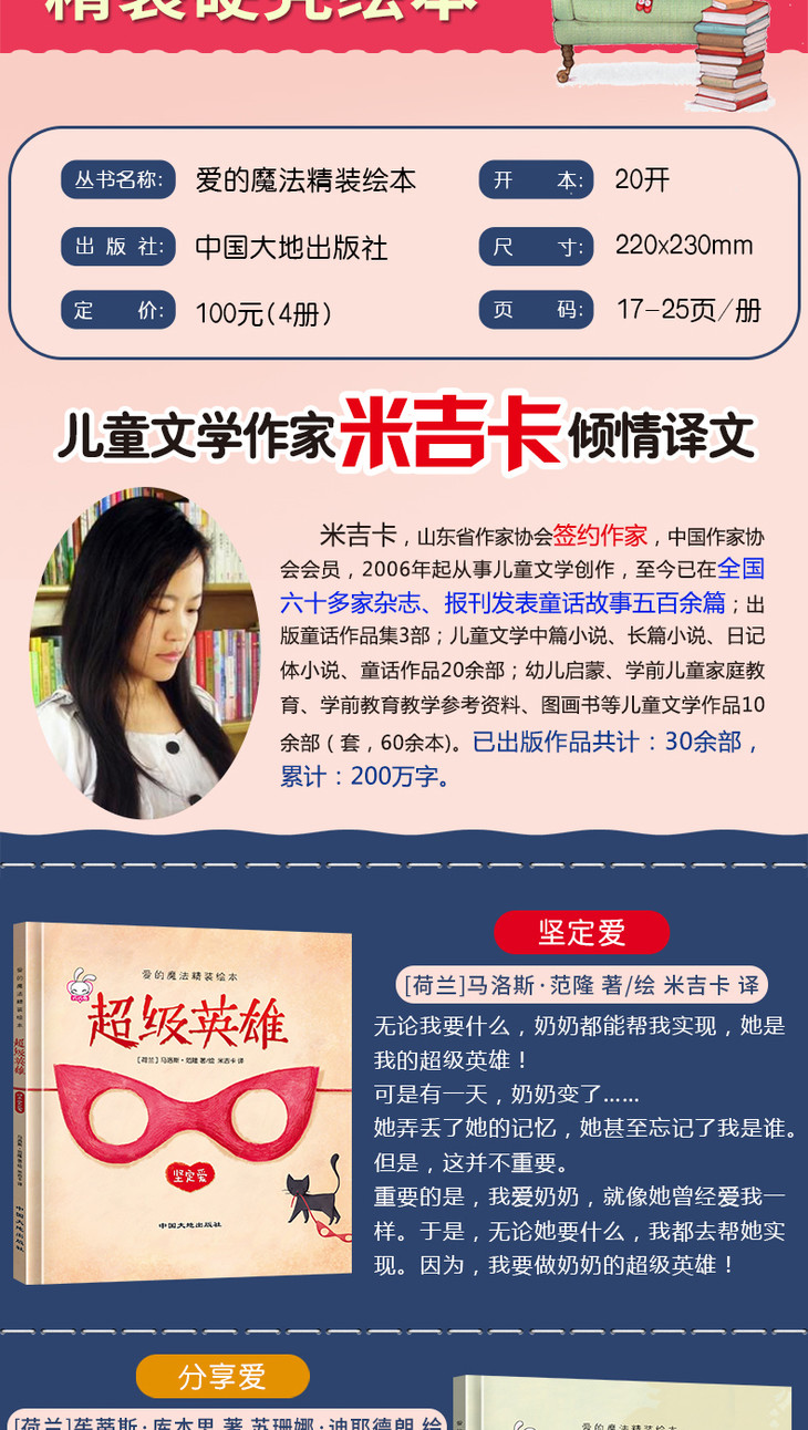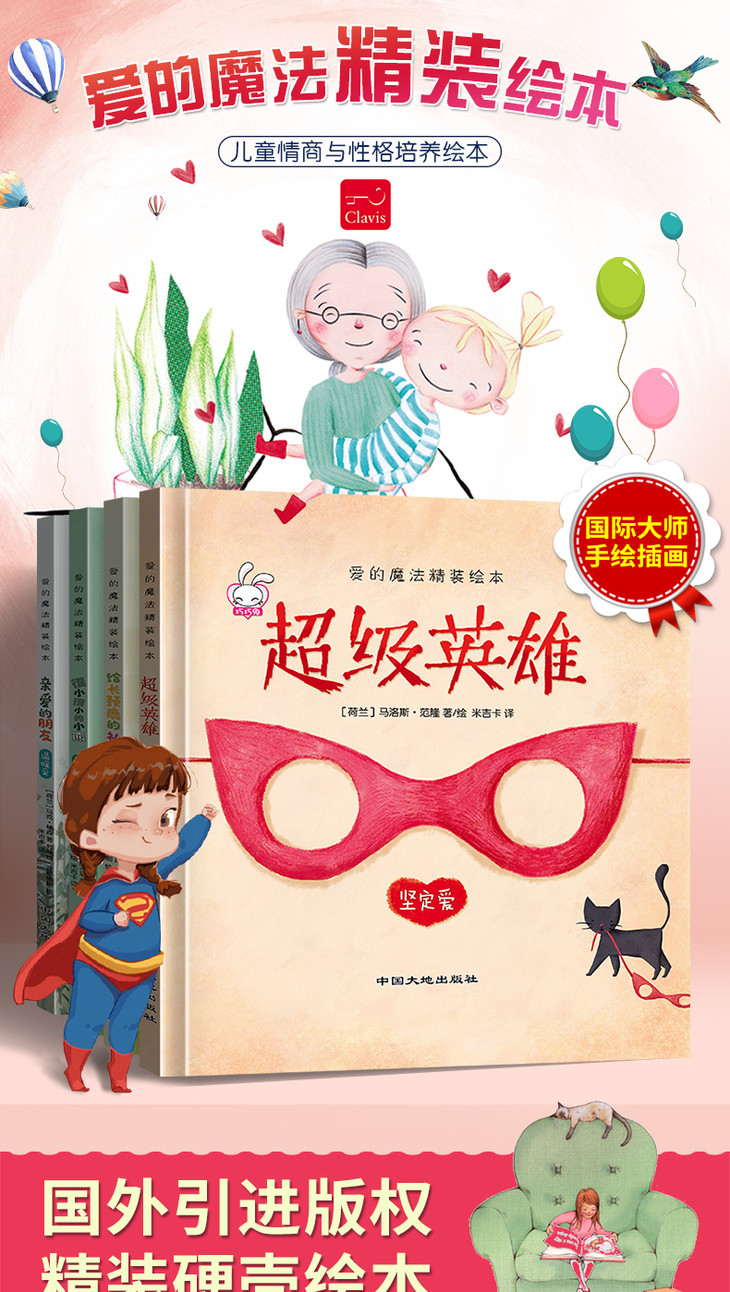爱的魔法全4册硬壳故事书精装绘本幼儿园大小中班2-3-4-5-6-7岁给长颈鹿的礼物超级英雄巧巧兔系列图书儿童睡前图画书