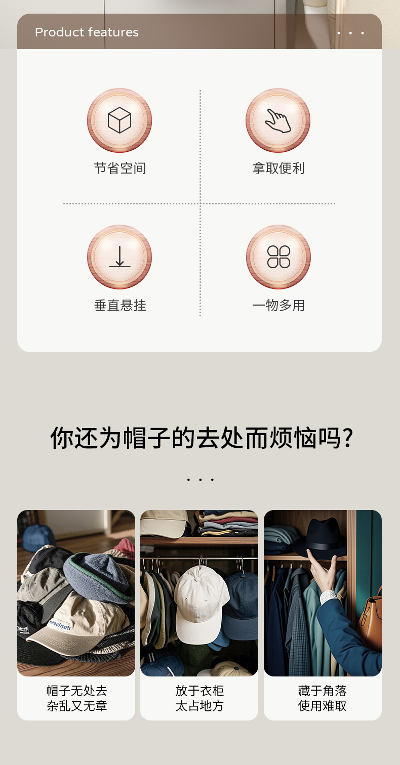 FaSoLa衣橱衣帽架免钉挂绳帽子收纳架衣柜简易悬挂挂架宿舍收纳挂绳