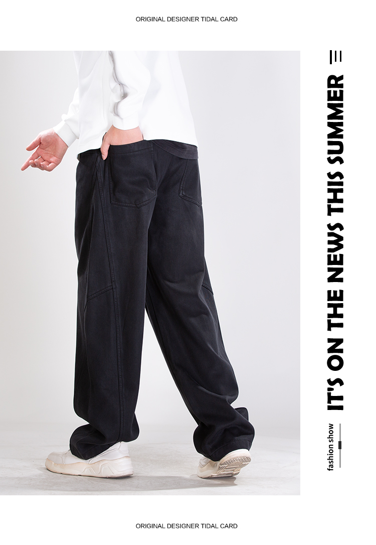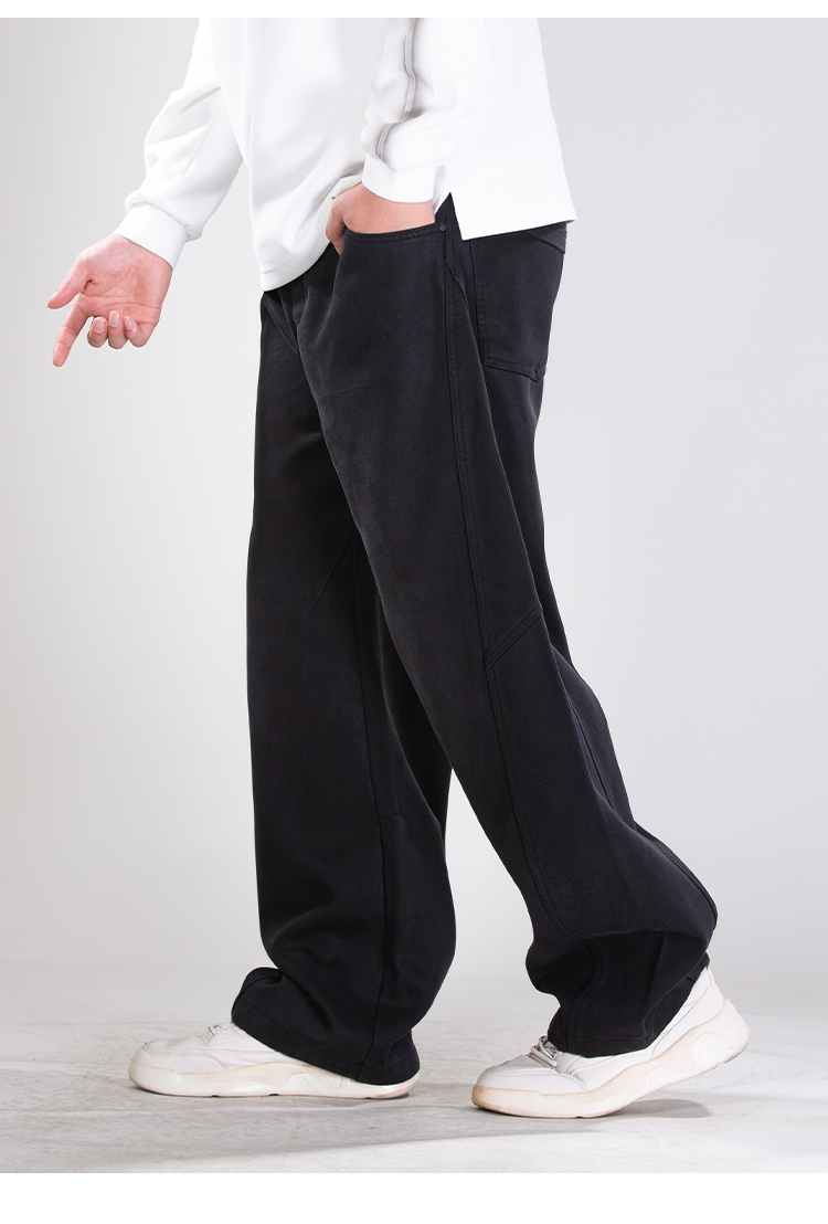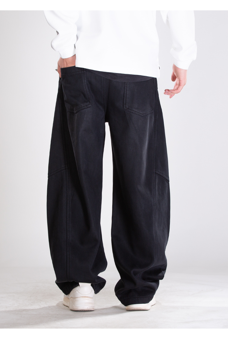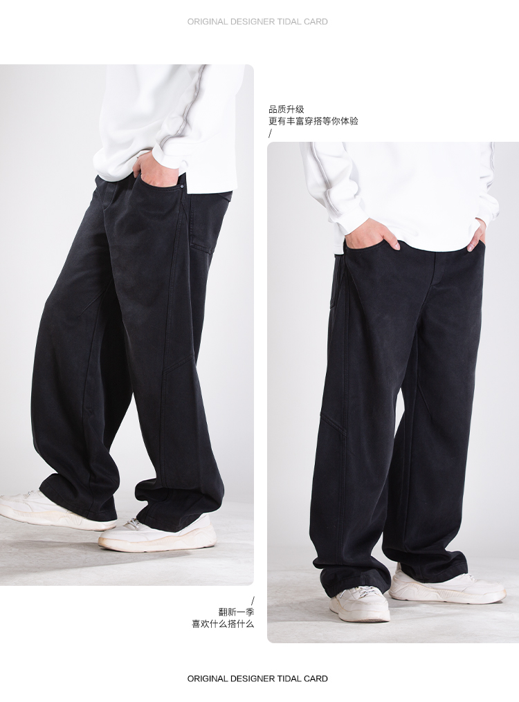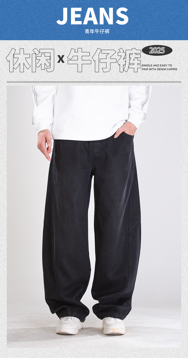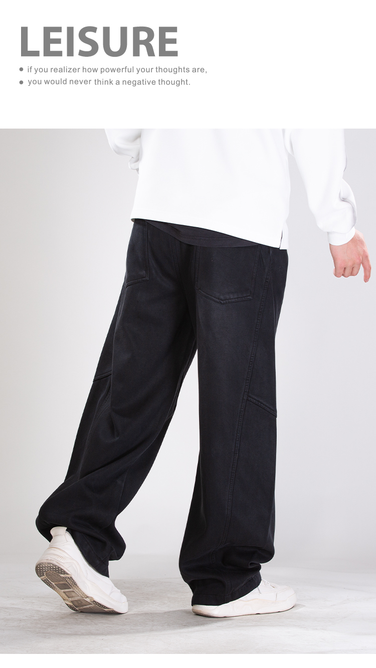 DRONKOO 2025 抽绳松紧腰两侧破缝前后喷色天丝一体绒厚牛仔长裤