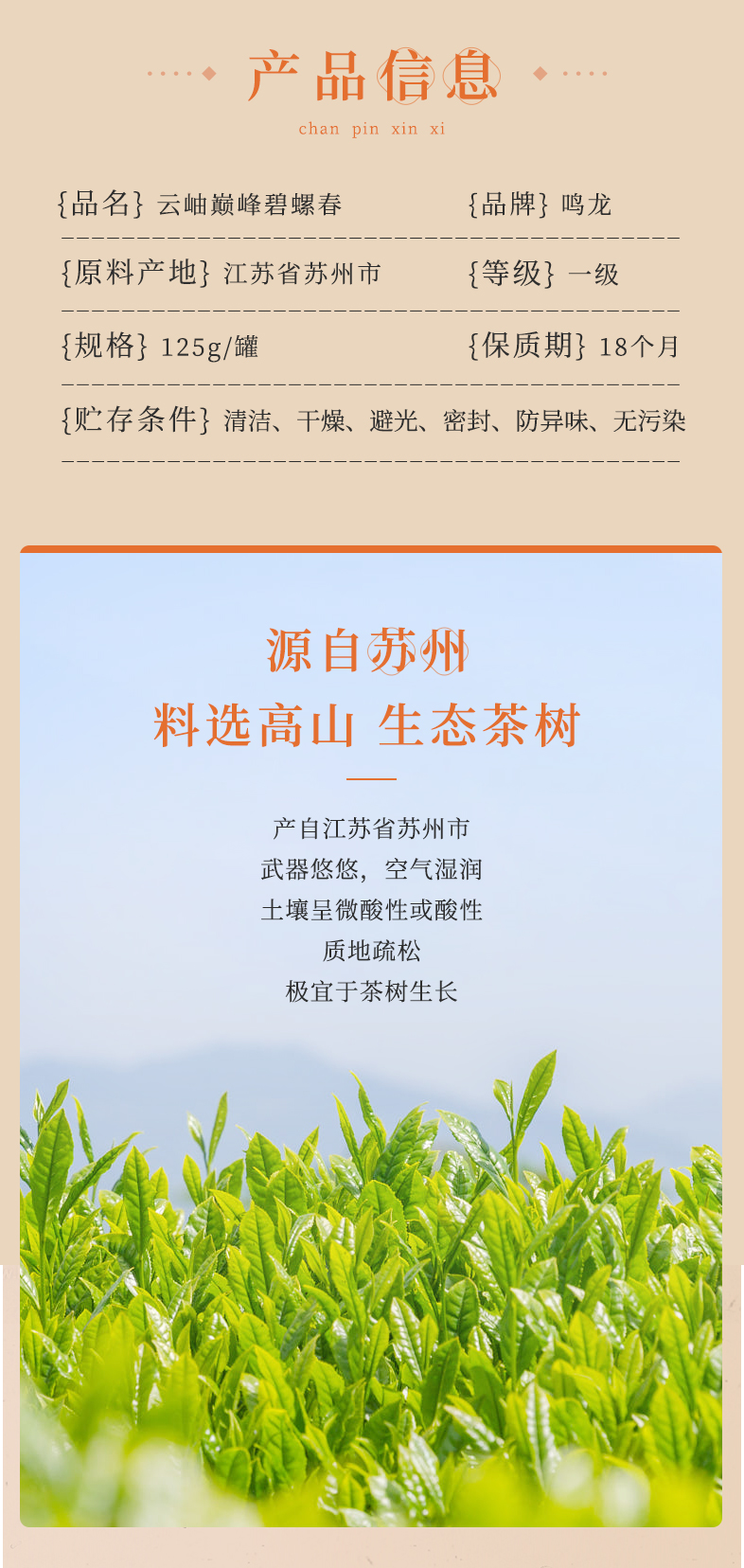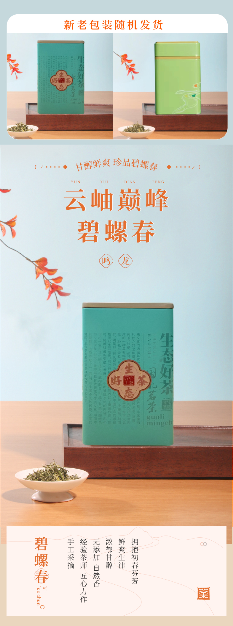 鸣龙云岫巅峰碧螺春一罐125g 新茶绿茶买两罐送礼盒