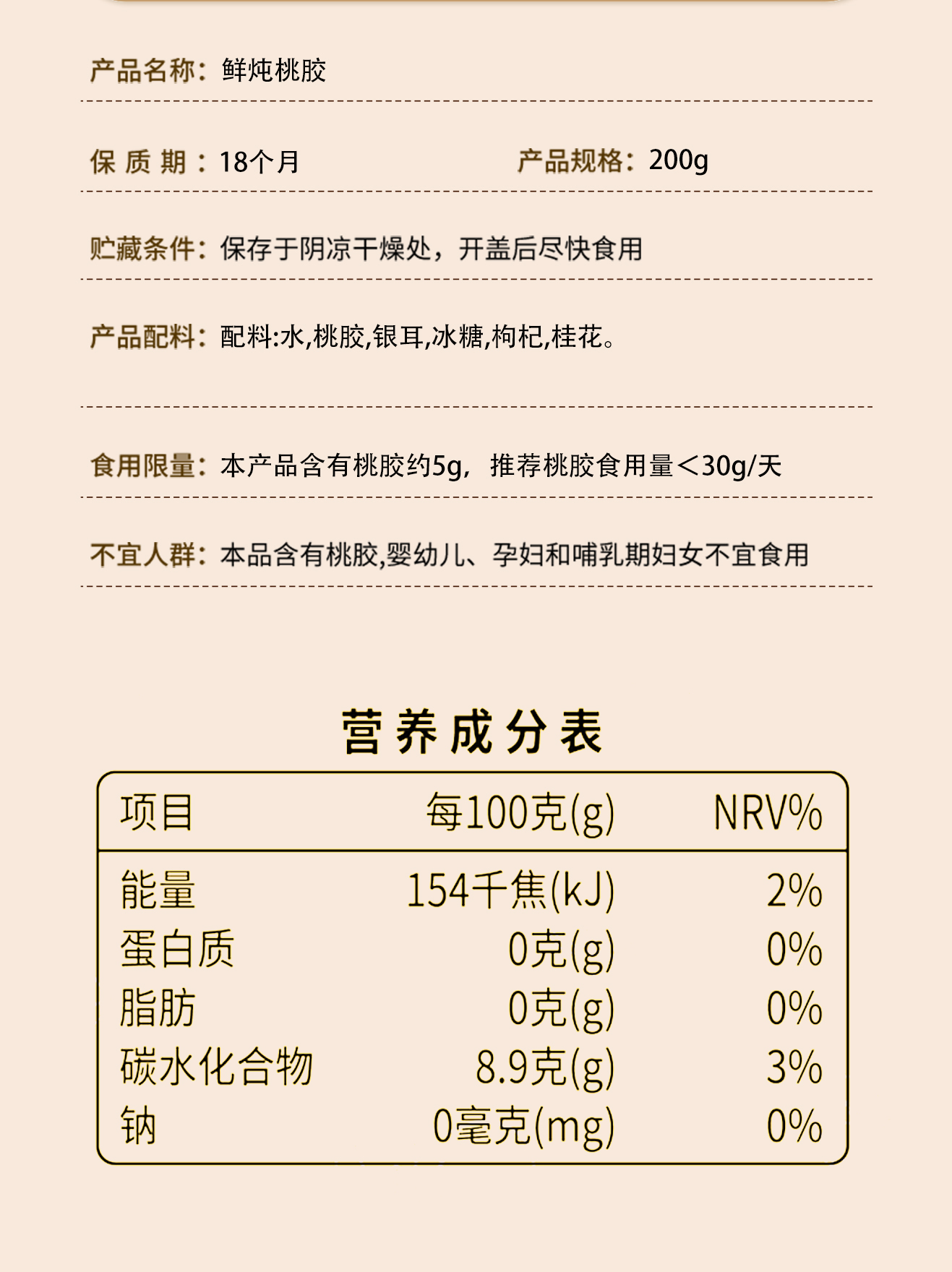 生龙宝贝 鲜炖桃胶200g/罐 孝感