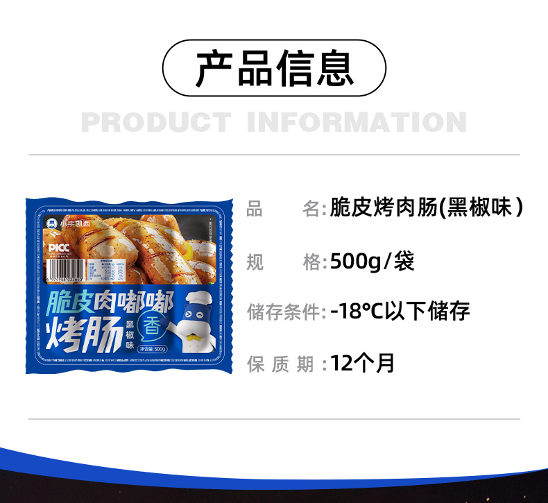 【积分兑换商品,勿拍】小牛凯西脆皮肉嘟嘟烤肠原味/黑椒味(500g/袋)*2