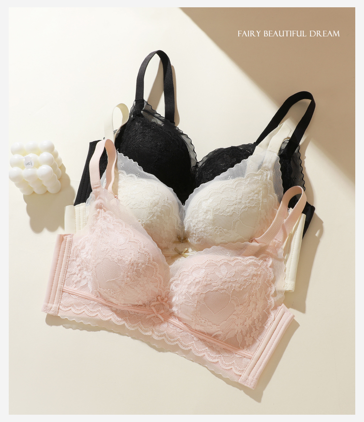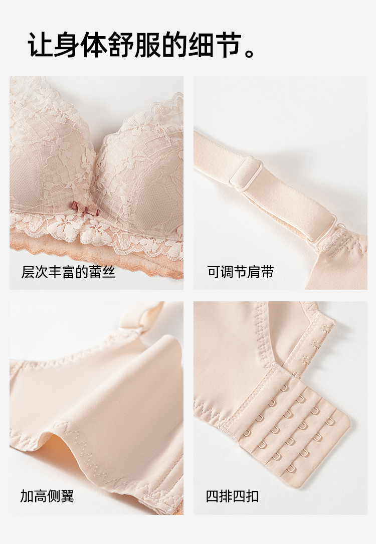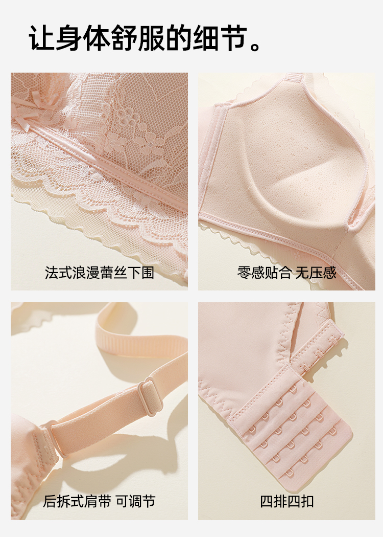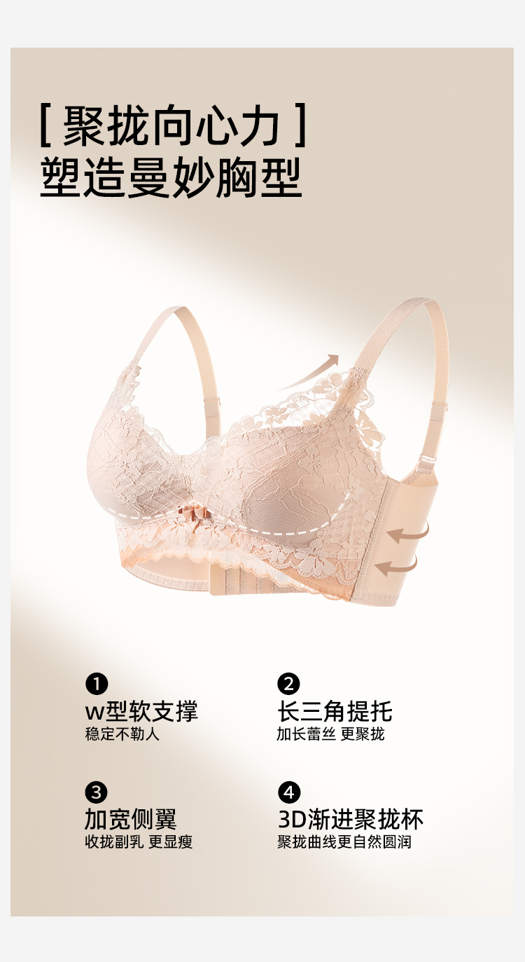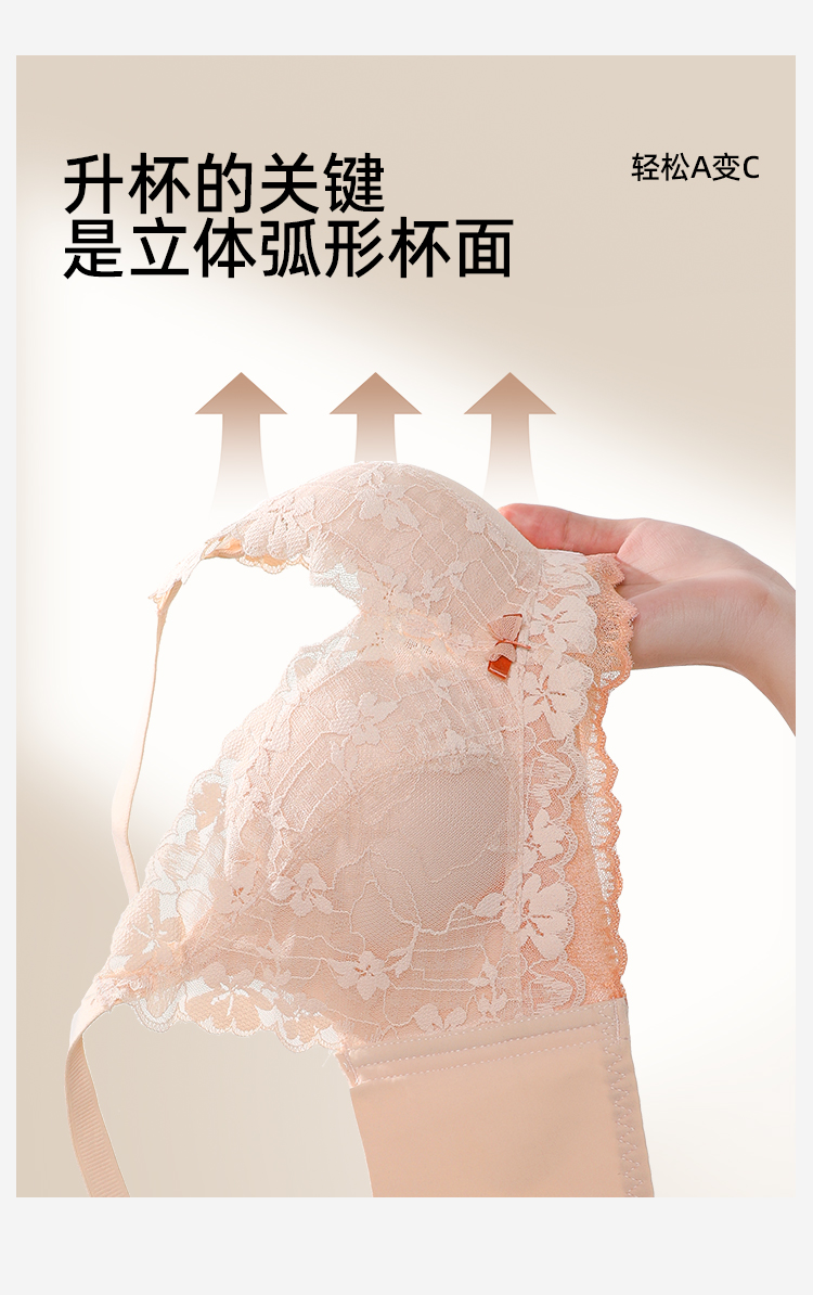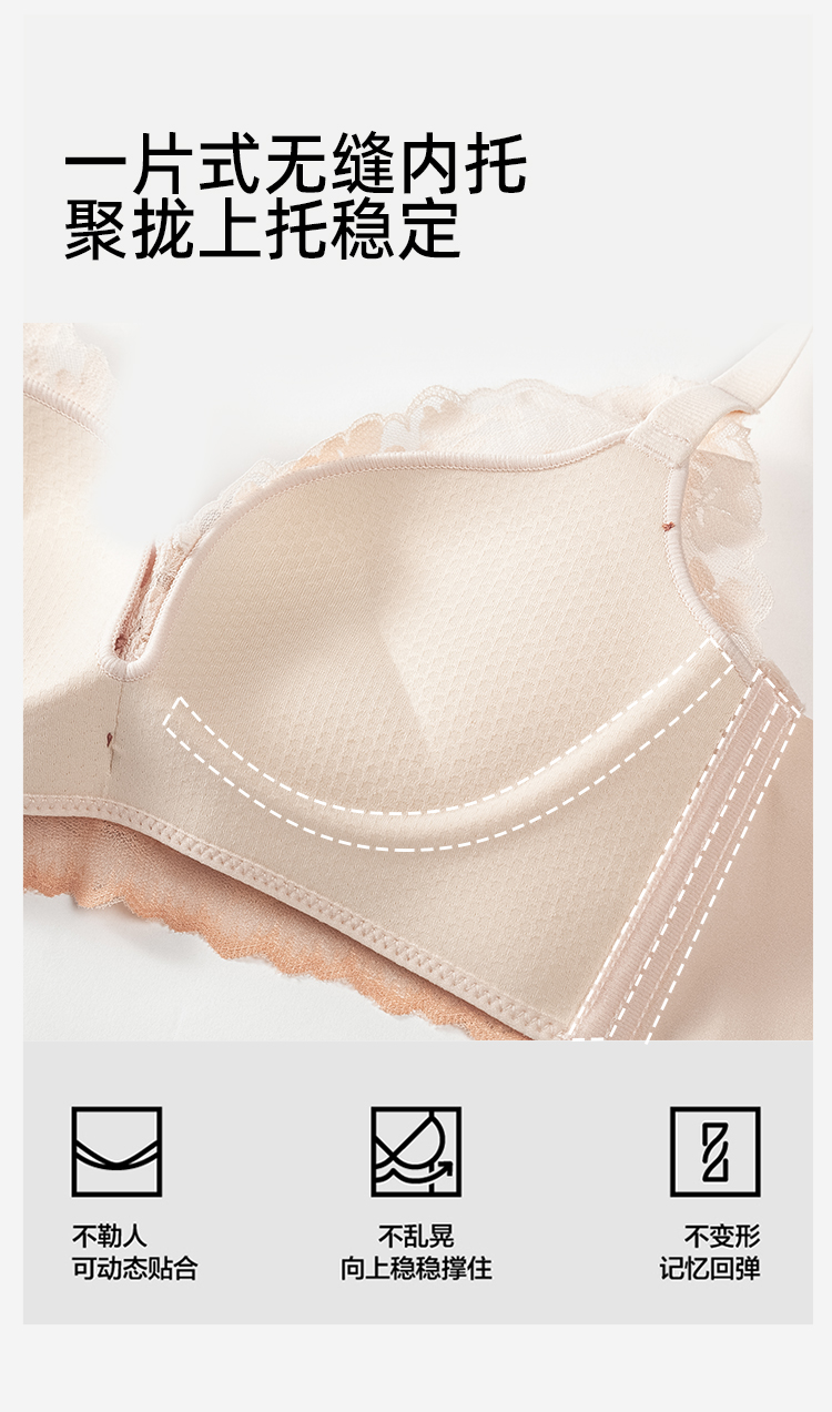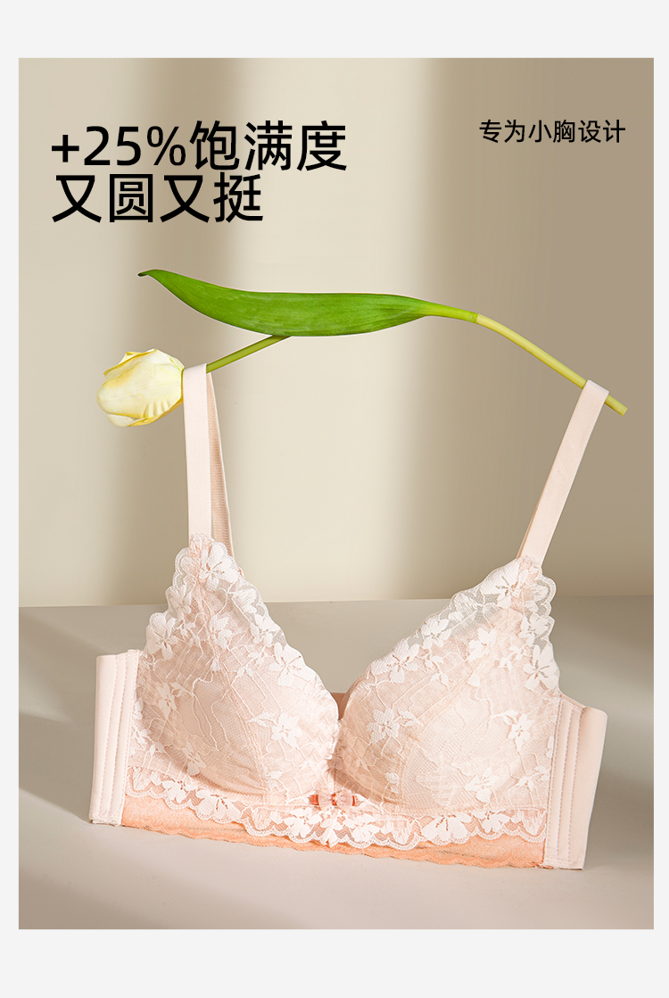 熳洁儿 小胸聚拢法式文胸花卉蕾丝一片式无缝内托内衣23261541/25261511