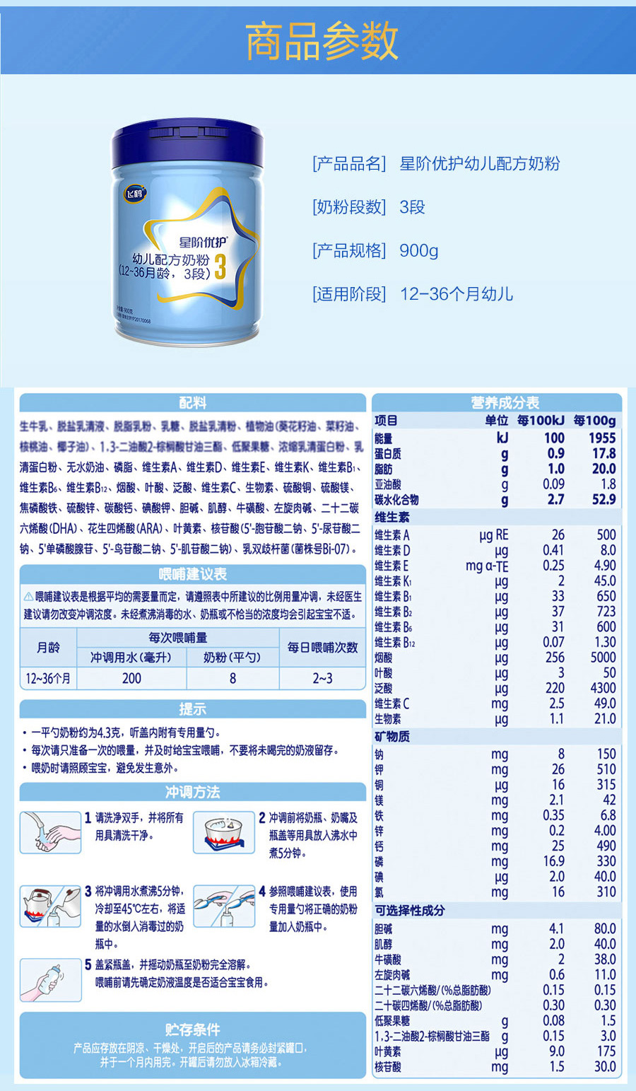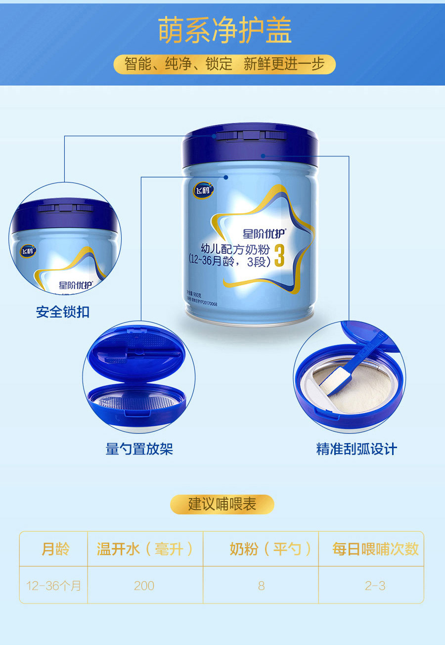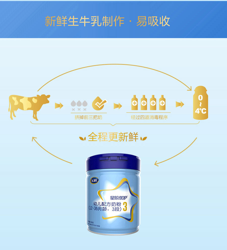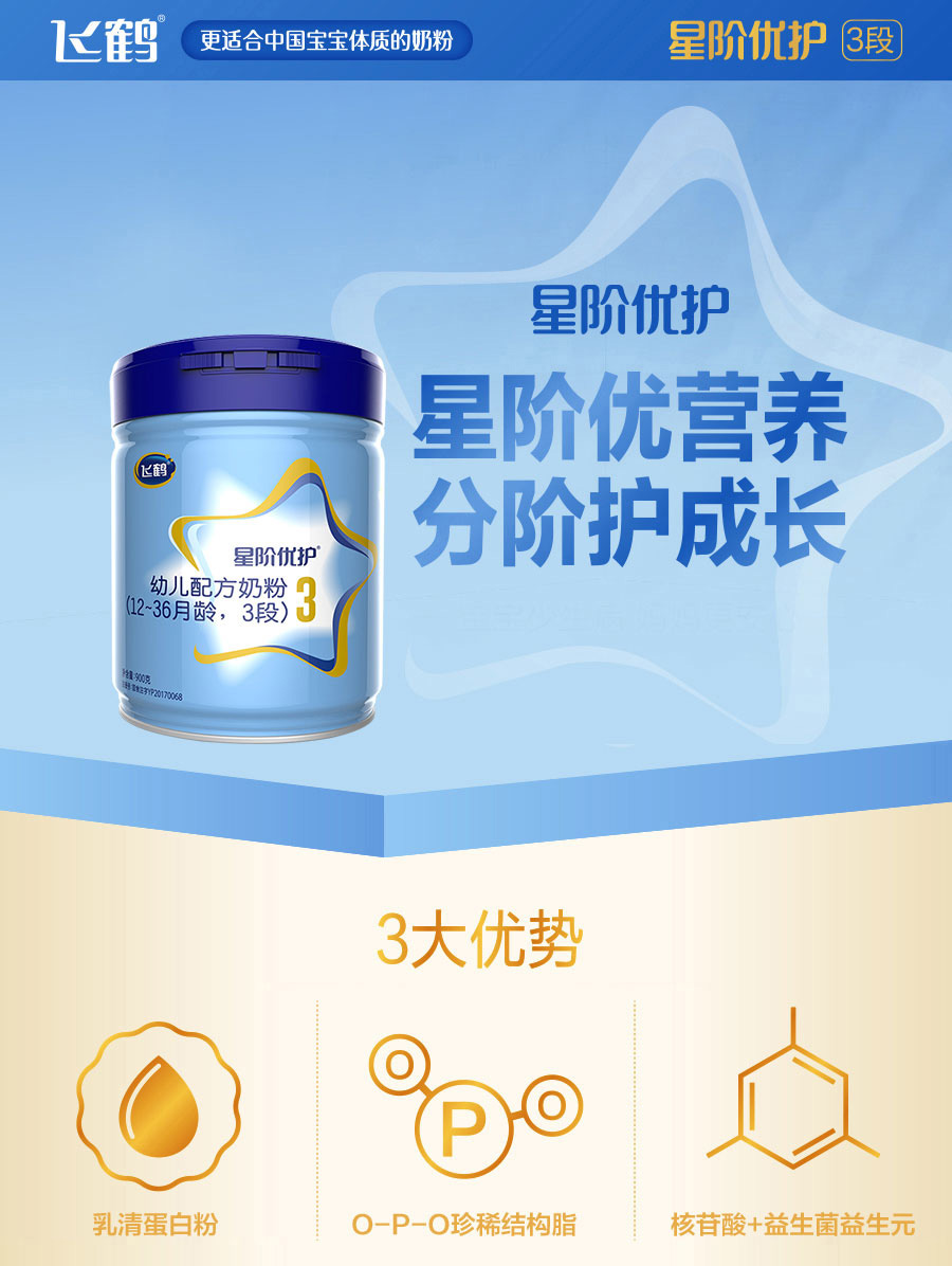 飞鹤星阶优护3段奶粉900g配方牛奶粉一箱6桶