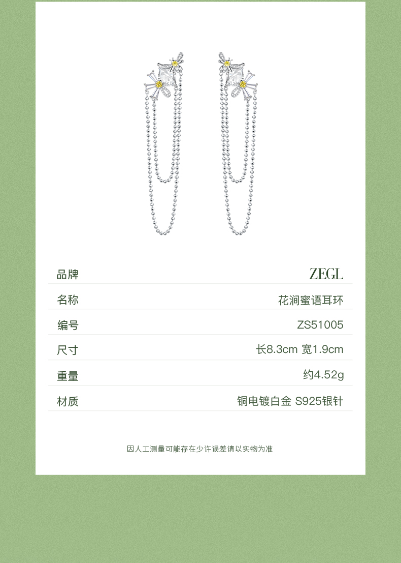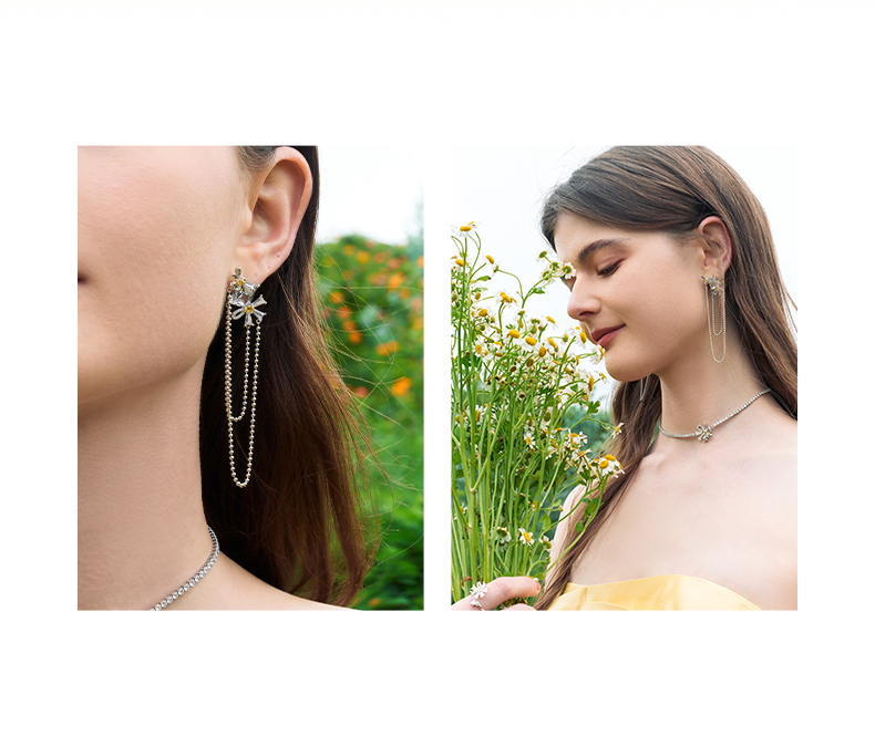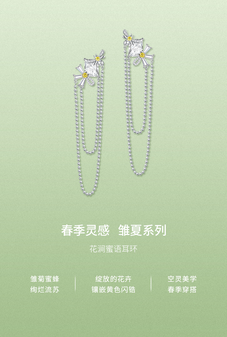 ZEGL设计师雏夏系列雏菊蜜蜂耳环女2024新款小众耳钉925银针耳饰