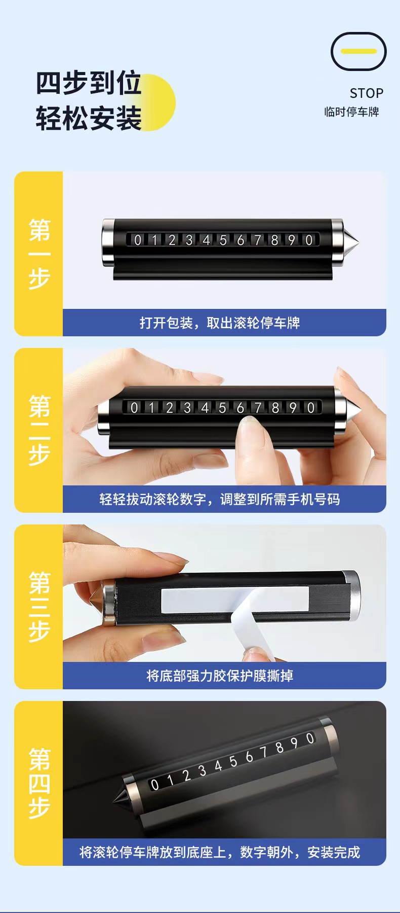 「二合一!安全锤号码牌」新款车载临时停车号码牌 移车牌摆件汽车装饰创意留号器挪车电话牌