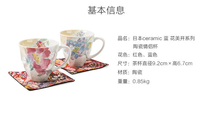 日本原产ceramic 蓝陶瓷情侣杯水杯茶杯2件套