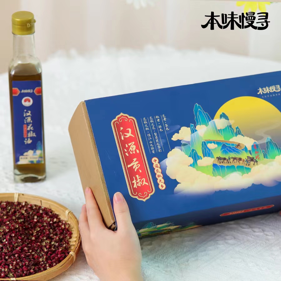 汉源花椒+汉源花椒油产品展示!礼盒中包含:①汉源花椒②汉源花椒油