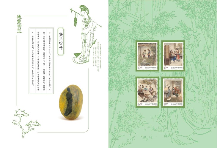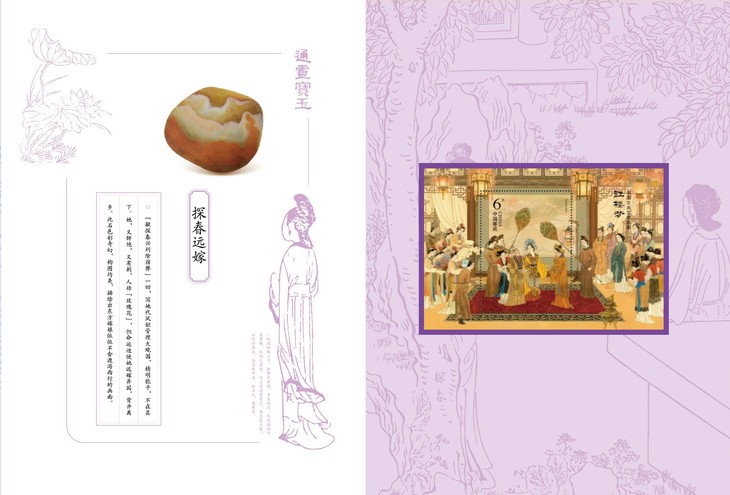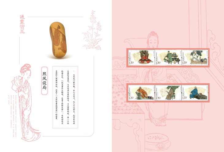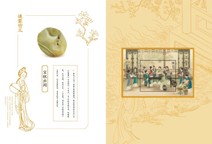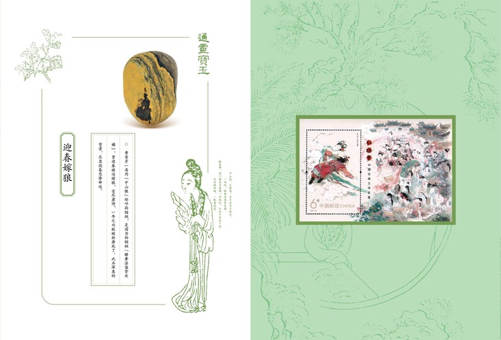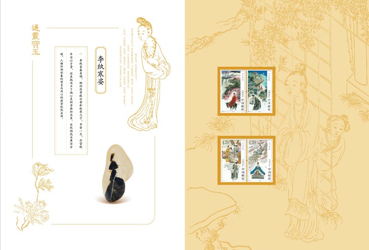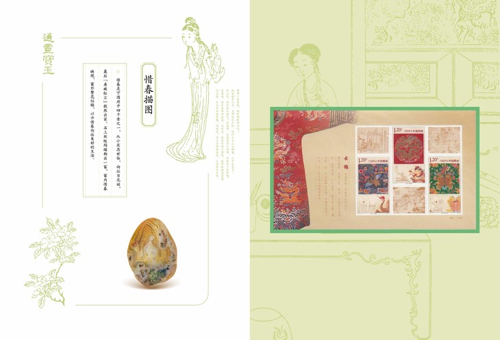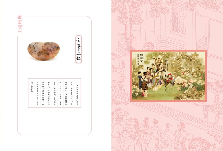 内容介绍:邮册采用仿古风琴折的装帧设计,设计主体元素为南京雨花石之——金陵十二钗,封面插套述说了《红楼梦》第一回中上古神话传说中,创世女神女娲熔石补天,而雨花石便是此石的遗石,也是后世红楼梦中的“通灵宝玉”,故事使南京雨花石的灵动与《通灵宝玉》邮册名称的由来完美契合。