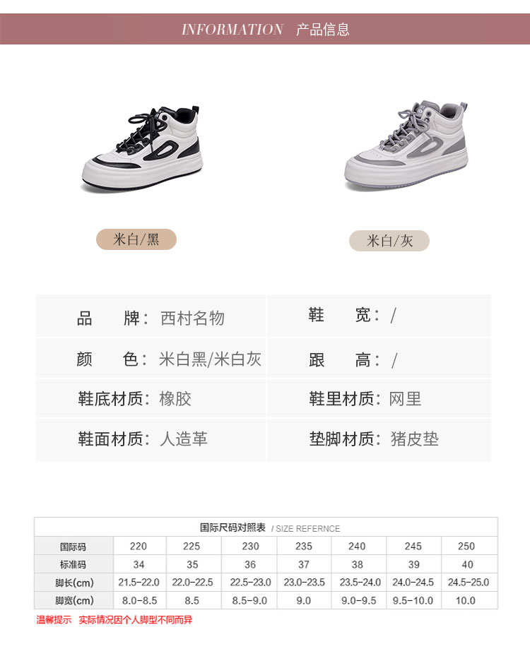 西村名物22年新款潮流复古板鞋厚底运动女休闲鞋44941