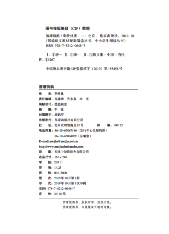 (仓发) 清塘荷韵(精选季羡林代表性散文,部编语文教材配套阅读丛书,内含精美插图)/作家出版社/季羡林/9787521206487