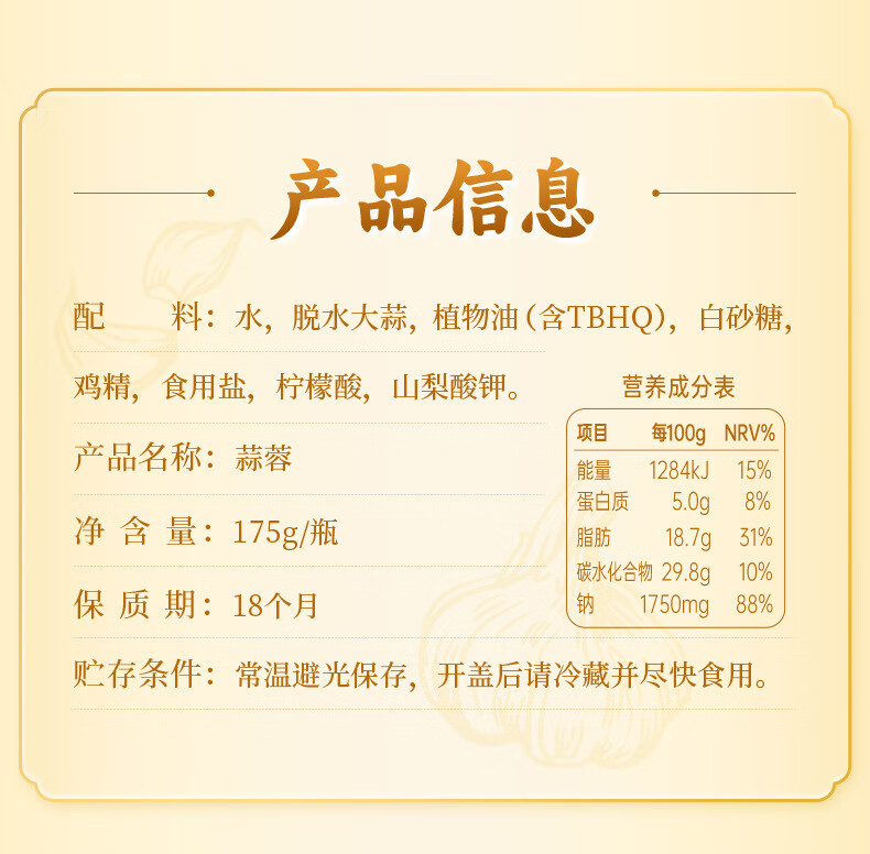 【分仓直发包邮】仲景蒜蓉酱175g*2瓶