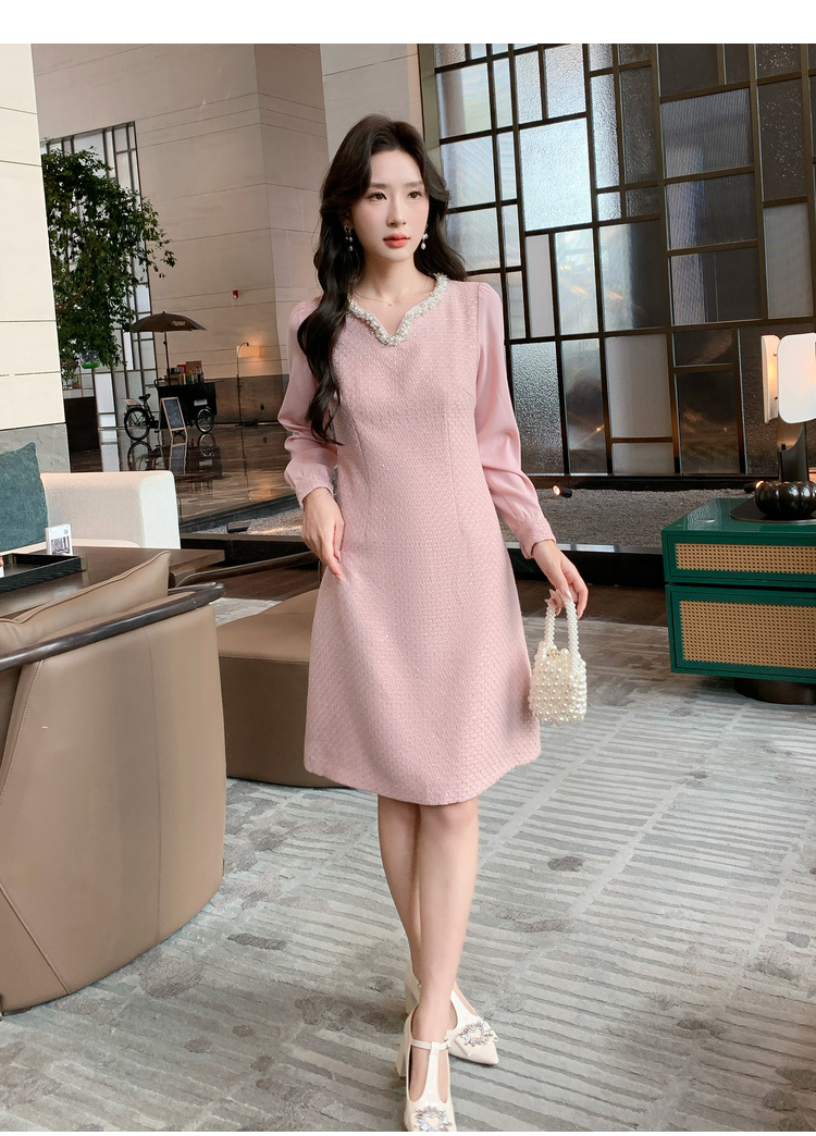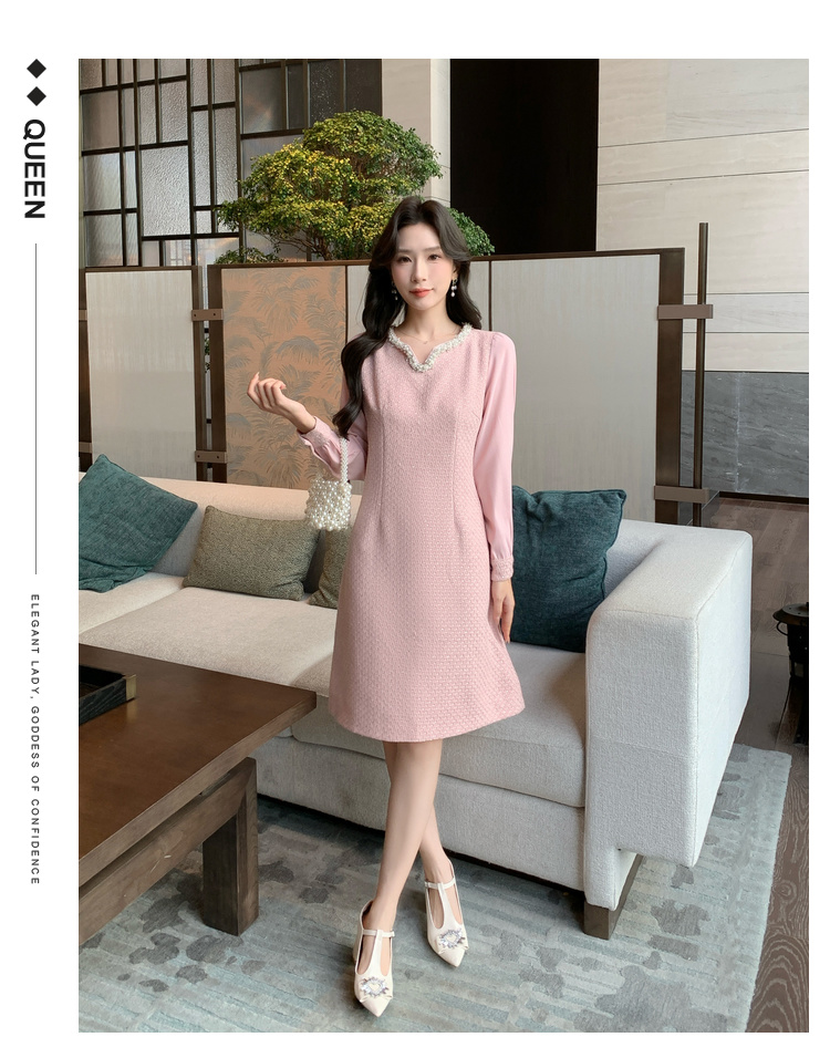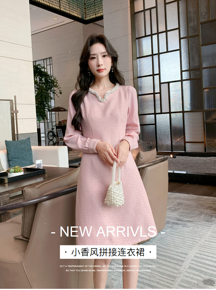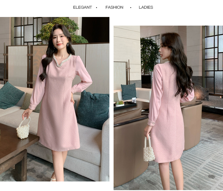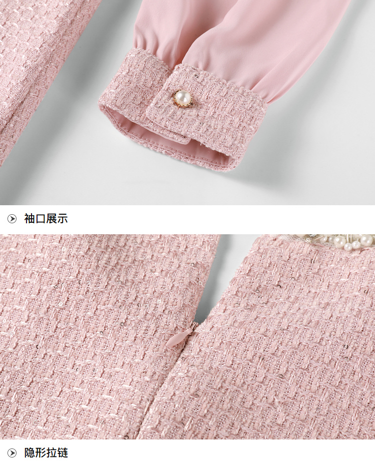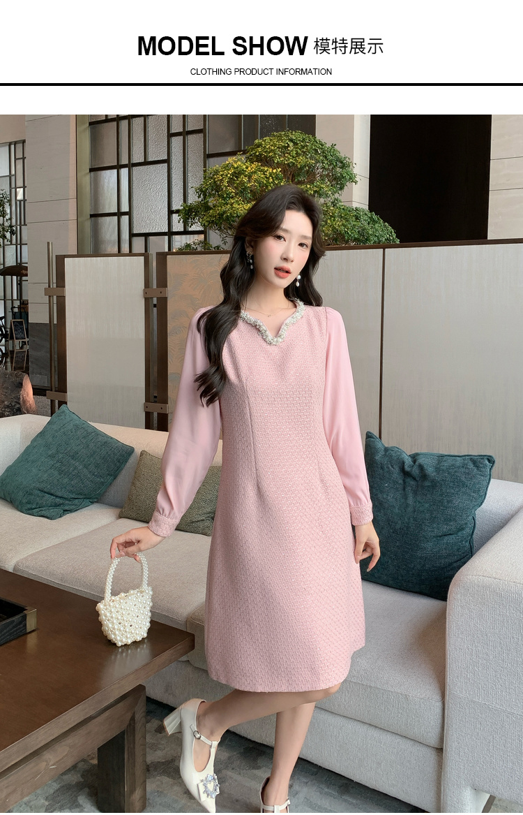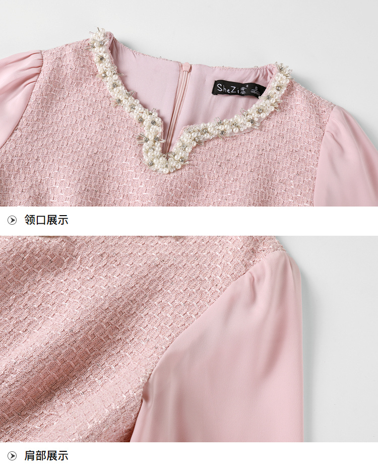 奢姿大码女装2025秋季气质半开领裙子胖妹妹时尚小香风拼接连衣裙9943863229