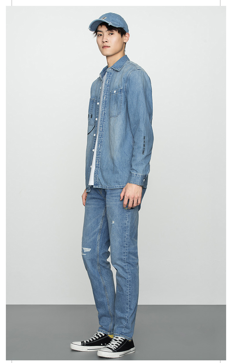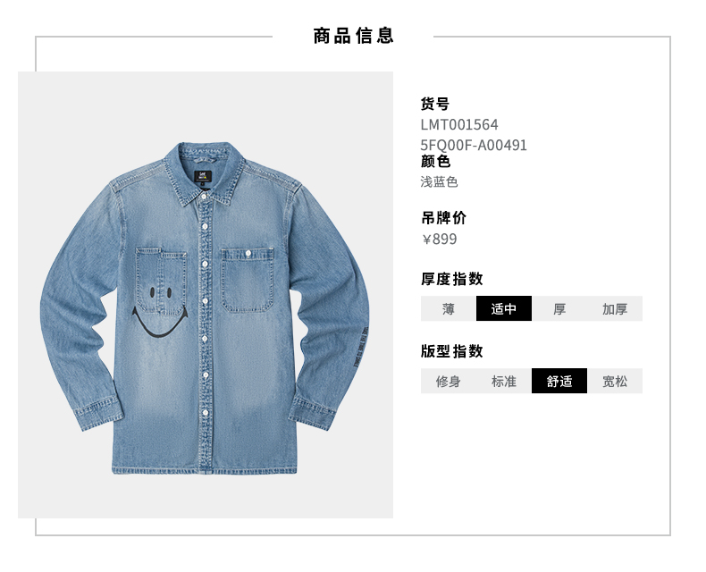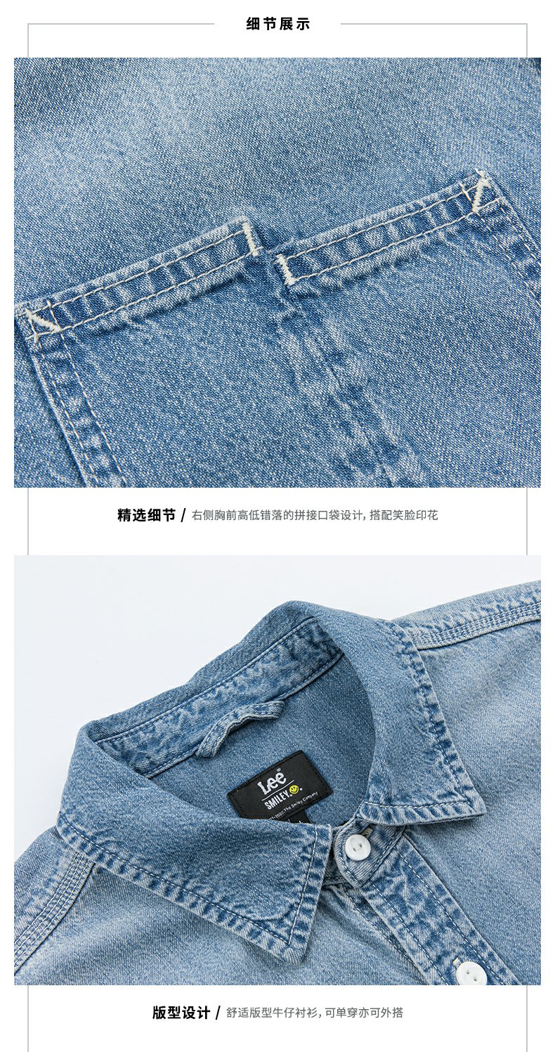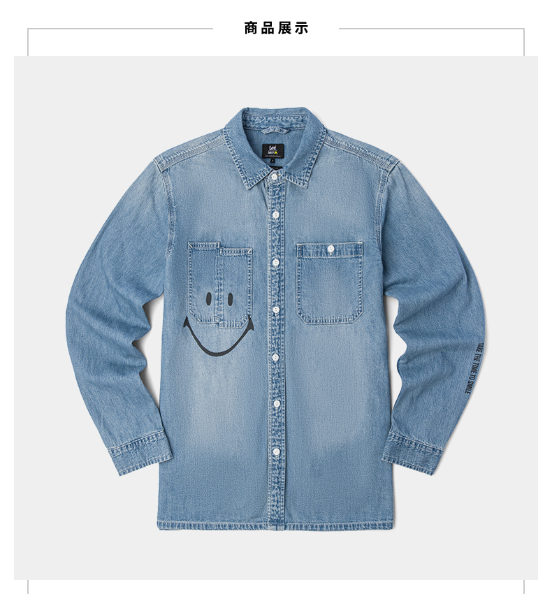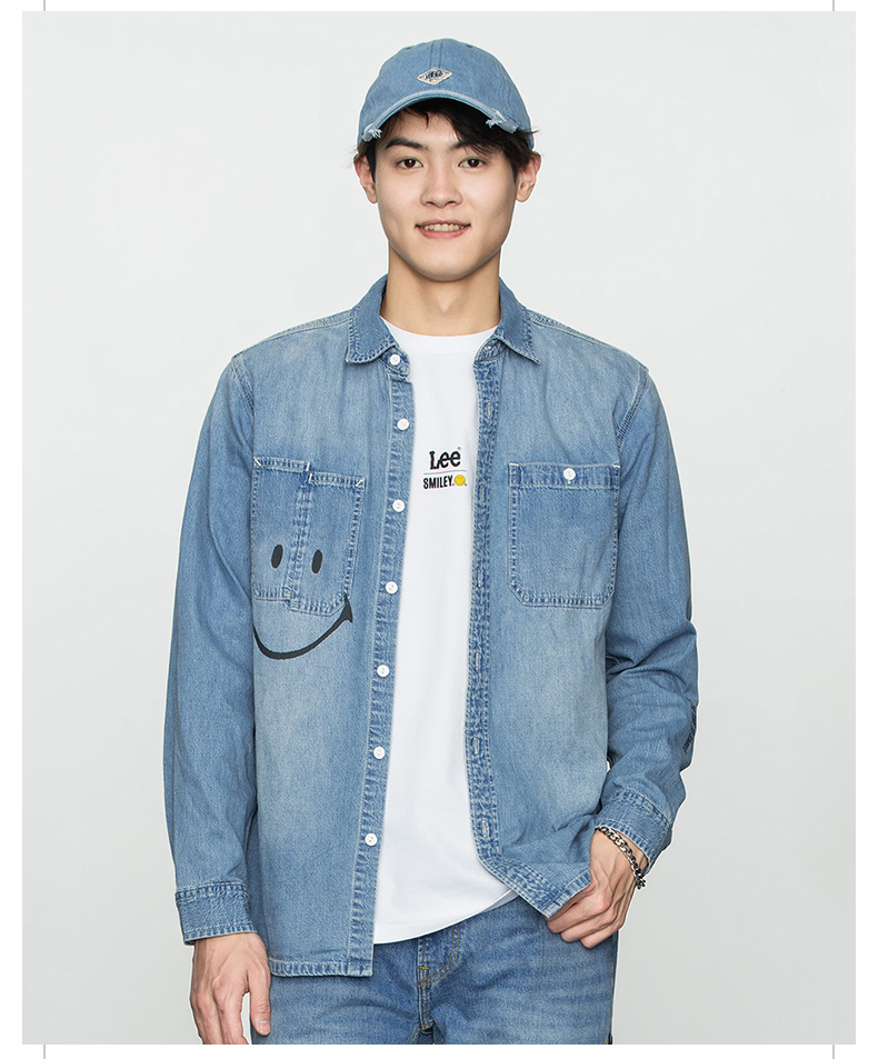 【Smiley®联名】Lee22春夏新品舒适浅蓝男长袖牛仔衬衫LMT001564