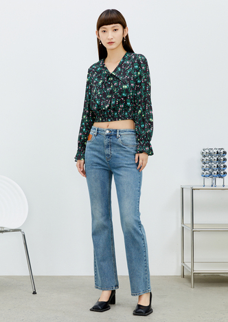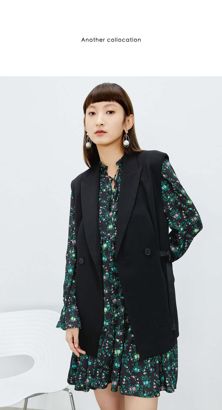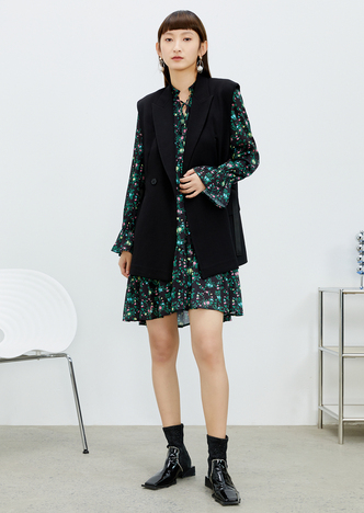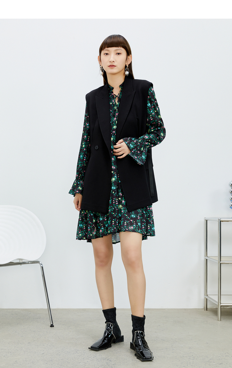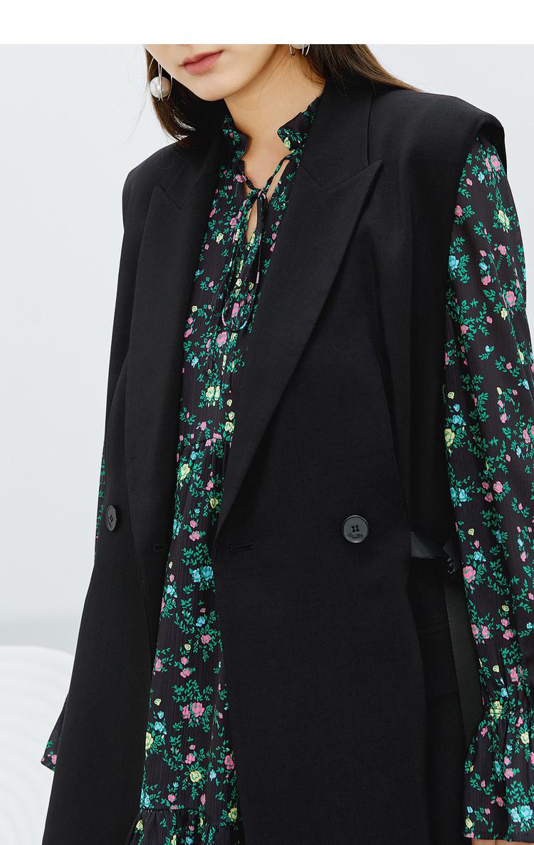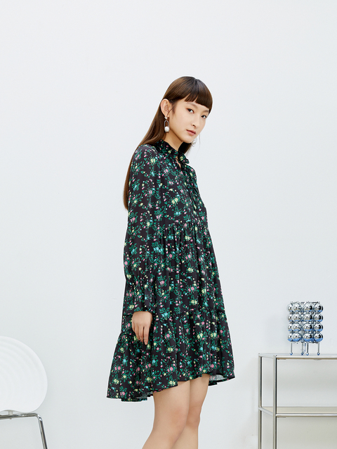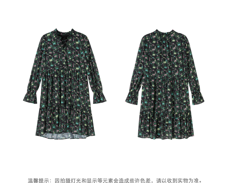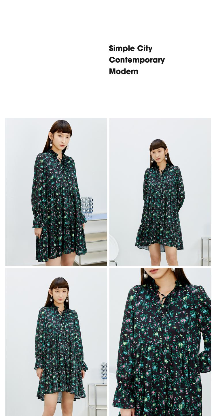 NEELLY纳俪气质立领系带碎花连衣裙2022新款春夏泡泡袖中长裙韩版N22031Y01136