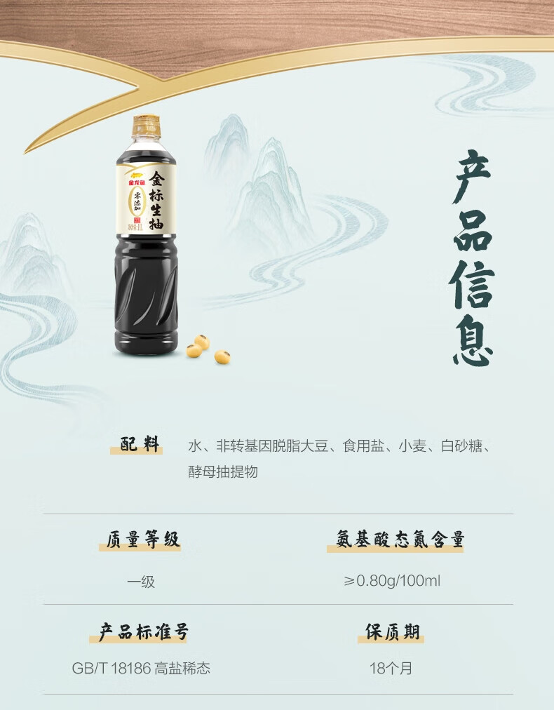 【金龙鱼】零添加金标生抽1L(PET)-FN