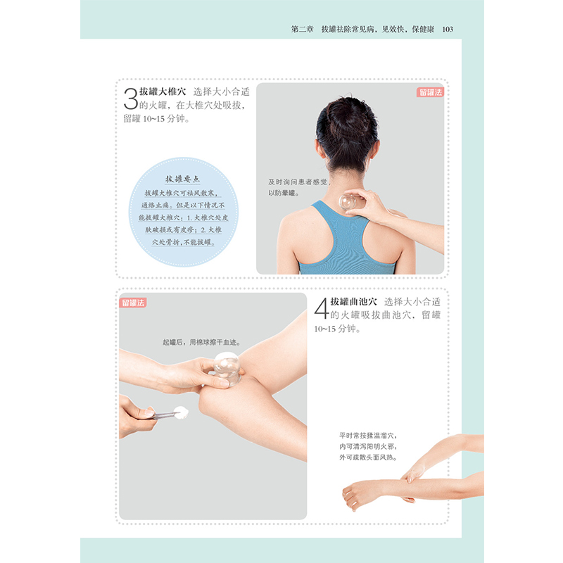 4.同时本书还有日常保健养生的拔罐疗法,疏通经络,恢复正气,提高身体抗病能力。