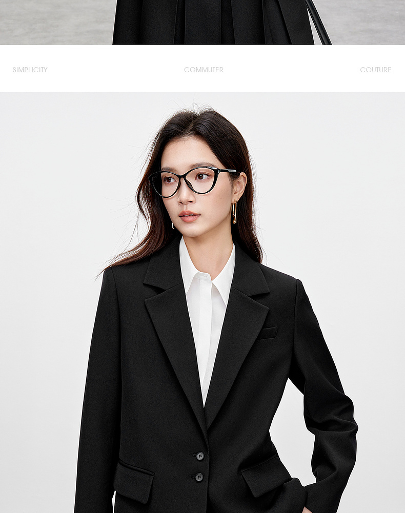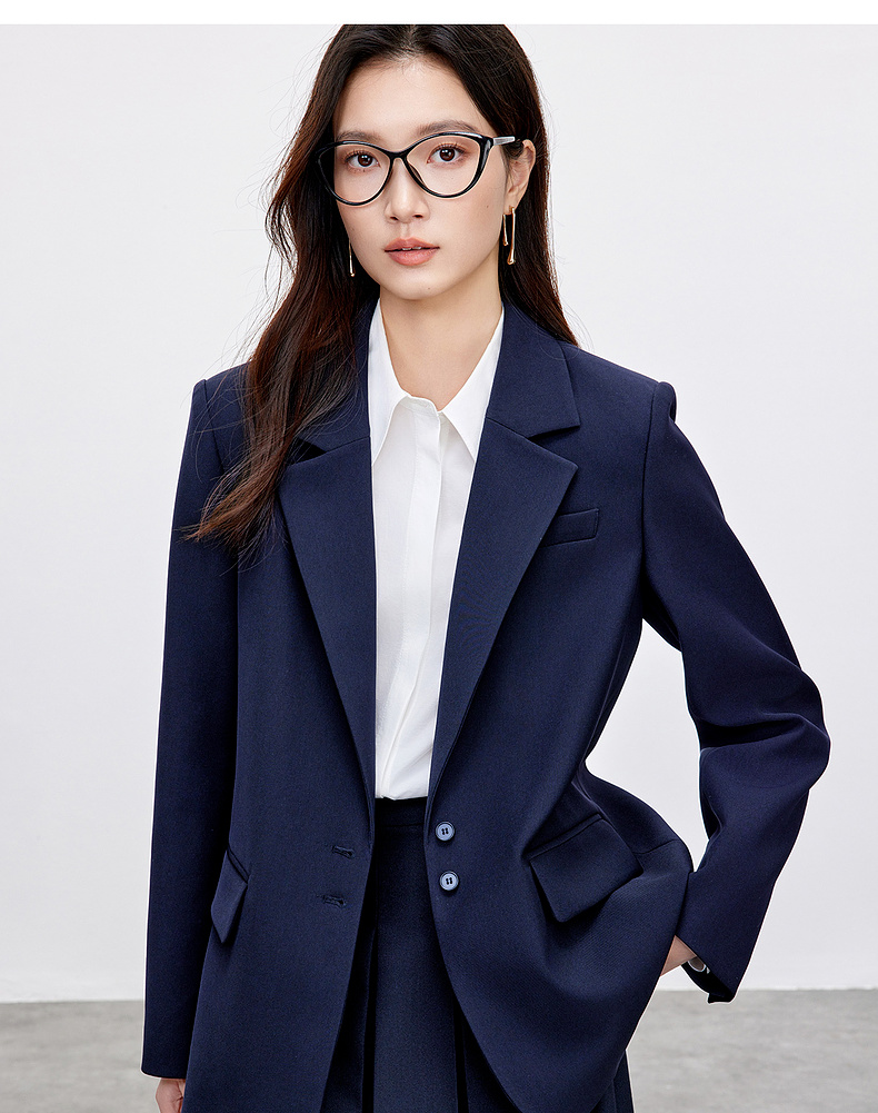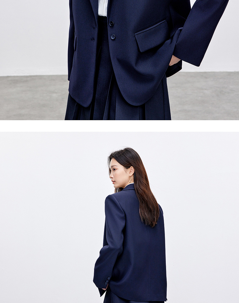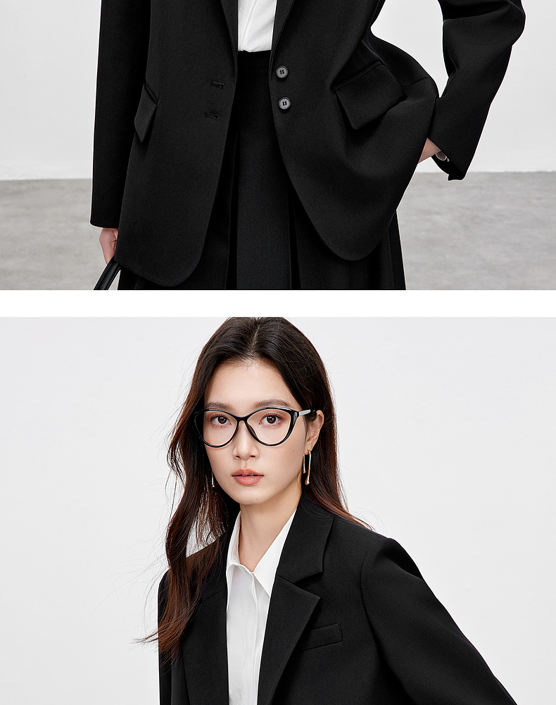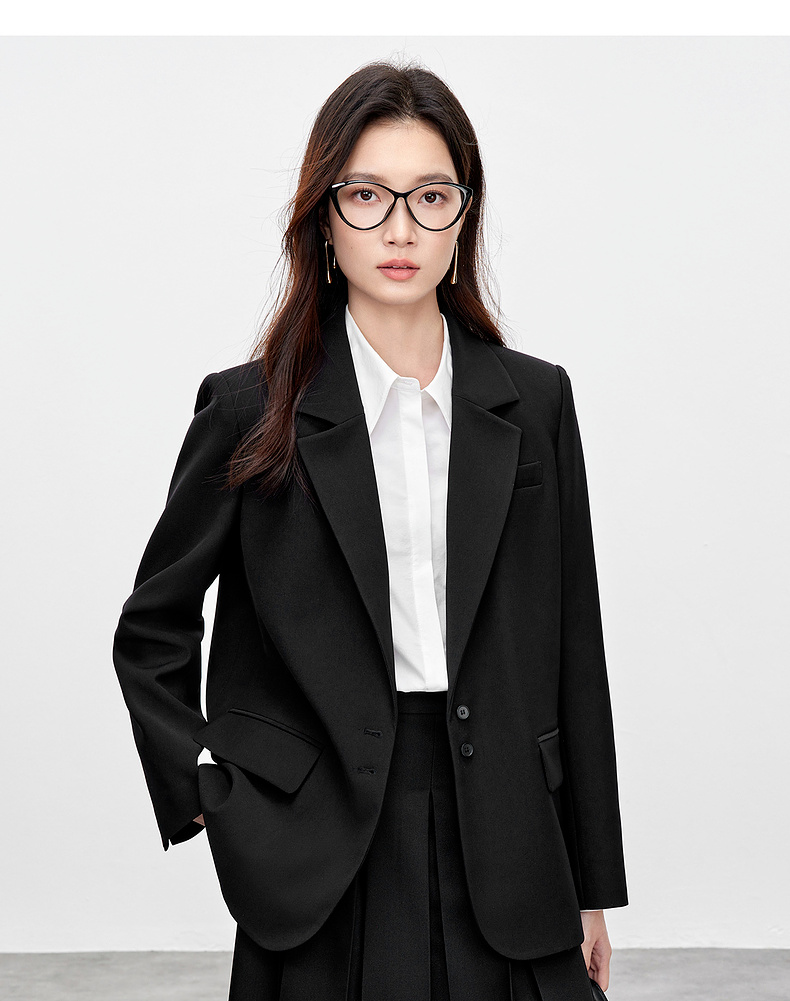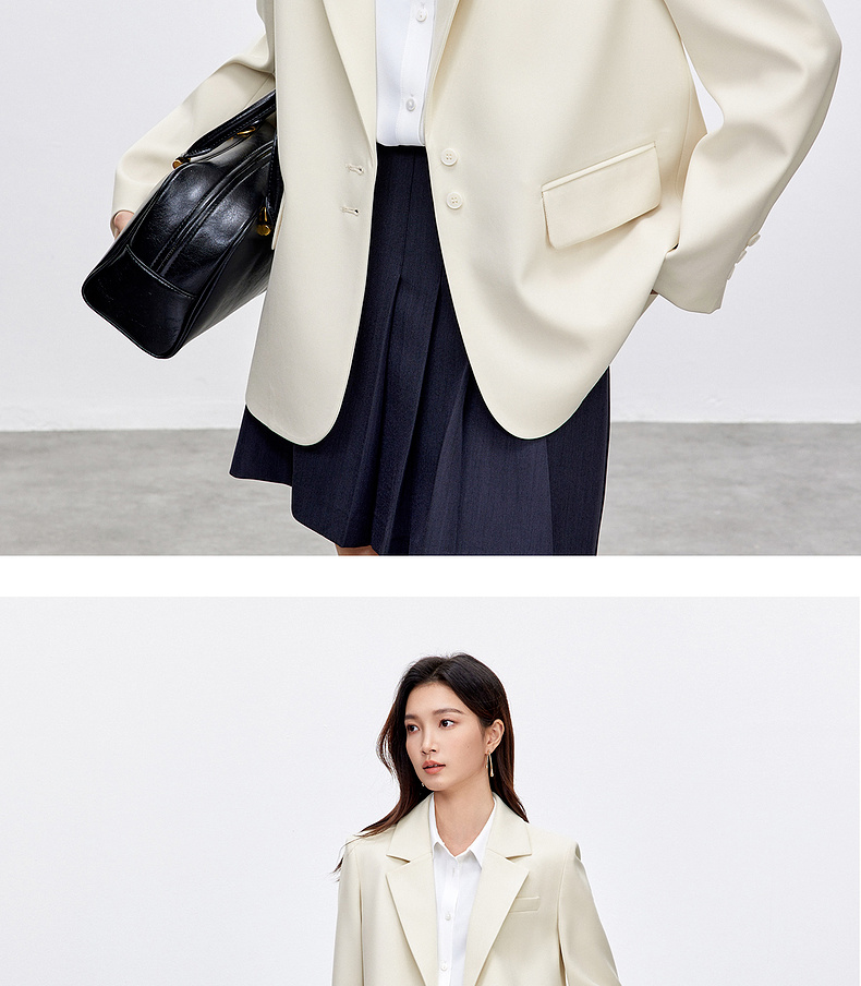 【内购】气质通勤平驳领带肩垫单排扣装饰盖袋宽松西装外套-143X56552