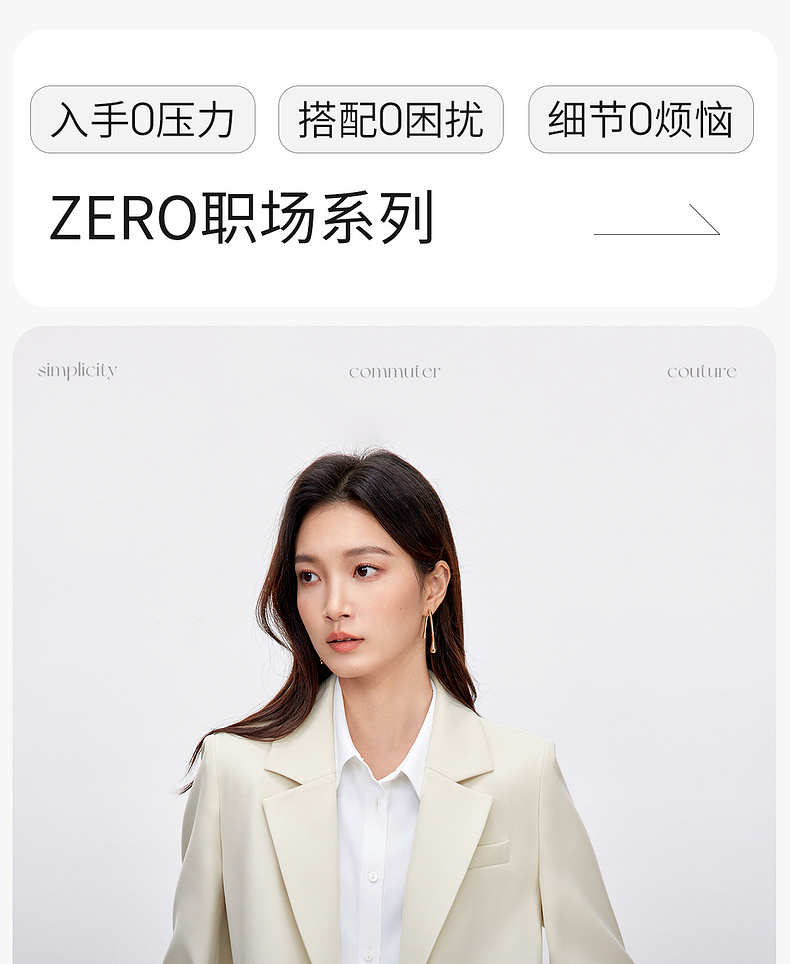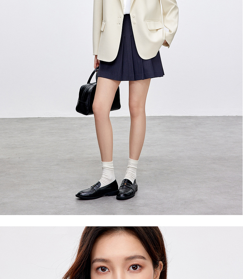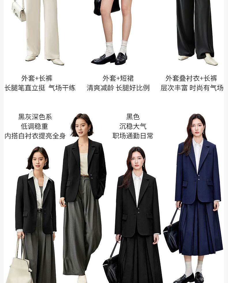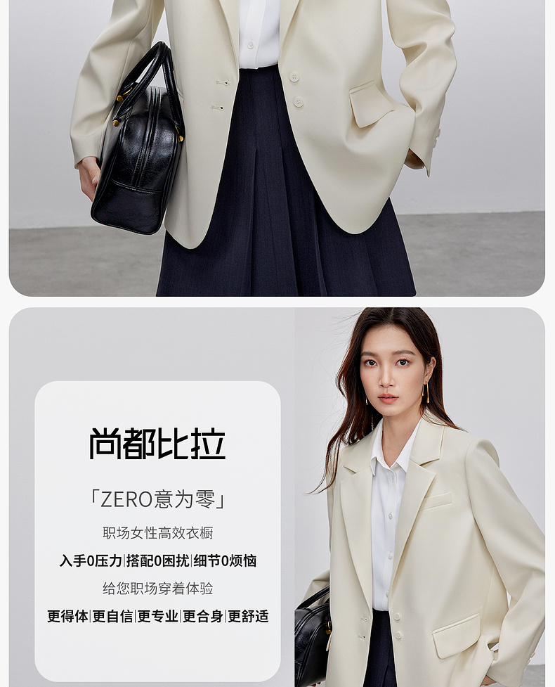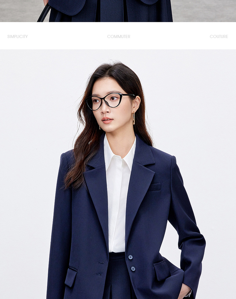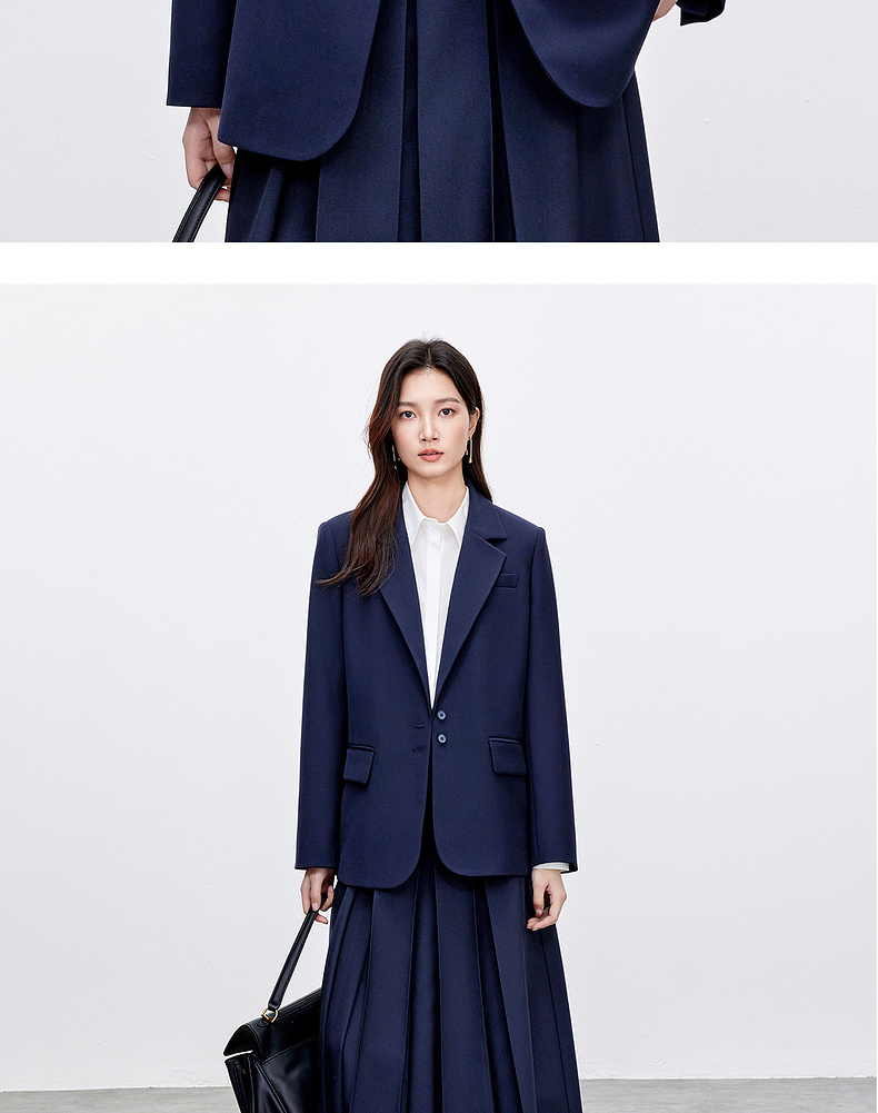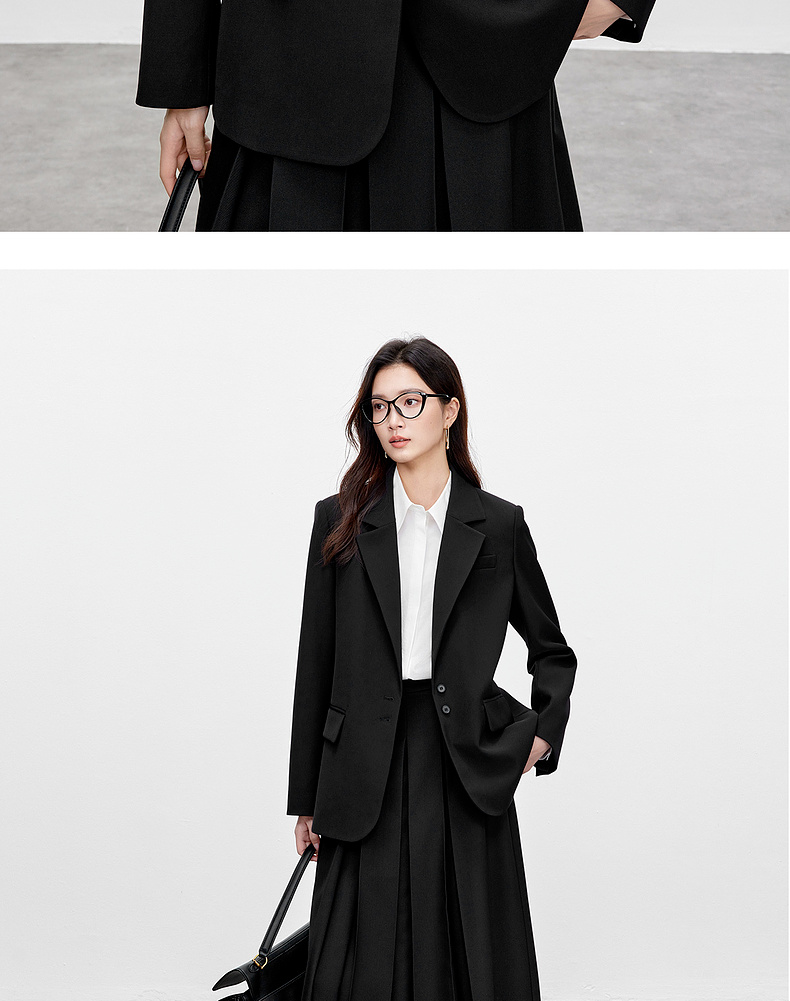 【内购】气质通勤平驳领带肩垫单排扣装饰盖袋宽松西装外套-143X56552