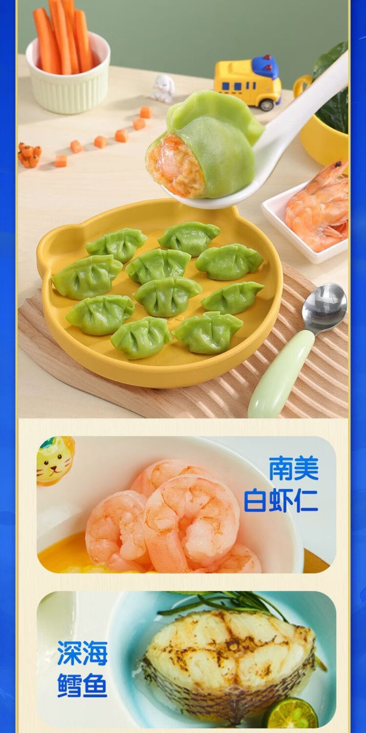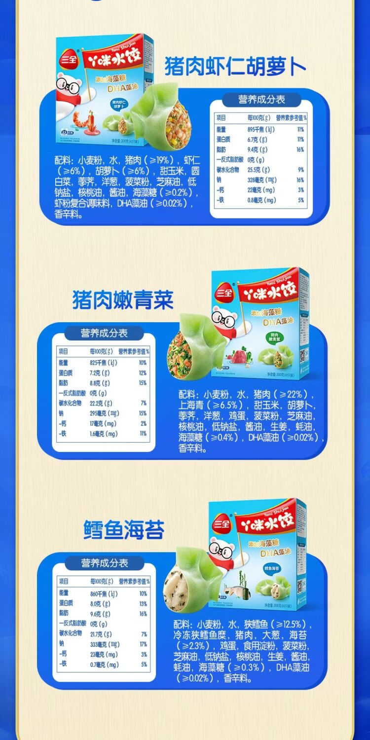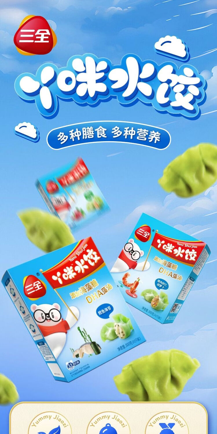 【百】三全丫咪水饺 鳕鱼海苔儿童水饺300g/盒42只装