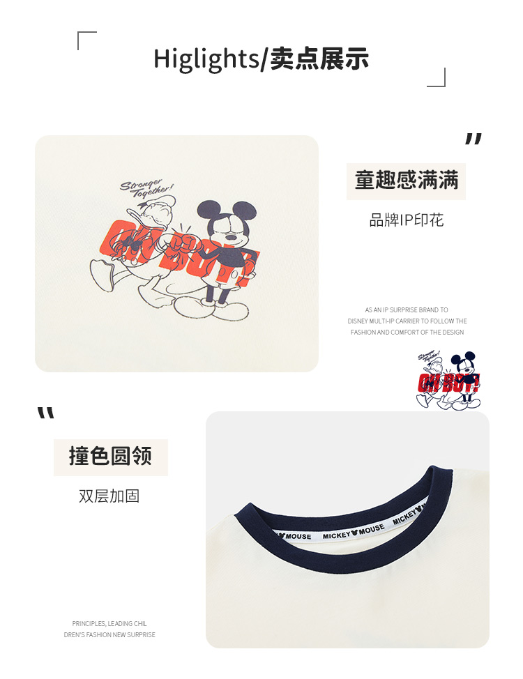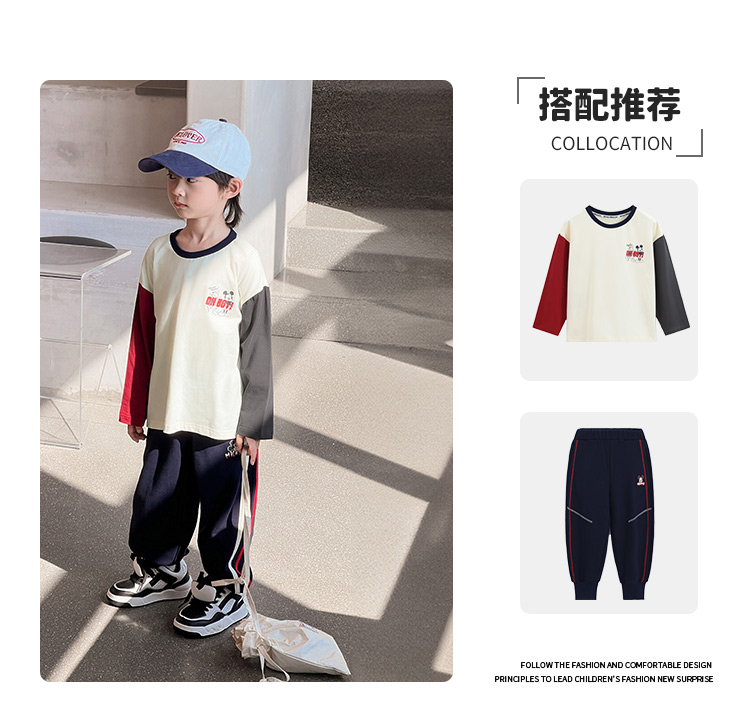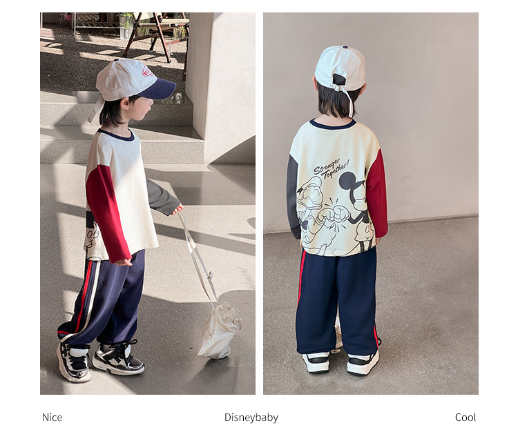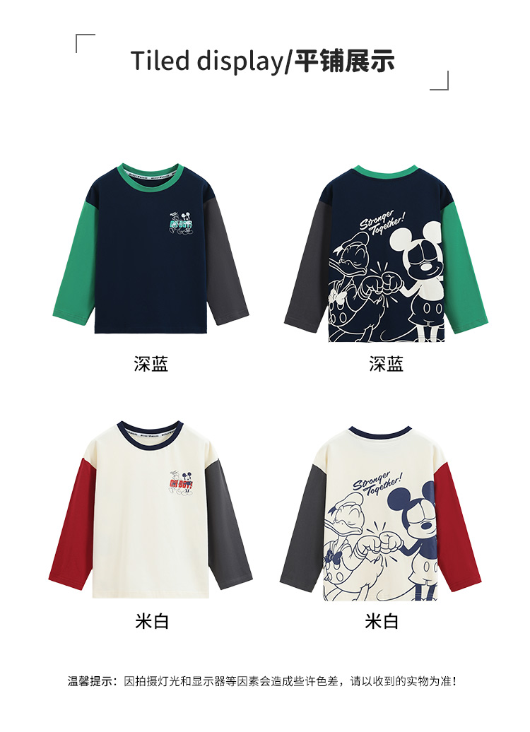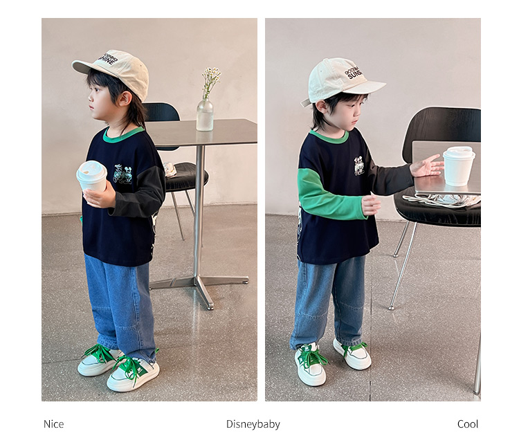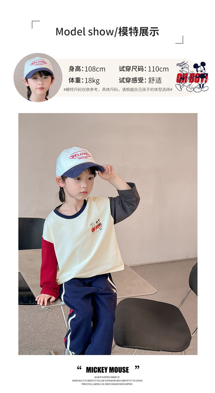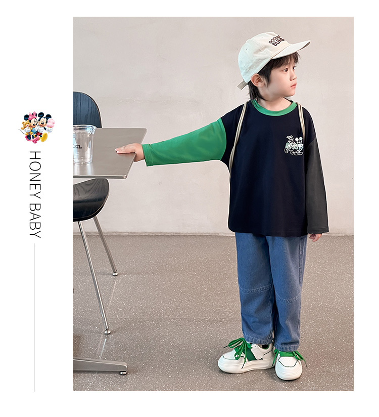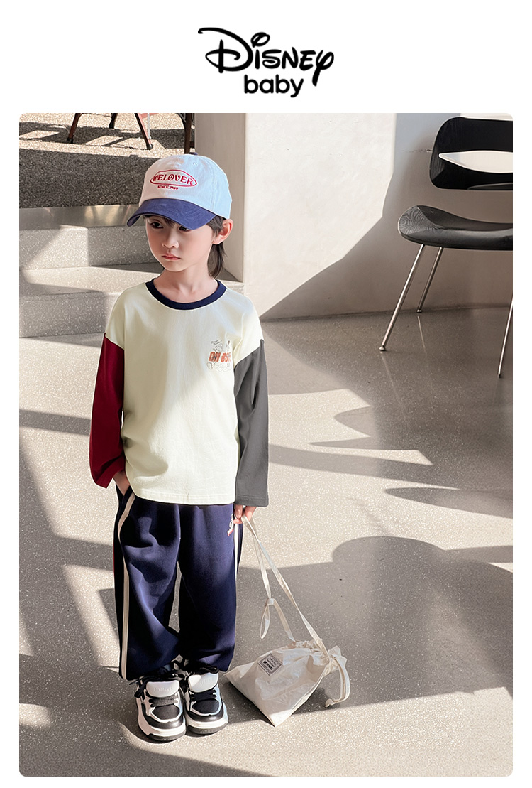 【90-140】【迪士尼】男童春秋款插肩AB袖撞色长袖T恤
