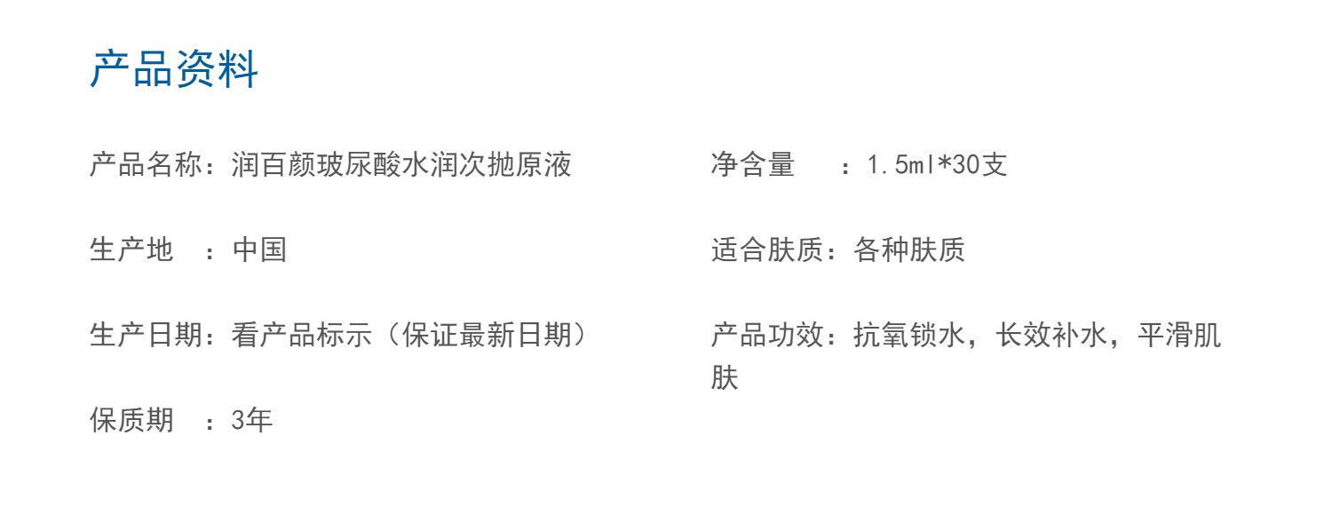 润百颜玻尿酸水润次抛精华液1.5ml*30支/盒