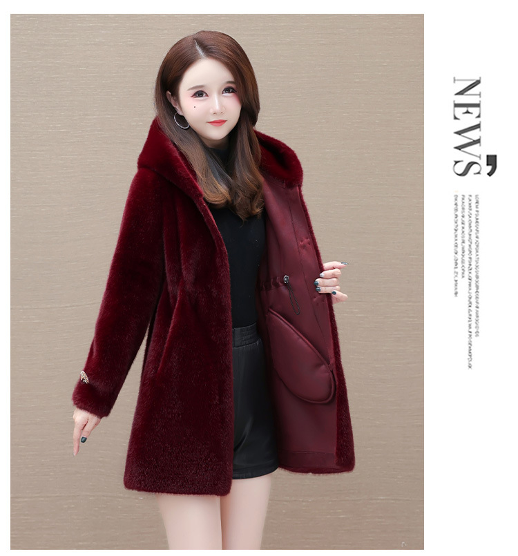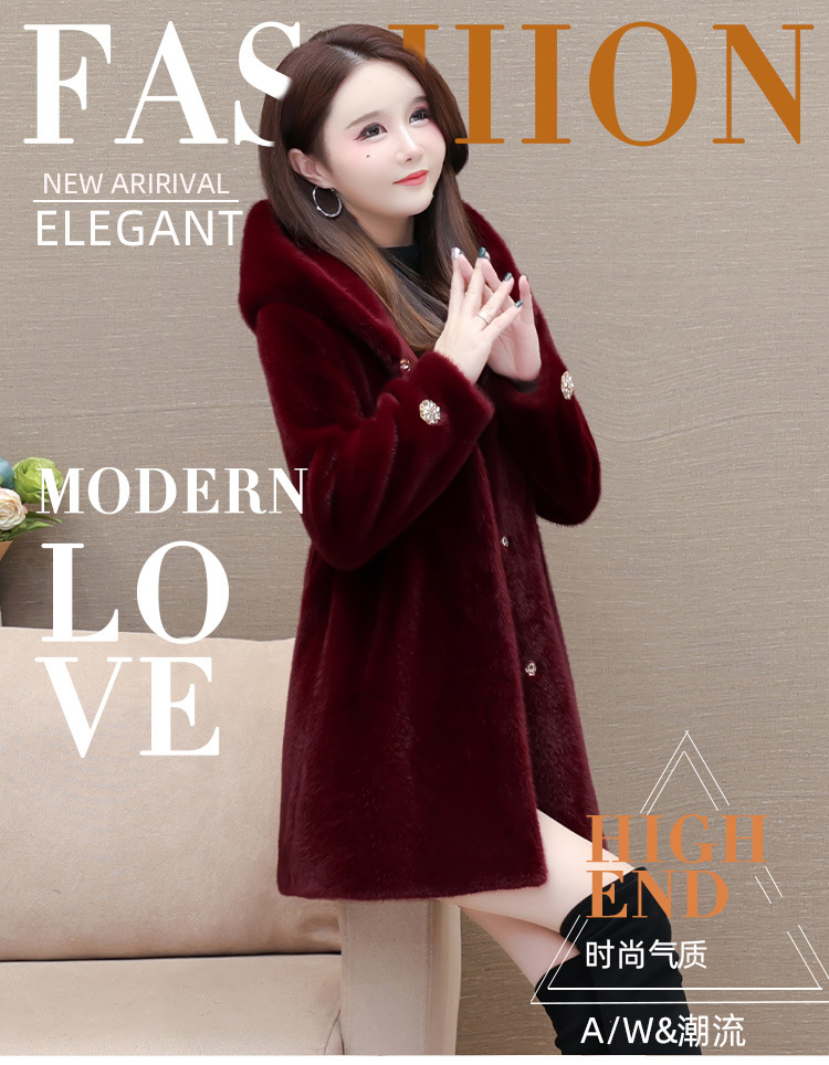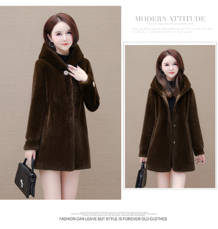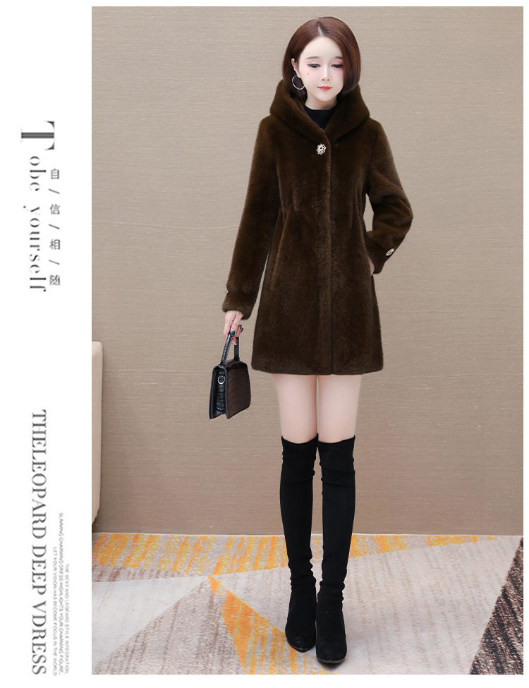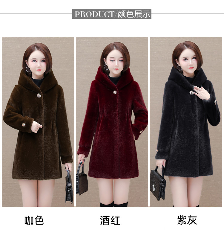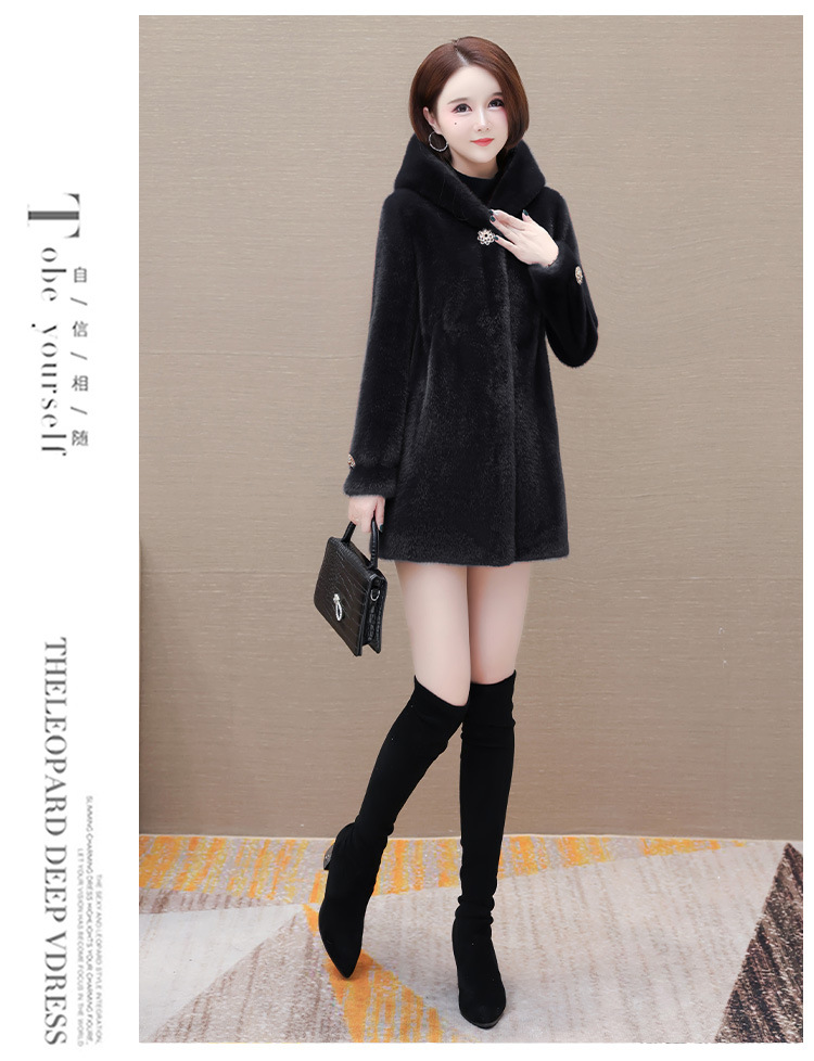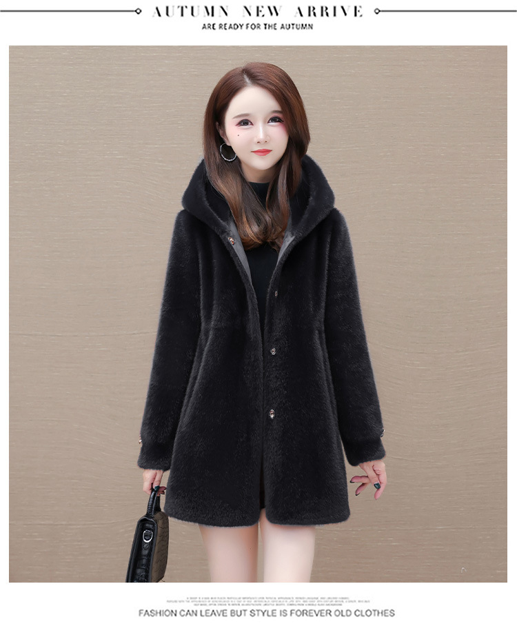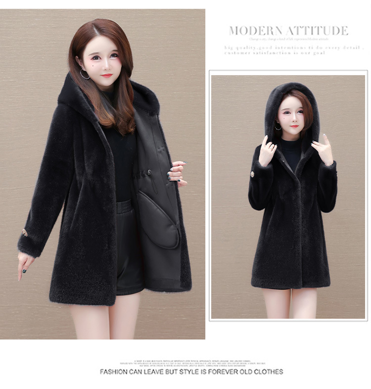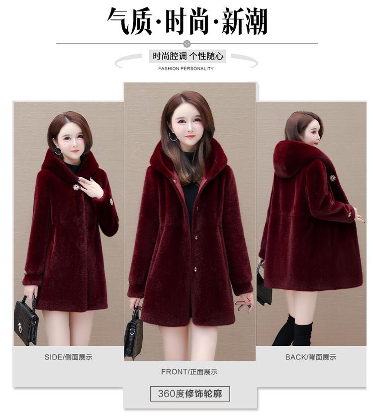 连帽厚款外套,冬季时尚气质女装仿貂绒保暖大衣QYM-LRX-JDR3D21-Y