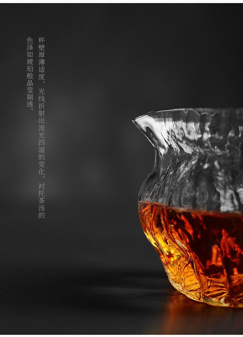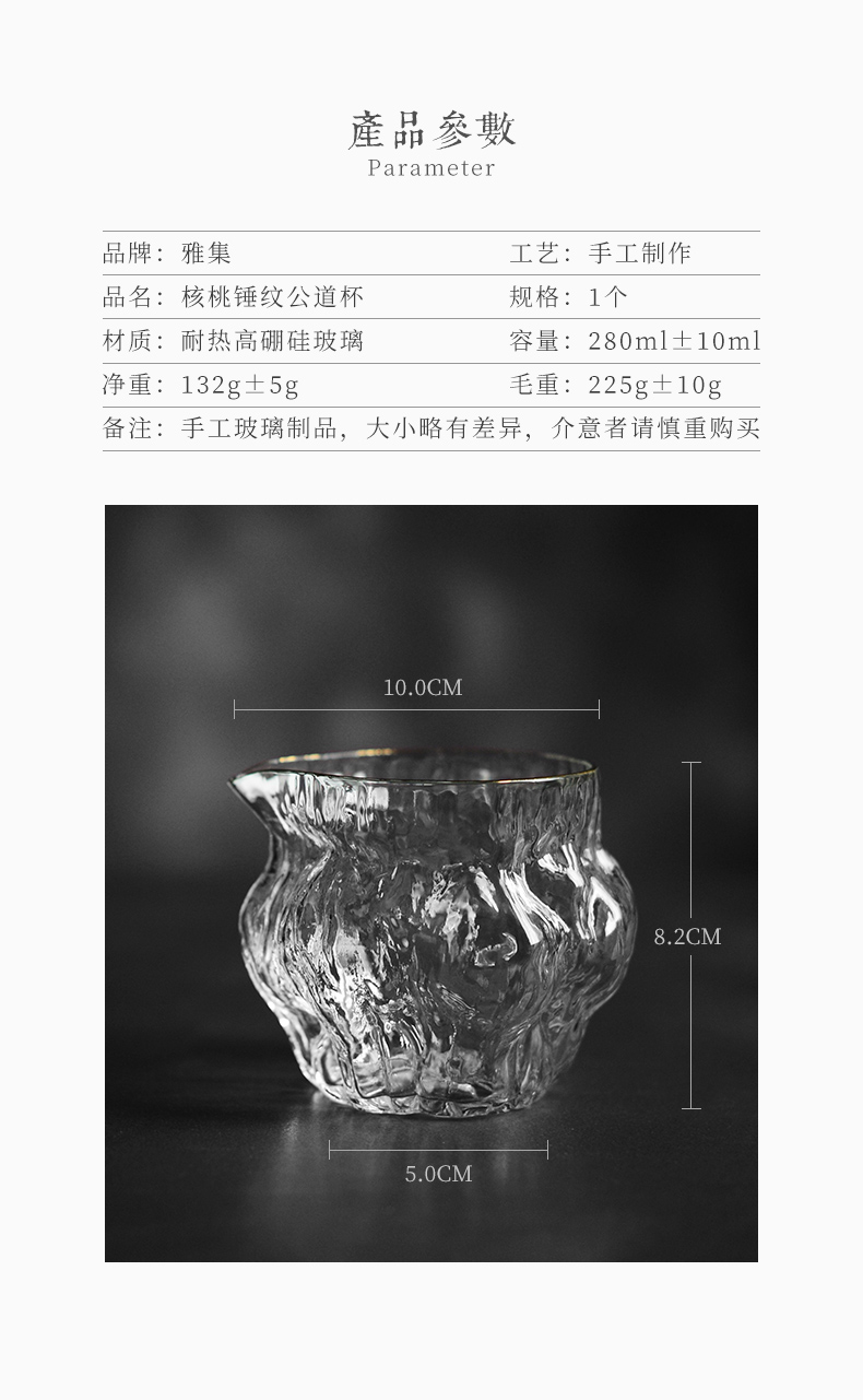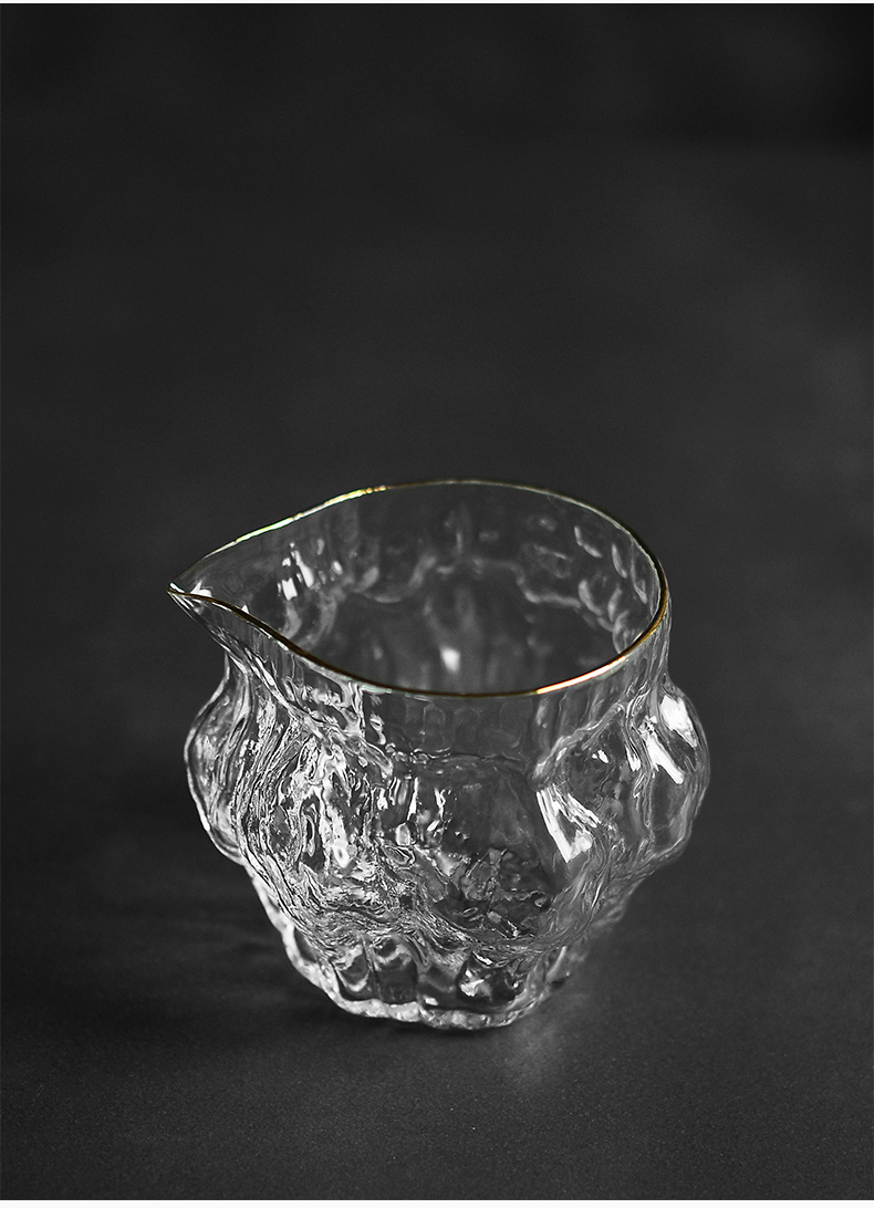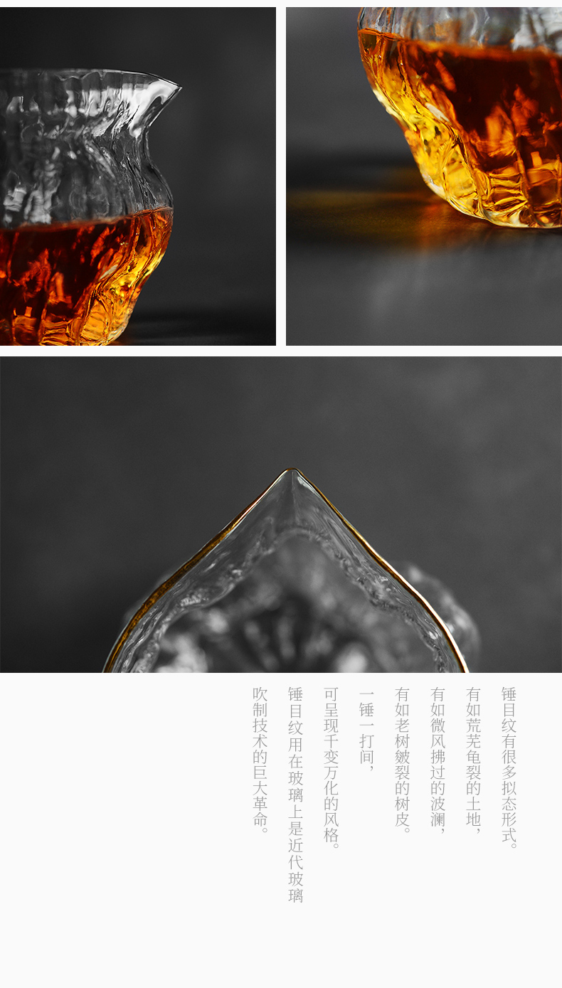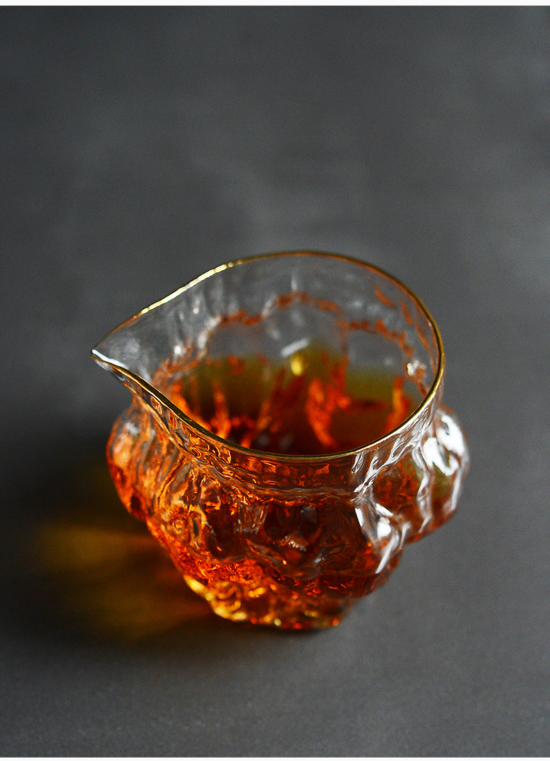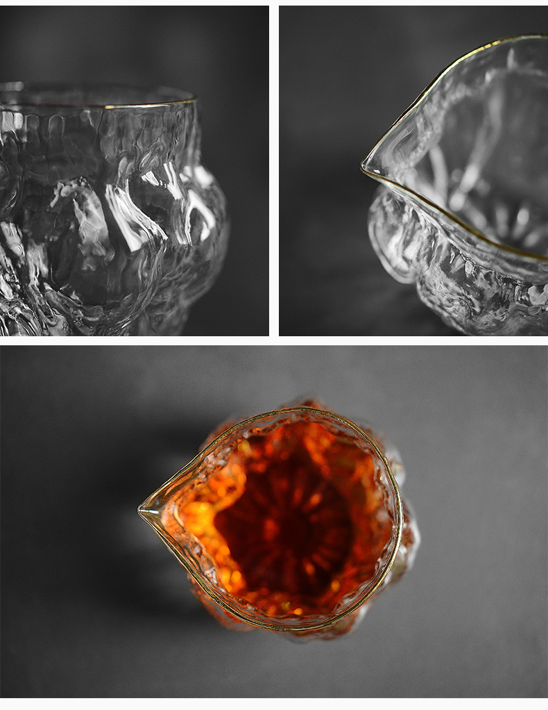 雅集玻璃公道杯分茶器高耐热核桃纹金边高硅硼日式功夫茶具茶海