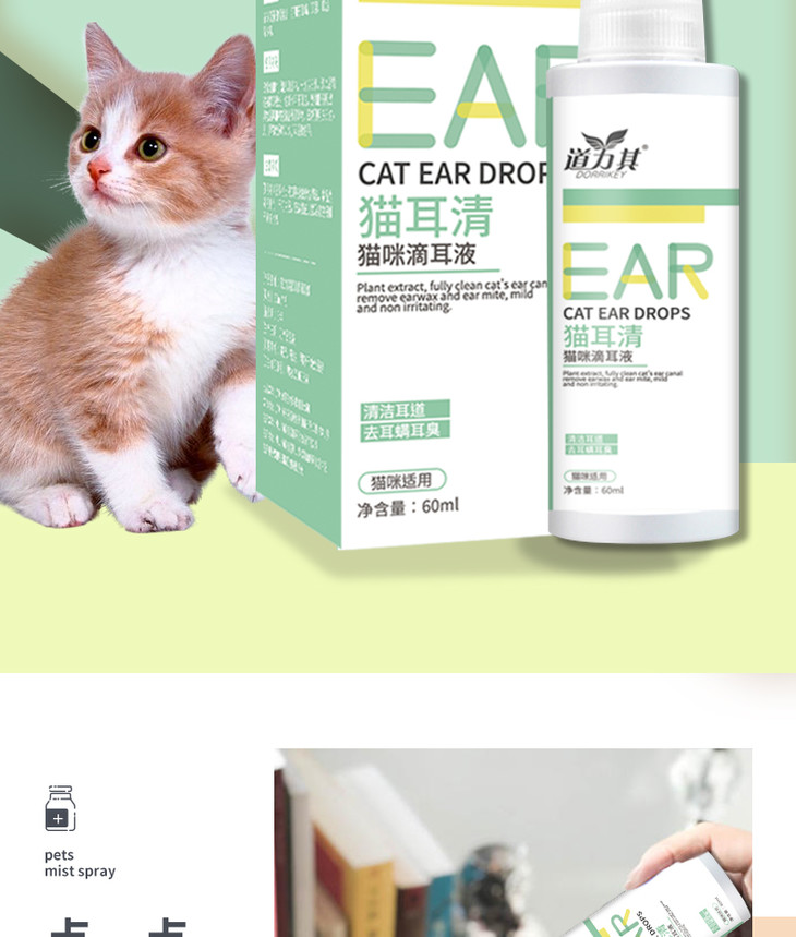 道力其猫耳清60ml 猫咪滴耳液 去异味 清洁耳道 厂家直供