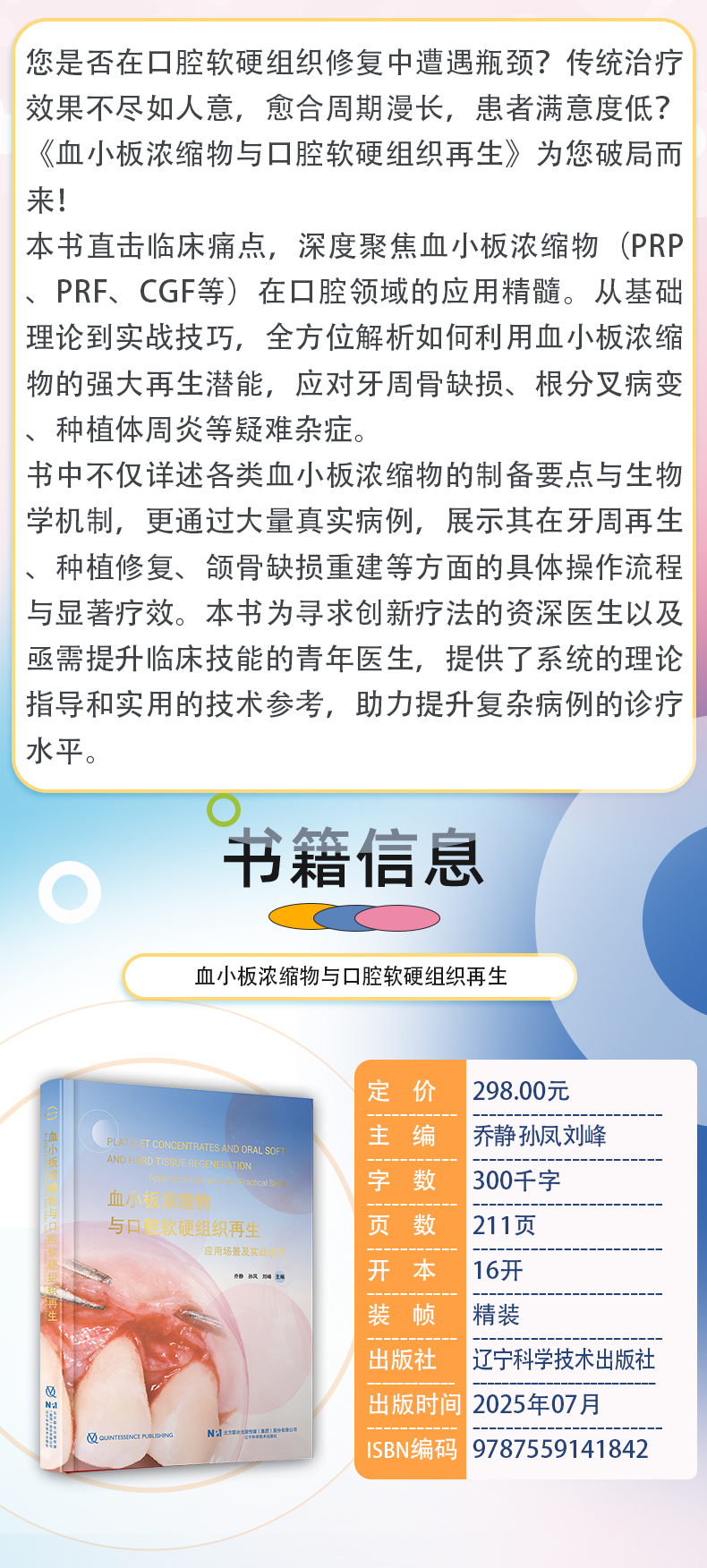 您是否在口腔软硬组织修复中遭遇瓶颈?传统治疗效果不尽如人意,愈合周期漫长,患者满意度低?《血小板浓缩物与口腔软硬组织再生》为您破局而来!