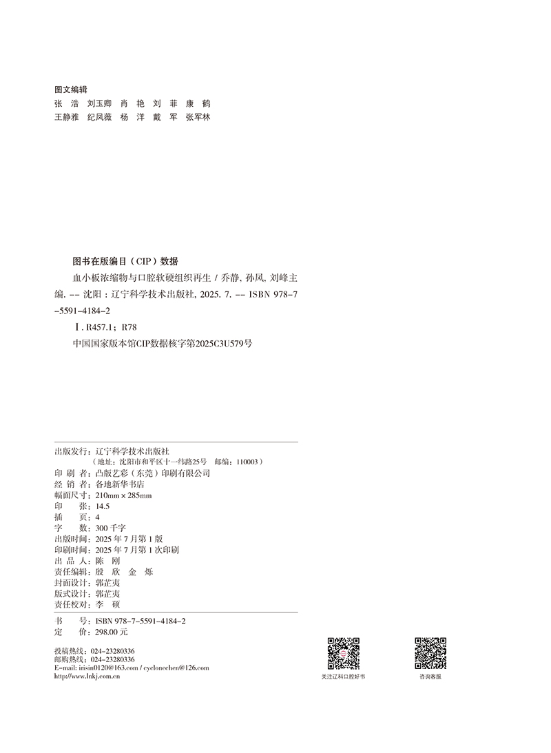 【出版社直发】血小板浓缩物与口腔软硬组织再生 乔静 孙凤 刘峰 深度聚焦血小板浓缩物(PRP、PRF、CGF等)辽宁科学技术出版社