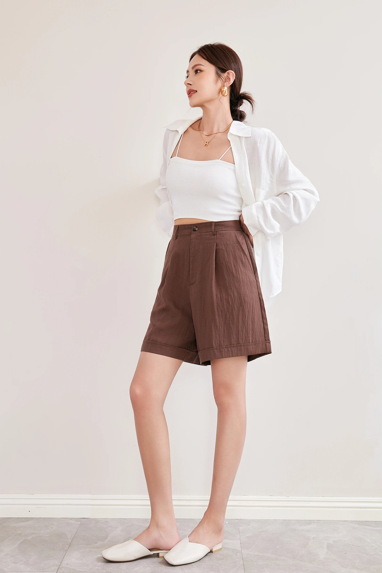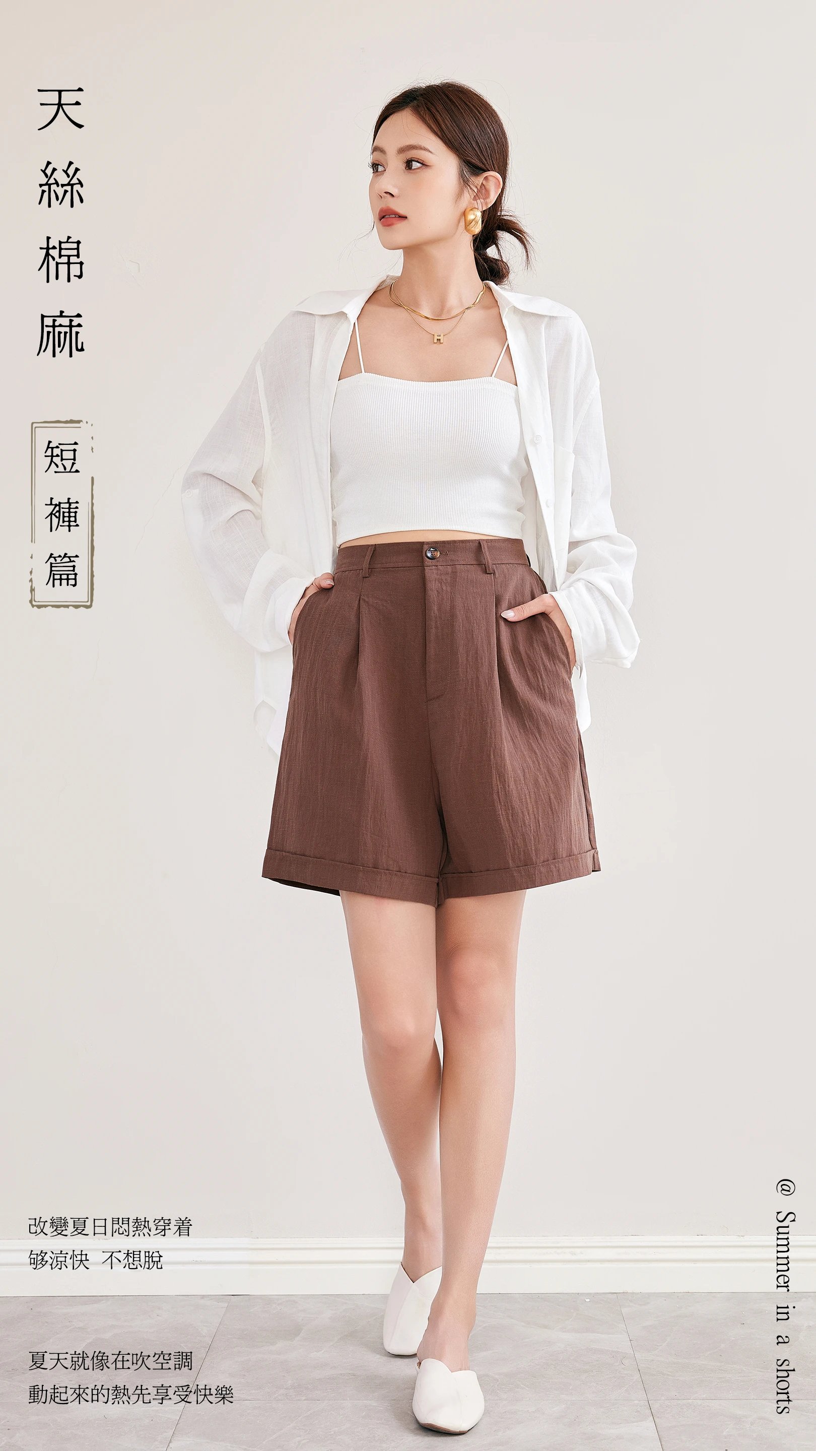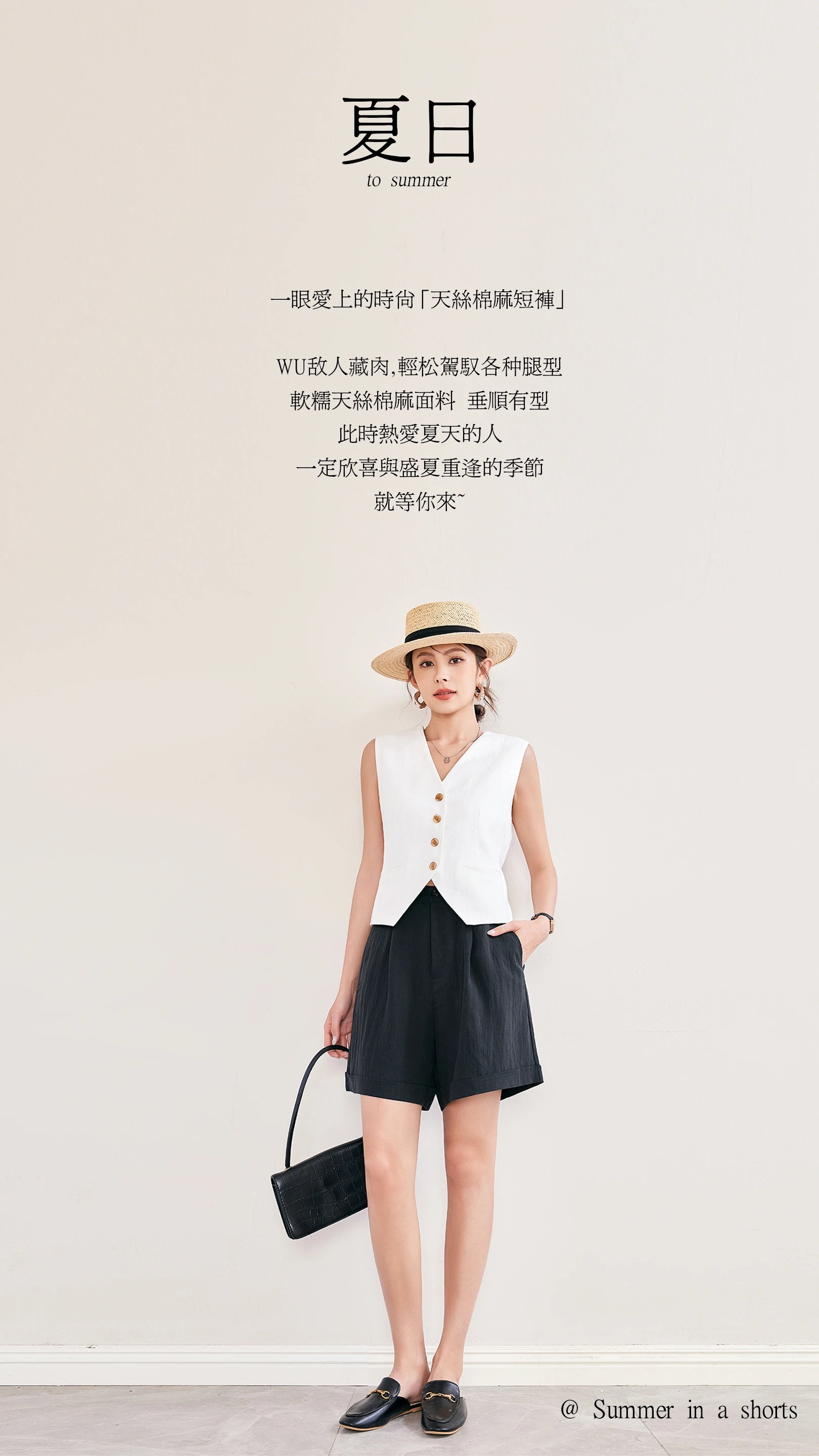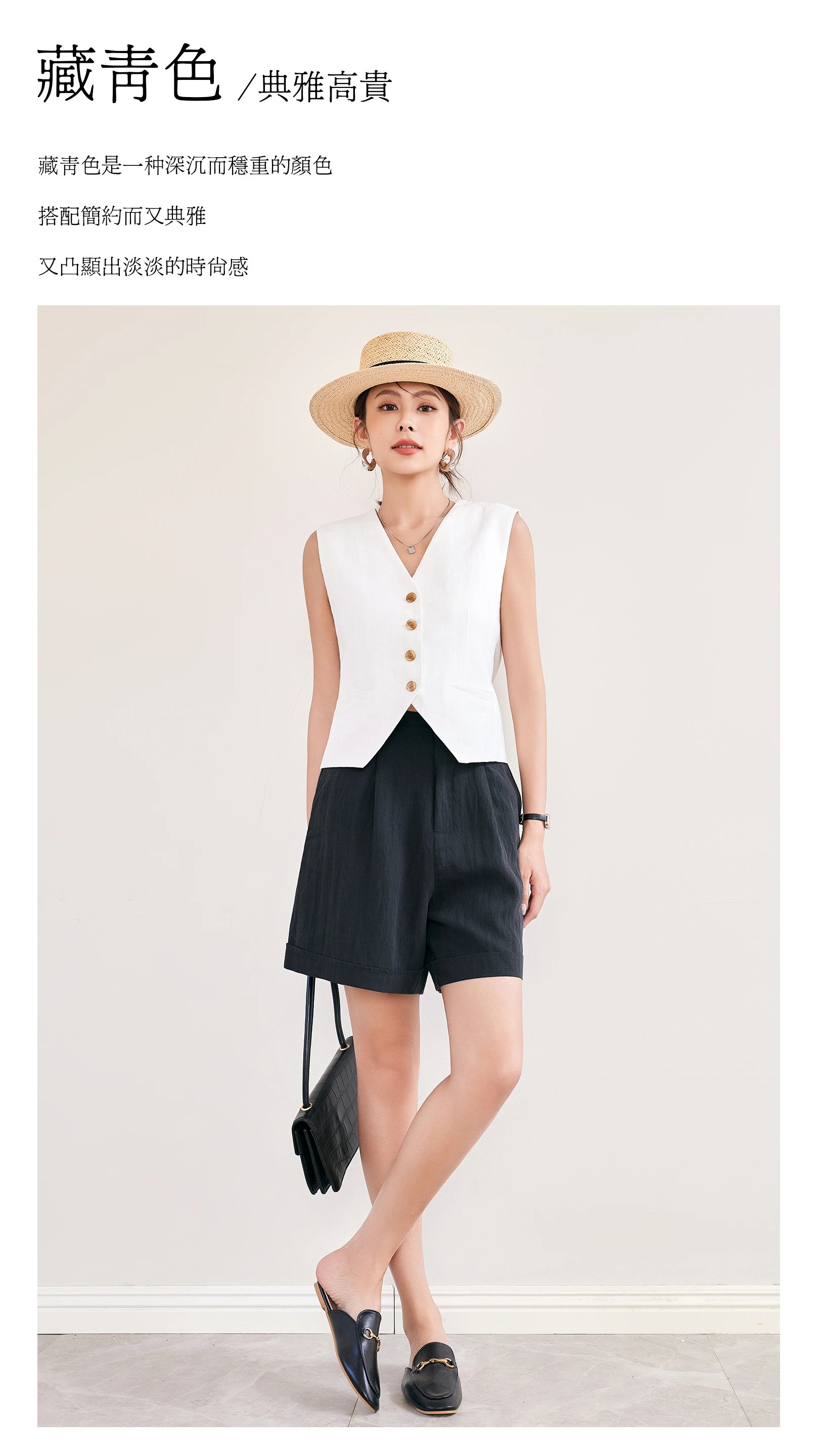 裤长恰好,得体自在。前后腰加入收省,修饰出微微打开的复古A字裤型,对于东方女性的跨部和臀围非常友好。